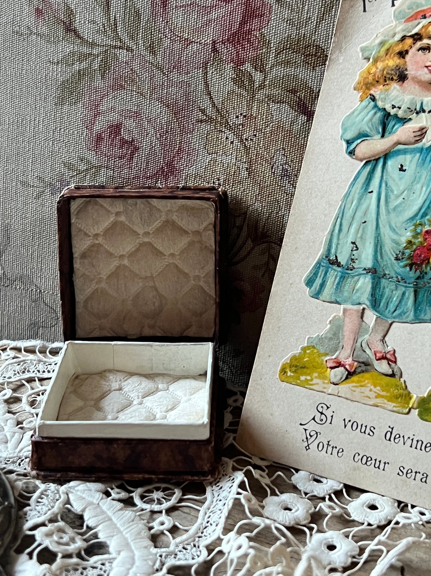 5cm×5cm×2.5cm 21g カルトン製のジュエリーボックスです。 程よいサイズ感で、内部はキルティング風の装飾が施されています。
