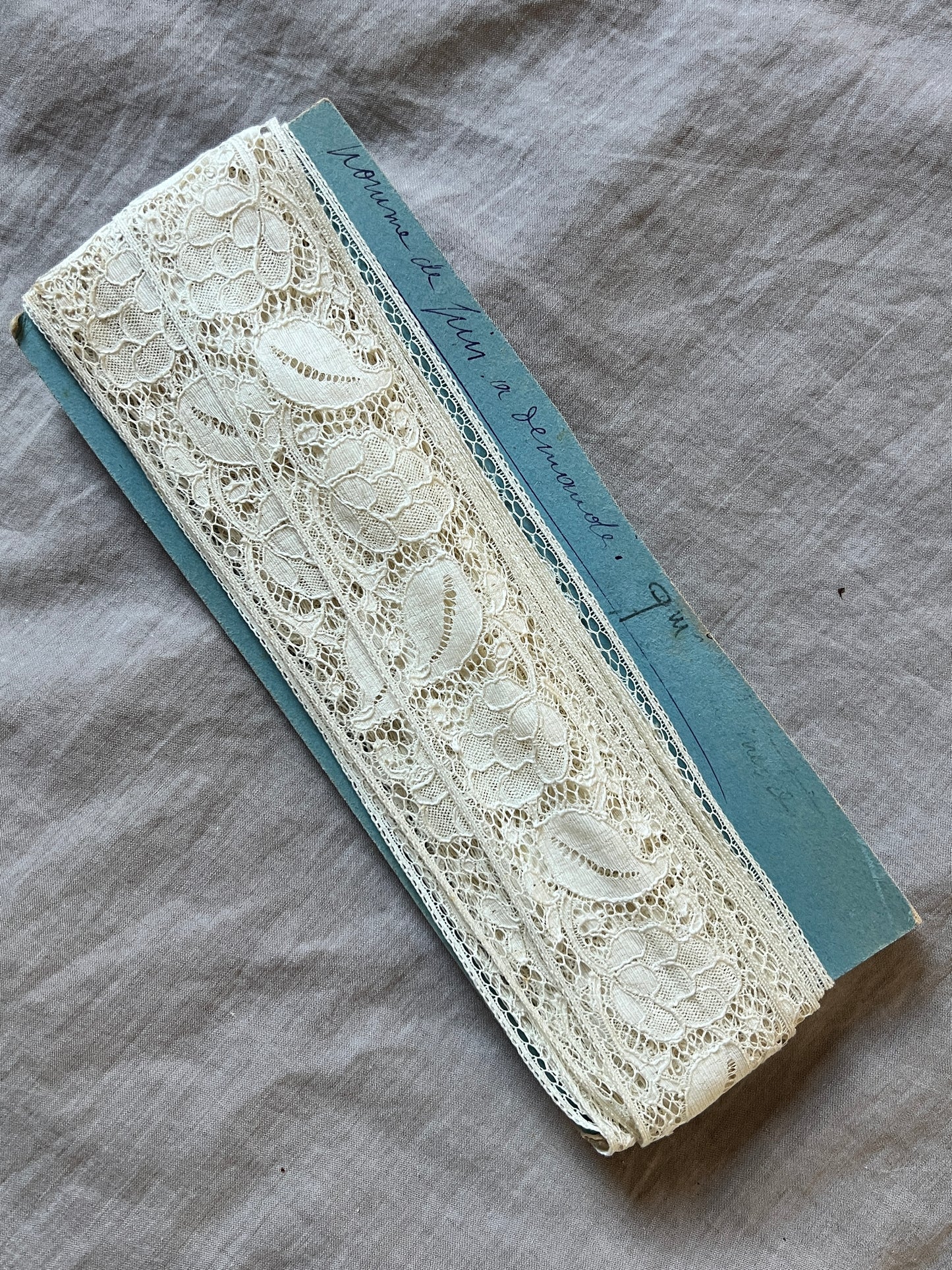 4cm幅×8メートル 54g 軽やかでエレガントな風合いのレースです。 くすみブルーの台紙に巻かれた未使用品ですが、保管時の汚れがレースの一部に残っております。 その他はダメージもなく状態は良好。 台紙の端などに折れ曲がりなど経年相応の消耗があります。