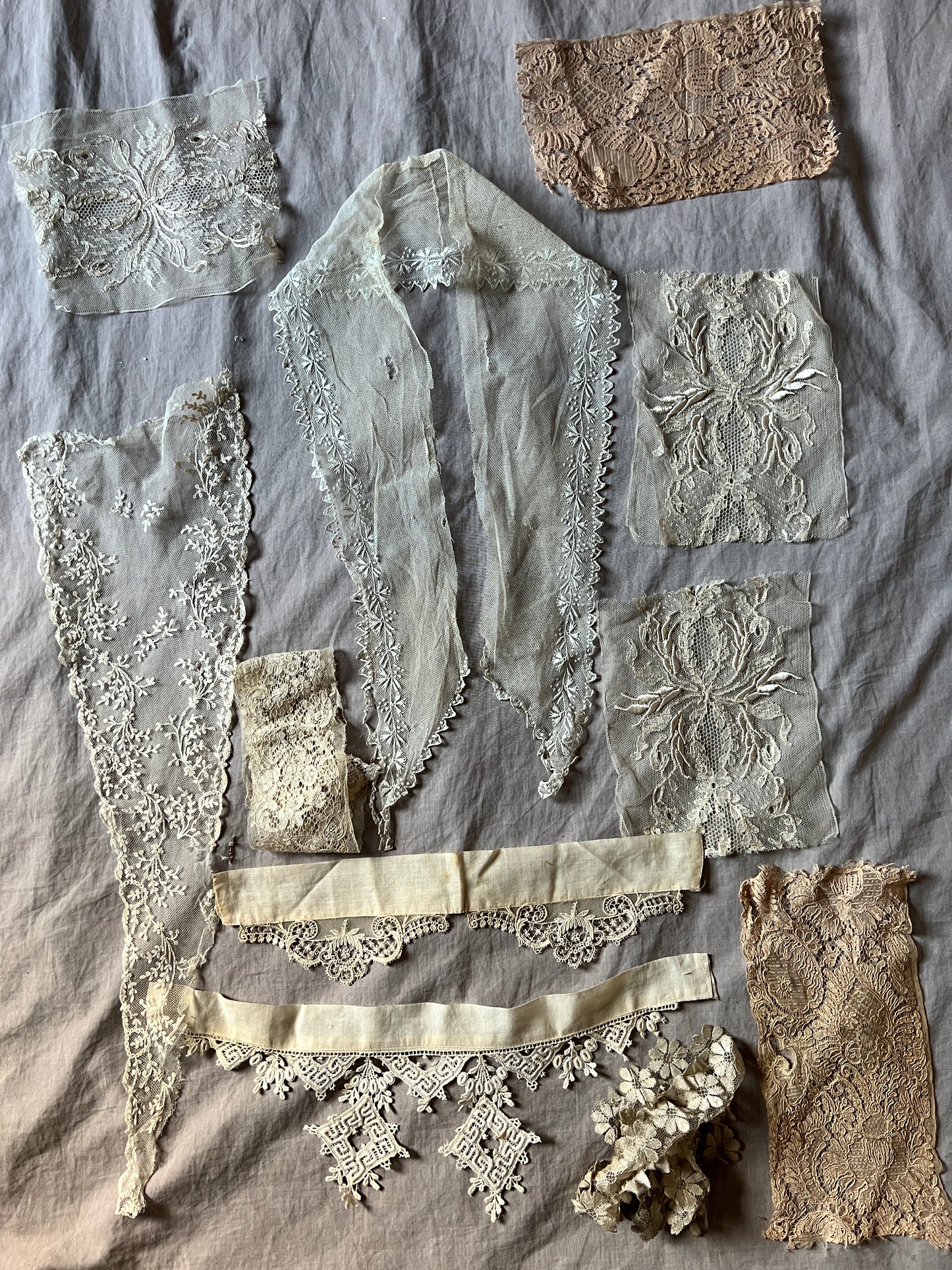 刺繍トリムの端布やパーツなど材料として使えそうなものをいろいろセットにしました。