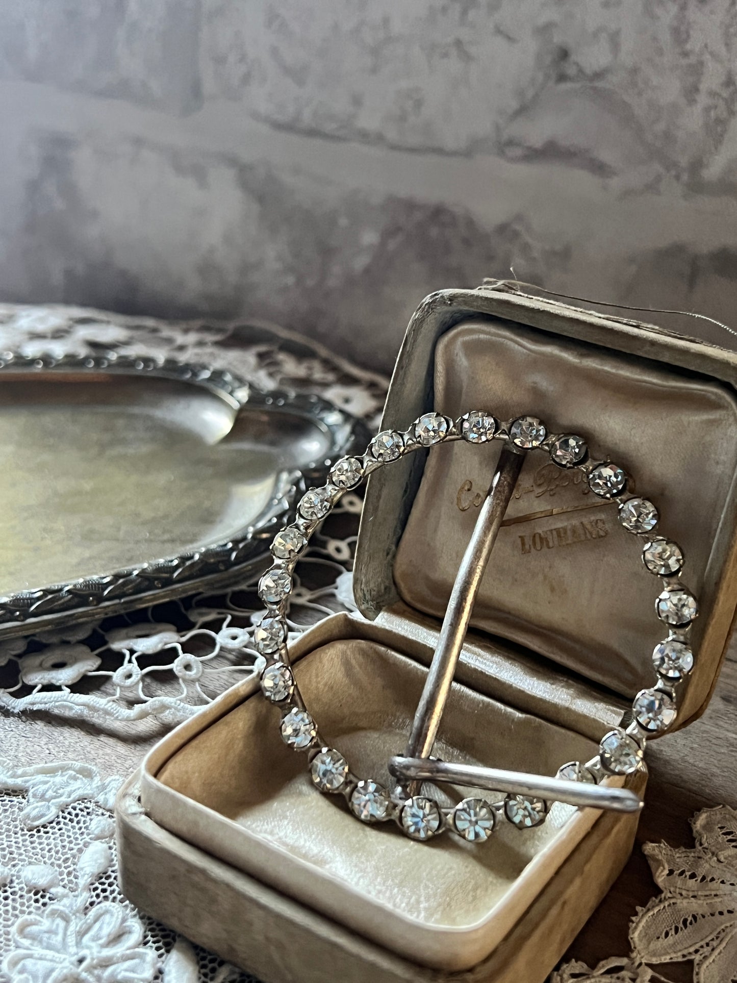 直径6cm 21g ストラスが行儀よく丸く並んだバックルです バックルの形ですがスカーフ留めなどにも使えそうなお品です