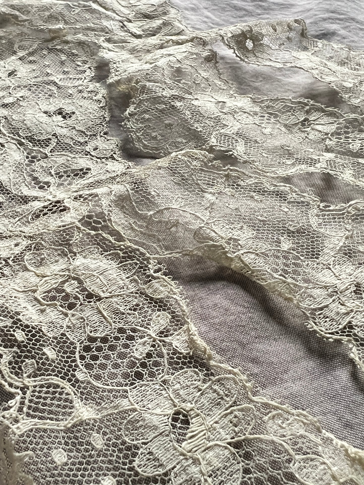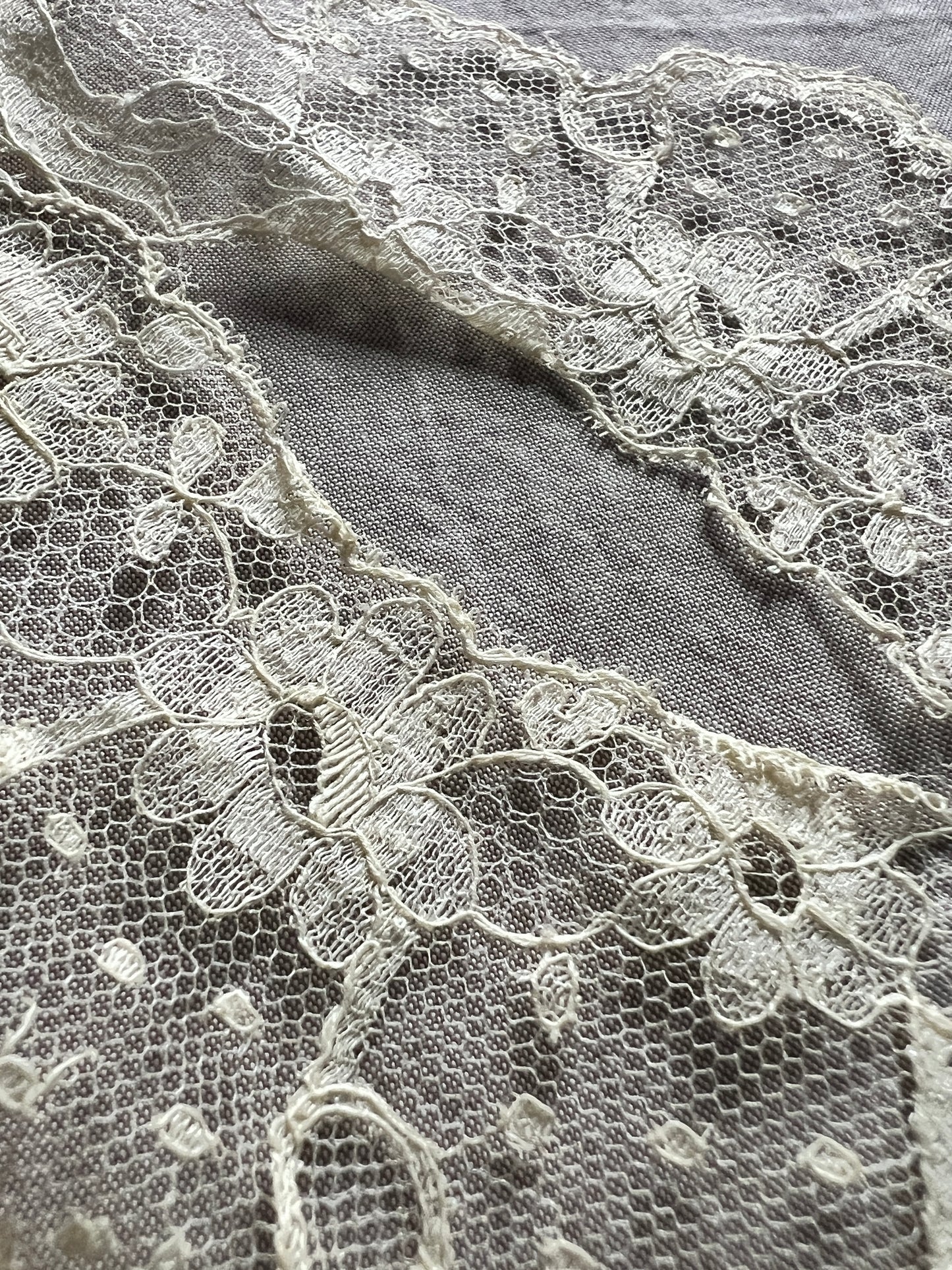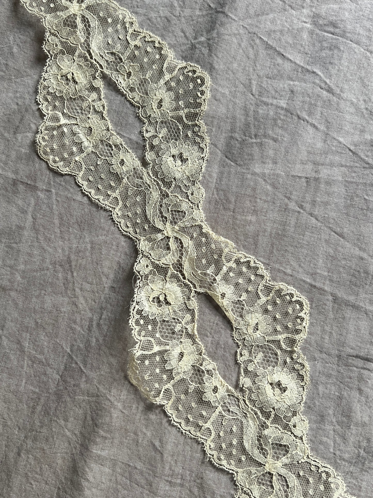 10cm幅×300cm 16g ドット、お花、リボンなどラブリーな要素が盛り込まれたチュールレースです 日本のレースが交差を繰り返すようなデザインで交差部分にはリボンのモチーフがあります ロマンティックな印象のお品です