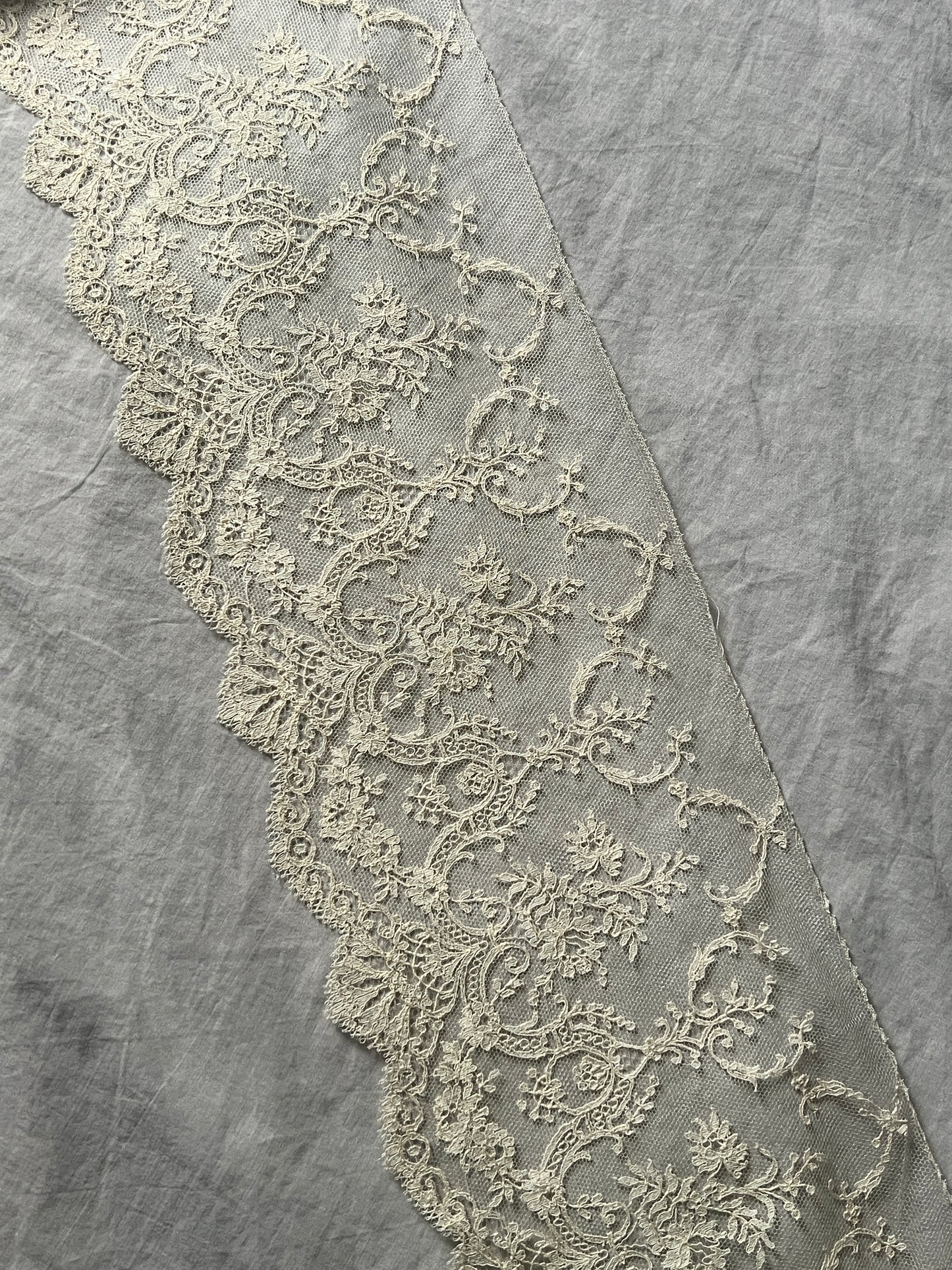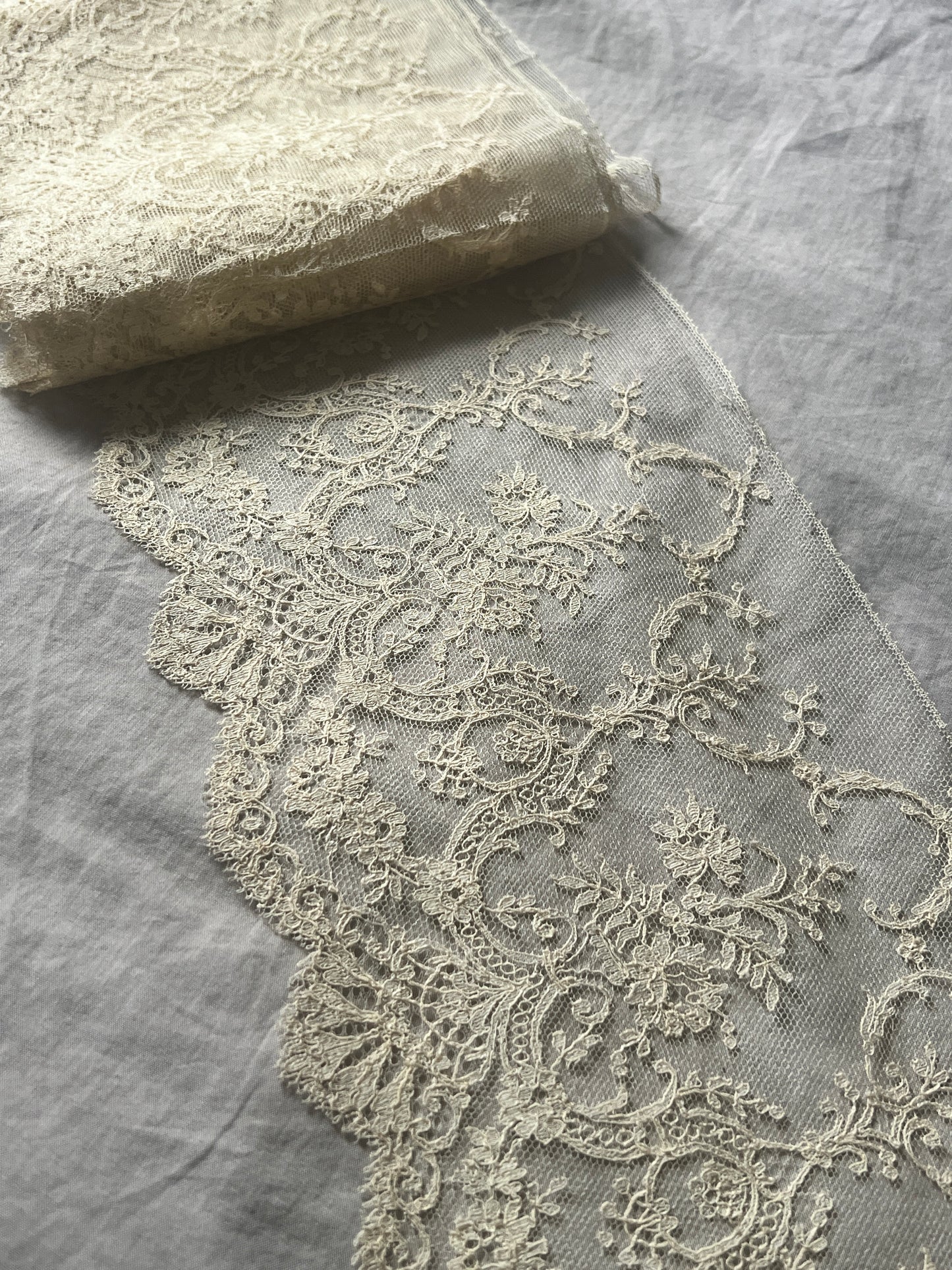 15cm幅×195cm 38g エレガントで繊細なチュールレースです 華やかで上品な雰囲気を楽しんでいただけます ほんのりとしたミルクティー色