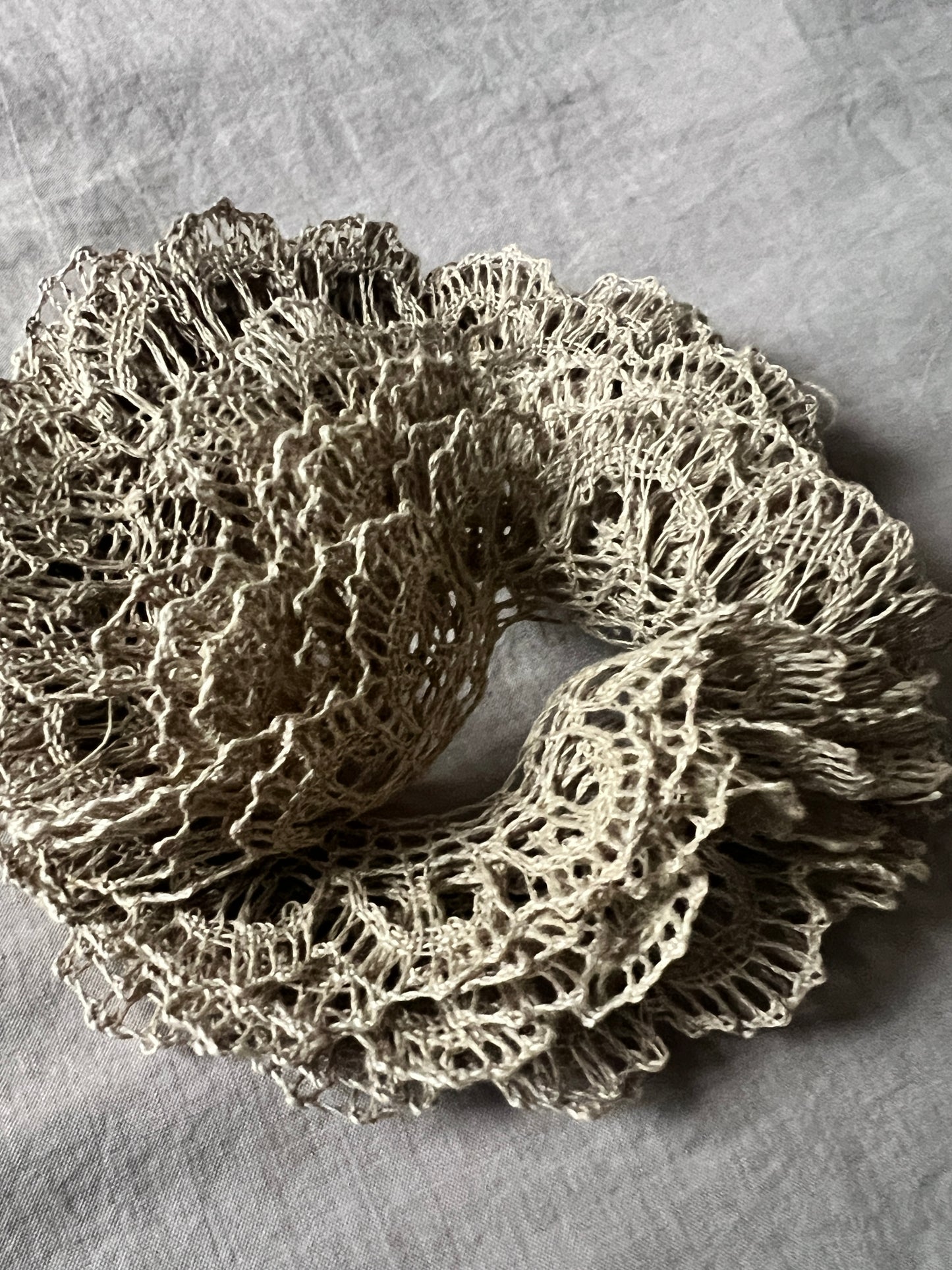 未漂白カラーのフレーム状のボビンレースのセットです