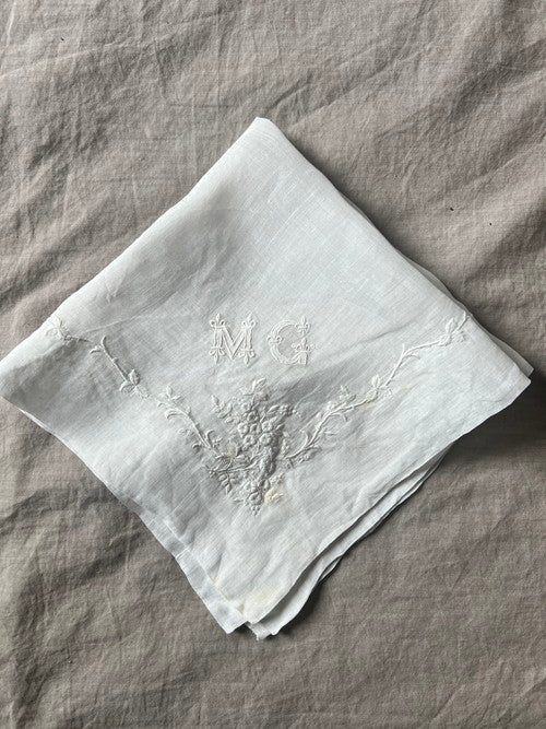 百合の紋章がデザインされたモノグラム刺繍の婚礼用のハンカチです。
