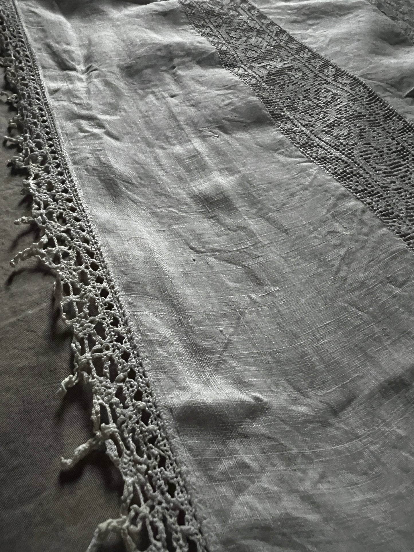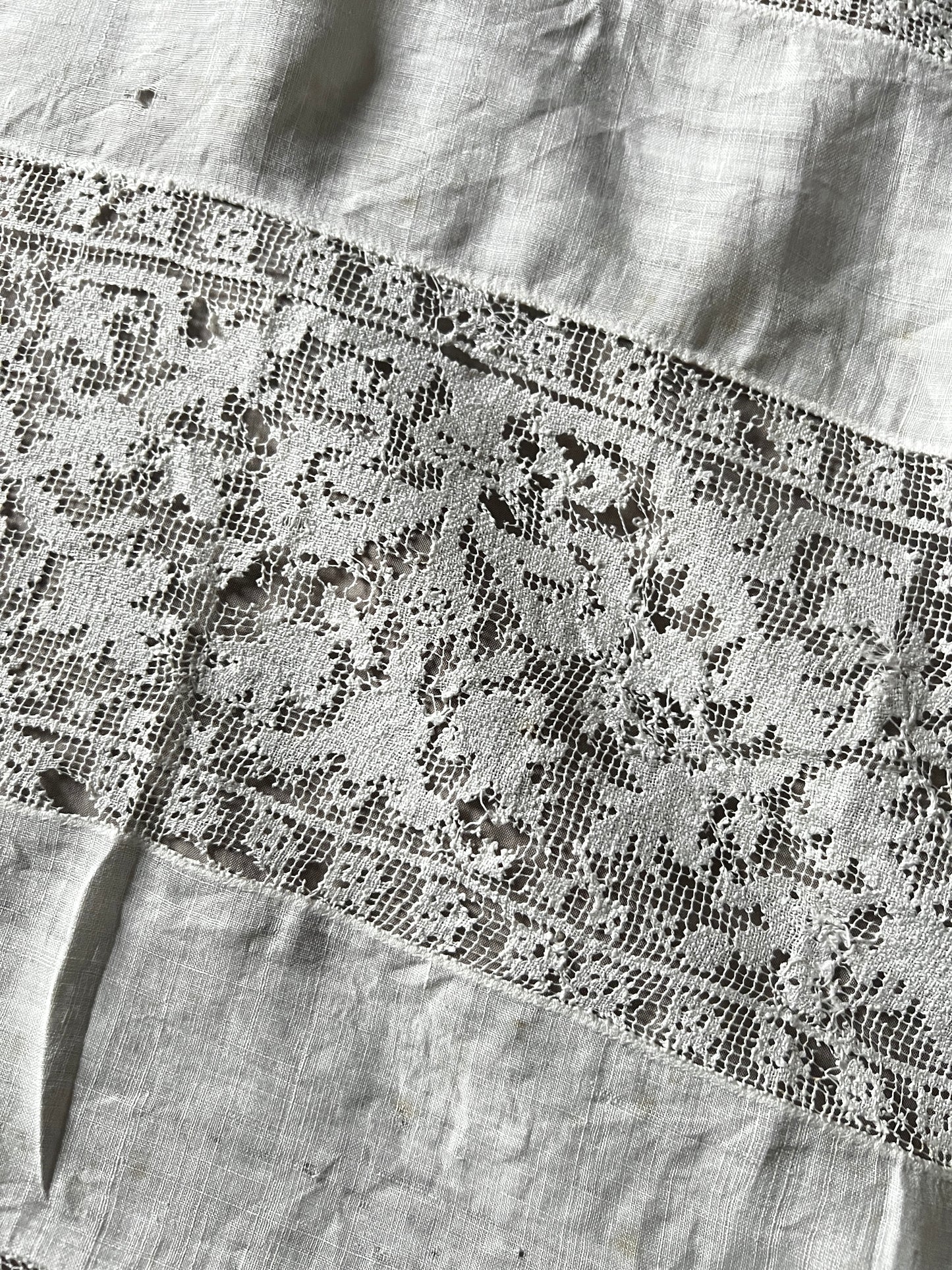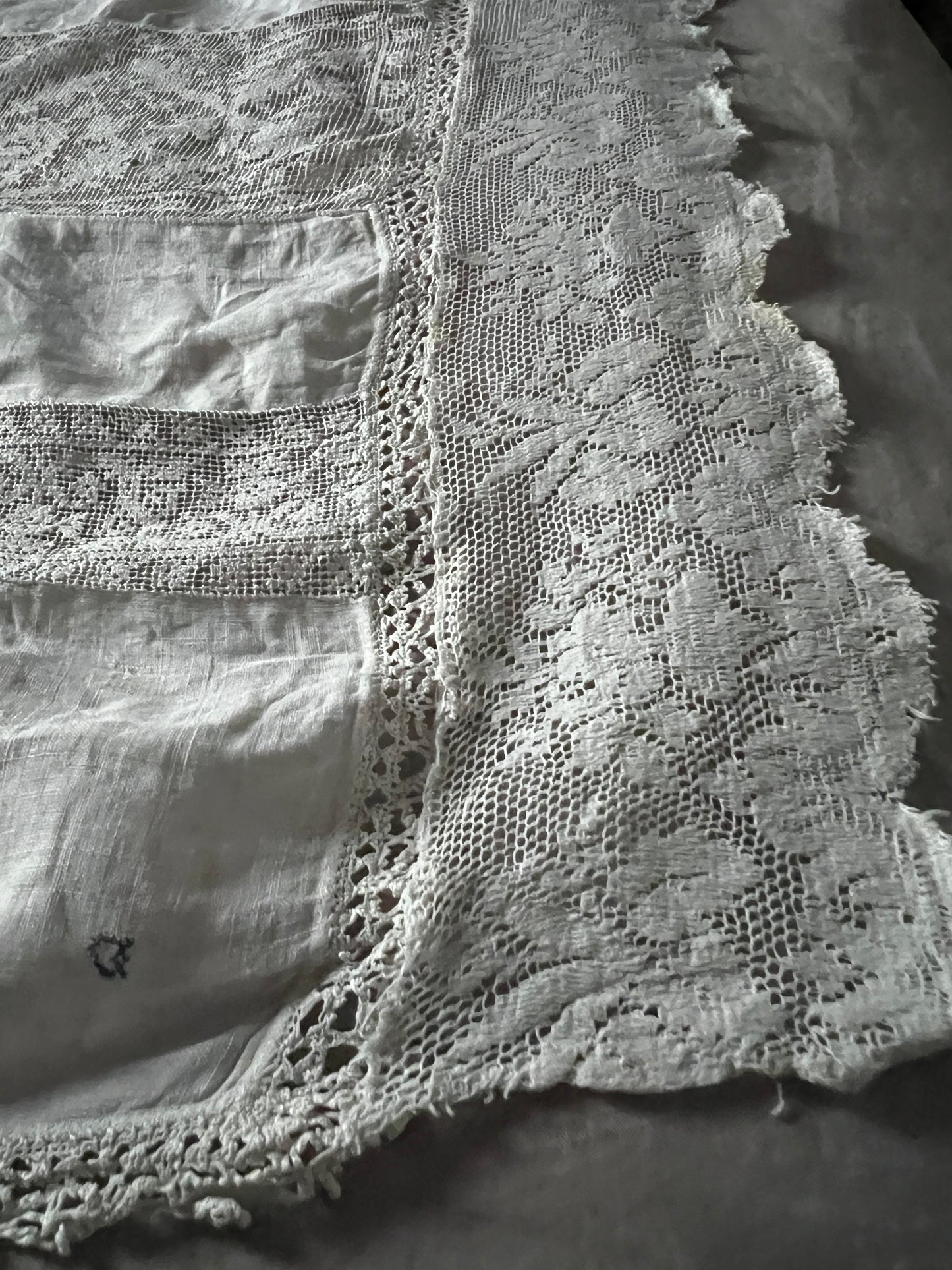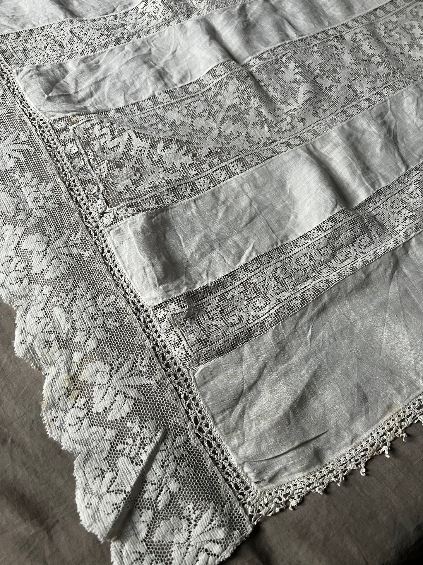 細かな織り目のフィレレースなどがインサートされたレースクロスです
