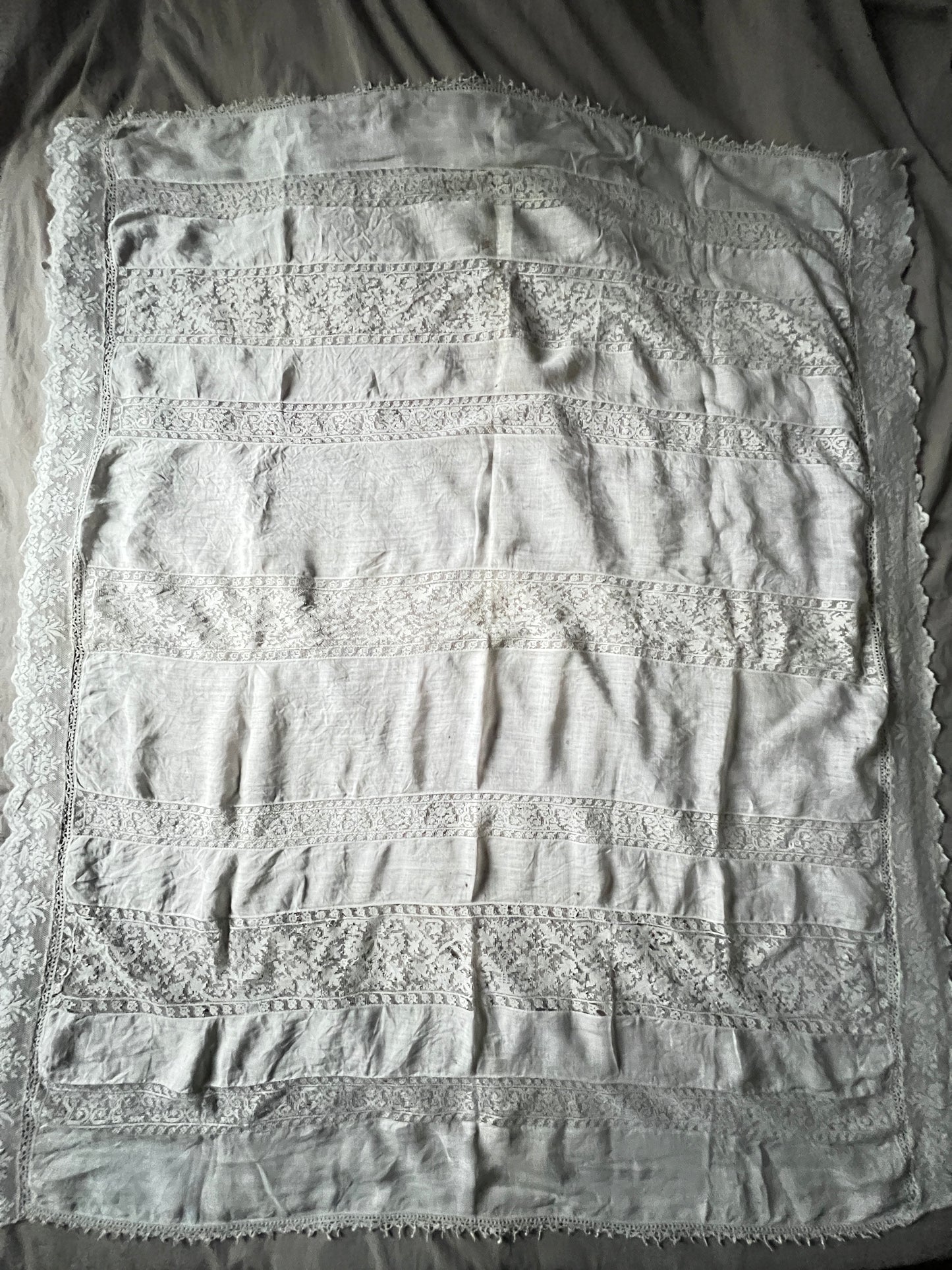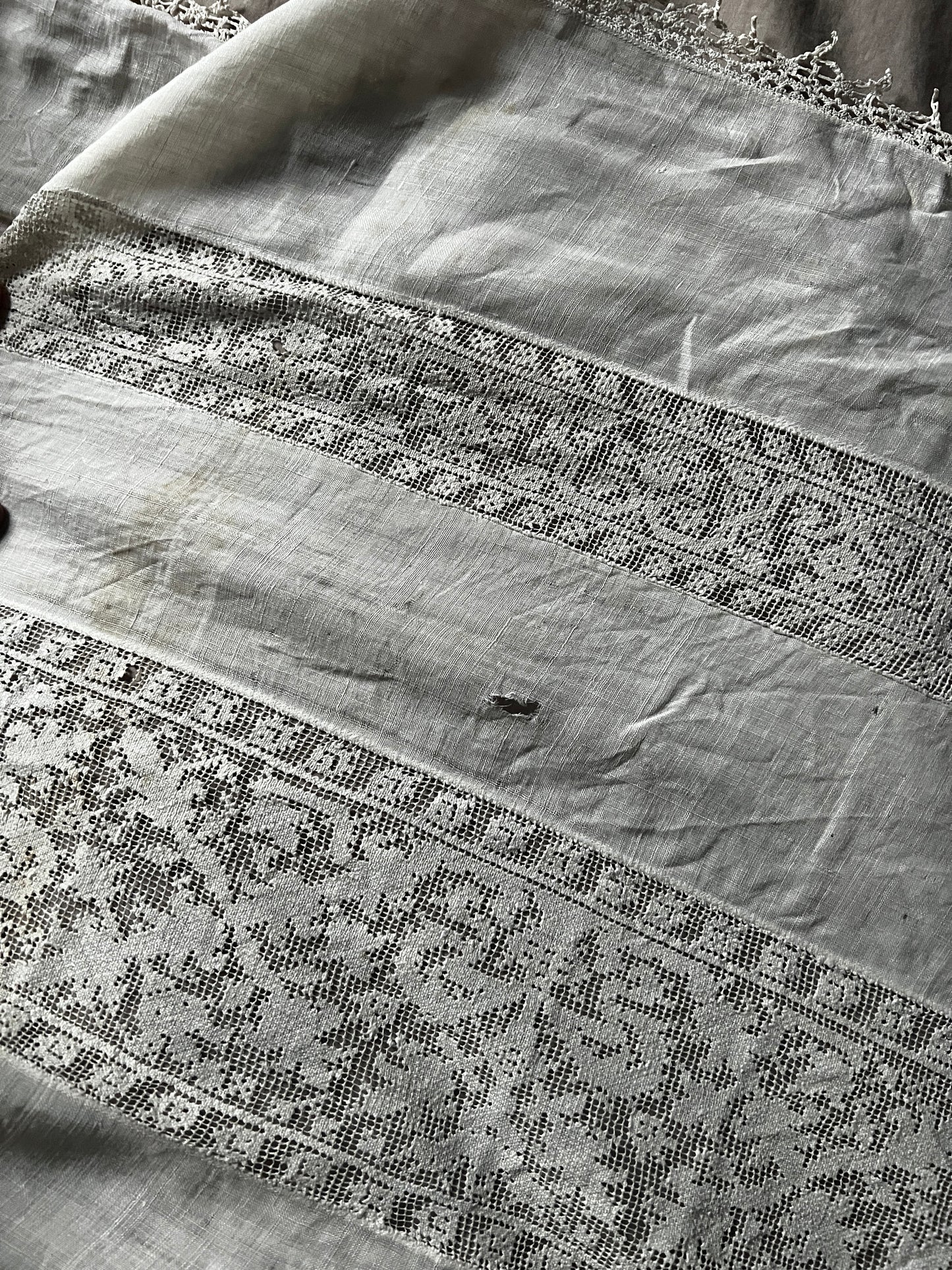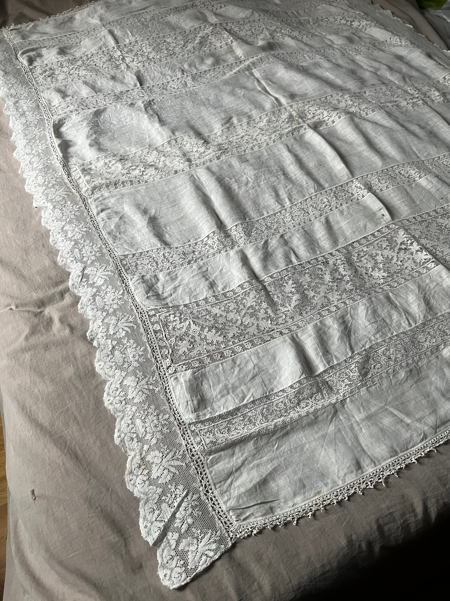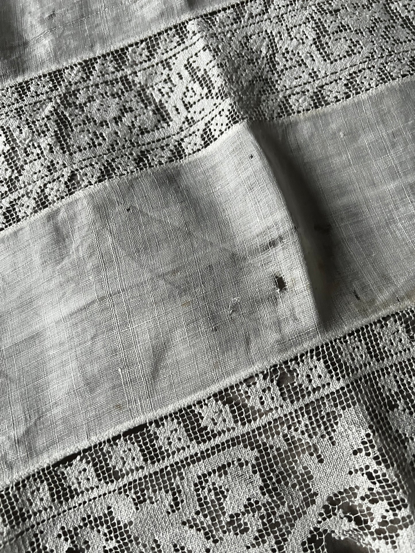 細かな織り目のフィレレースなどがインサートされたレースクロスです