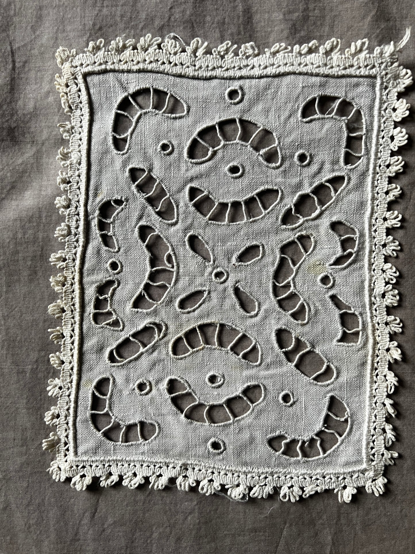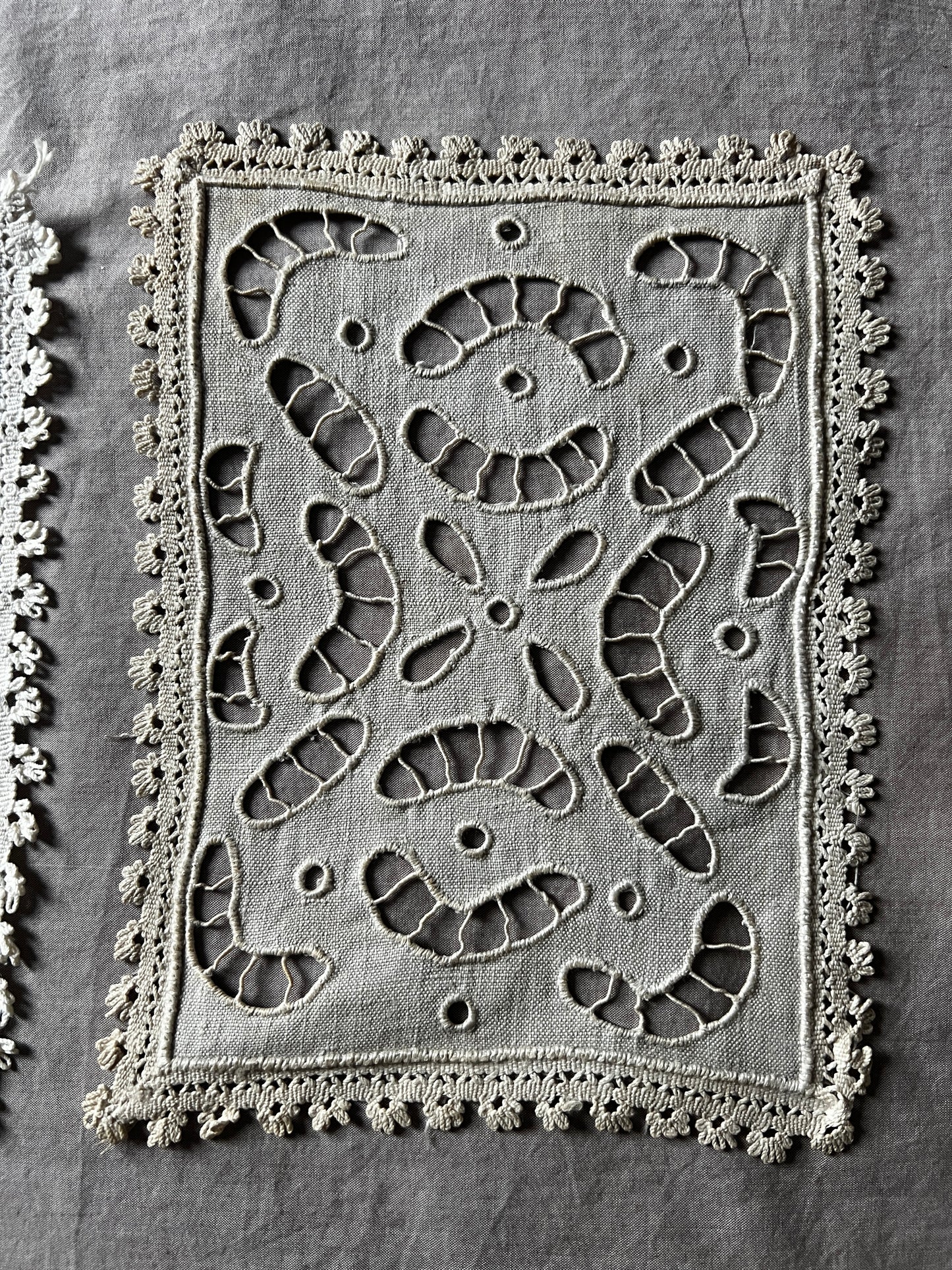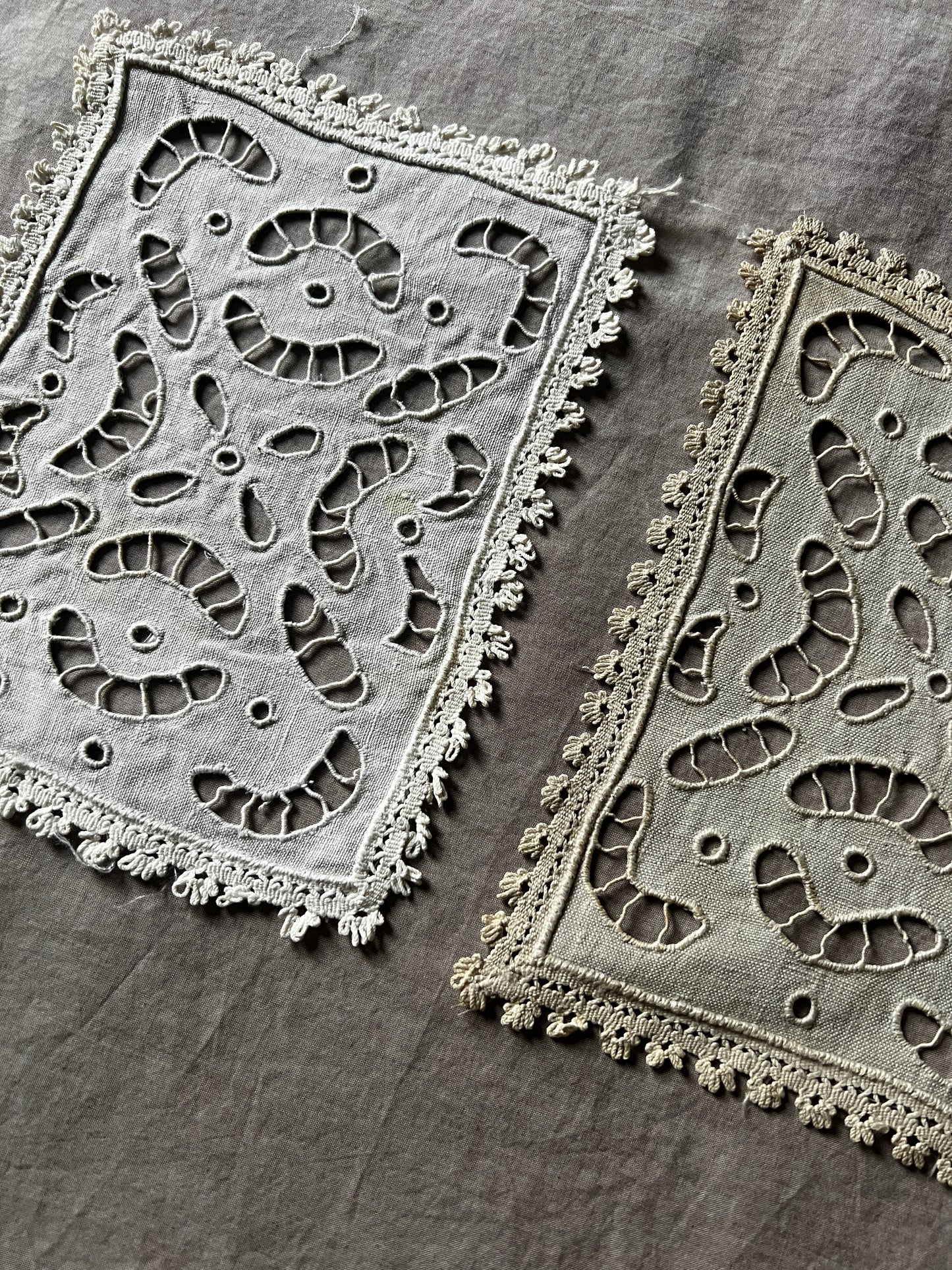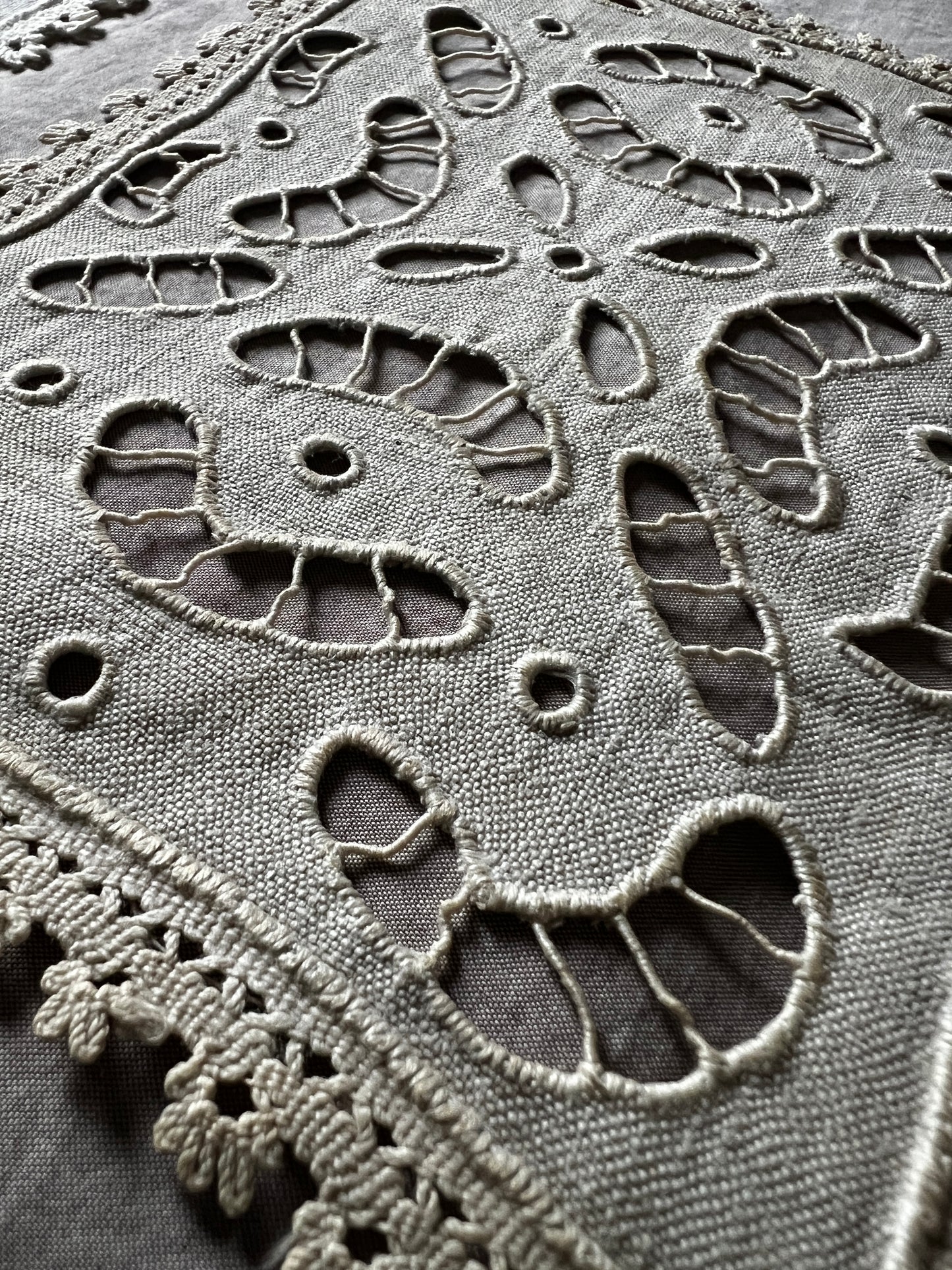 A5サイズ程度の小さなカットワーク刺繍のリネンクロスセットです