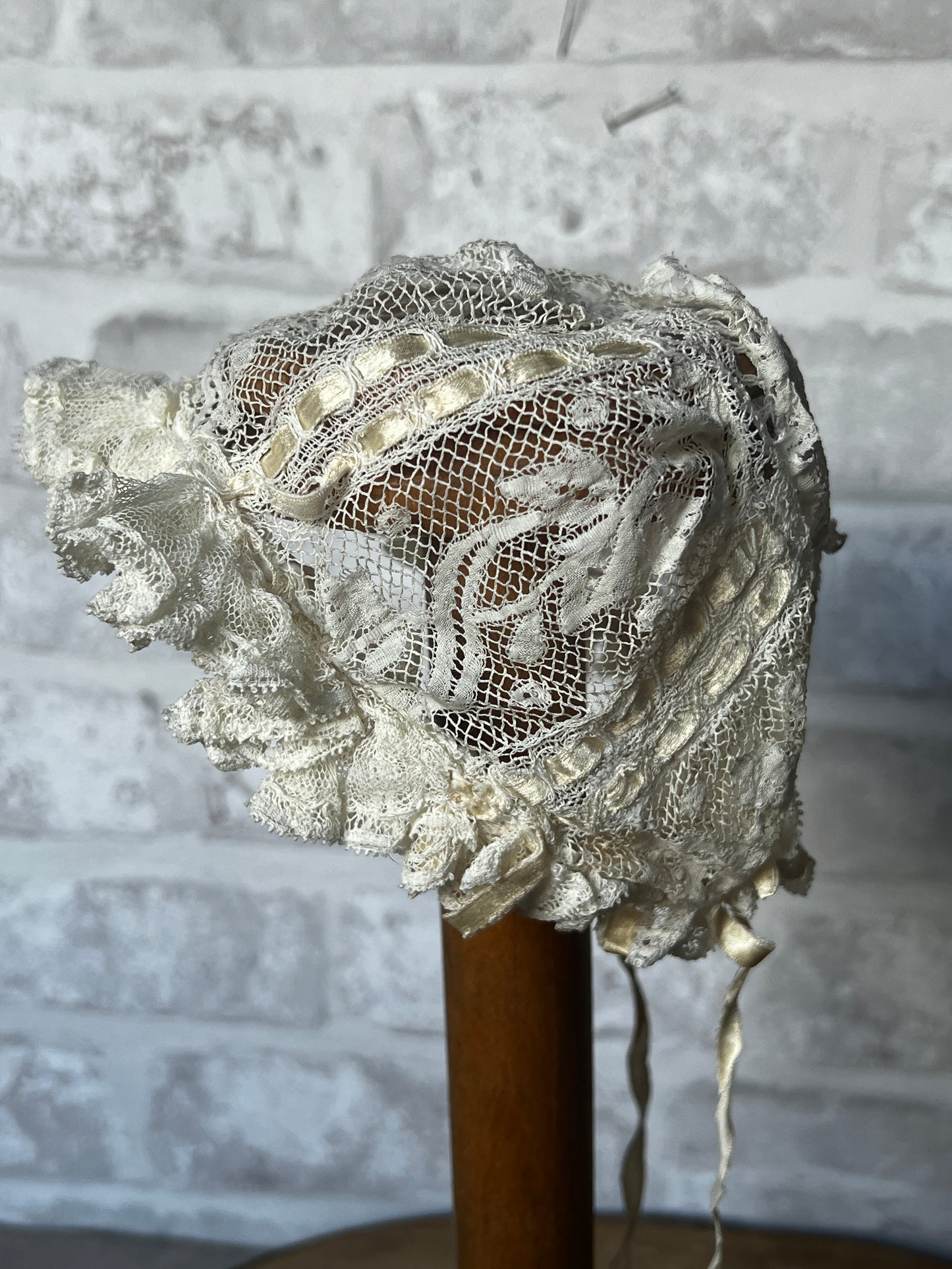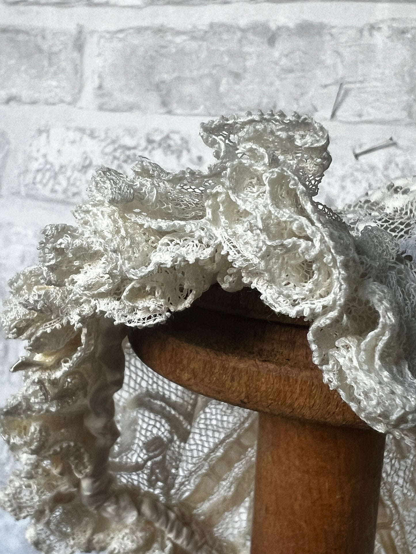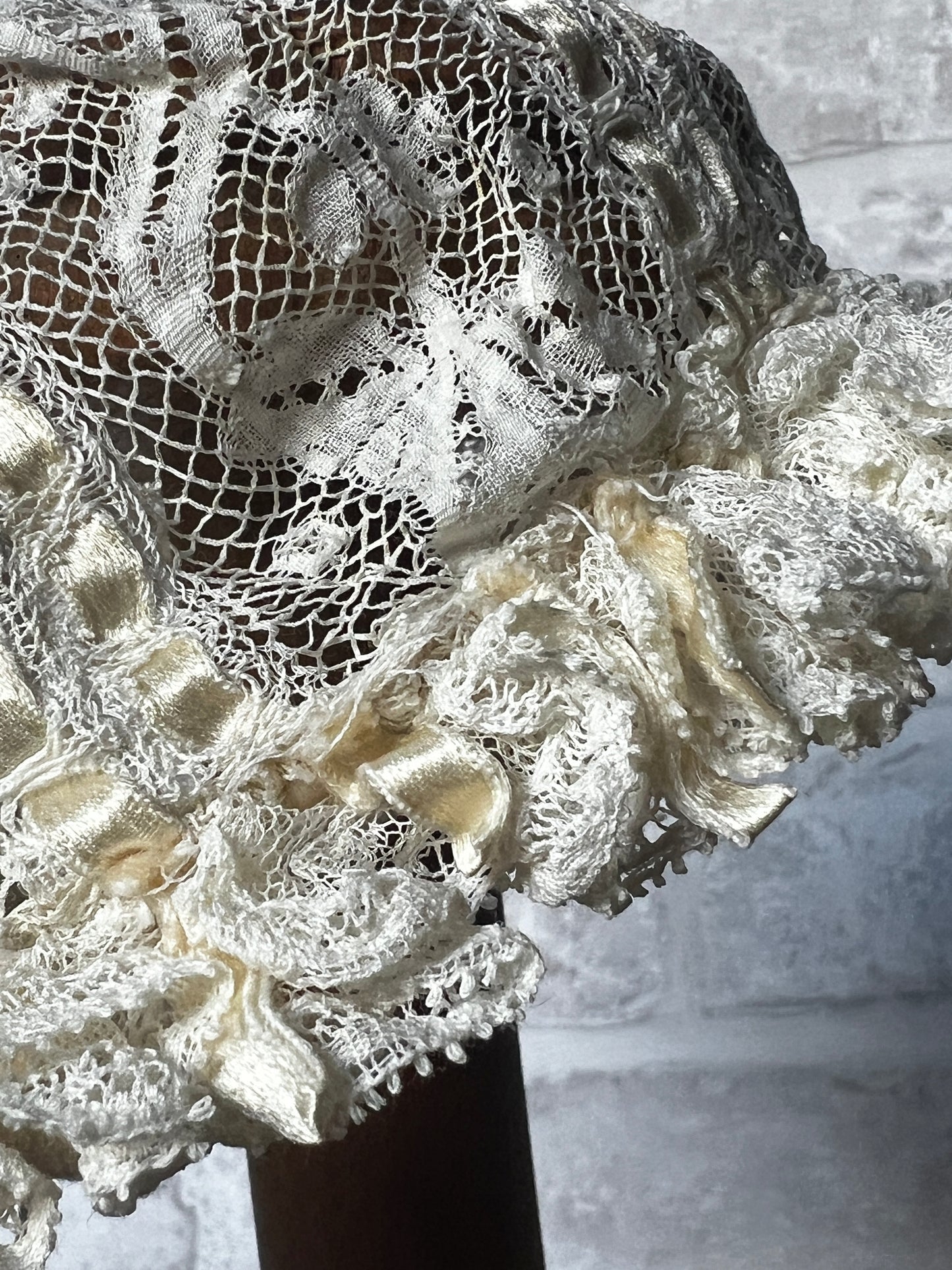 ふんだんなフリルとリボン使いがかわいらしいベビーボネです