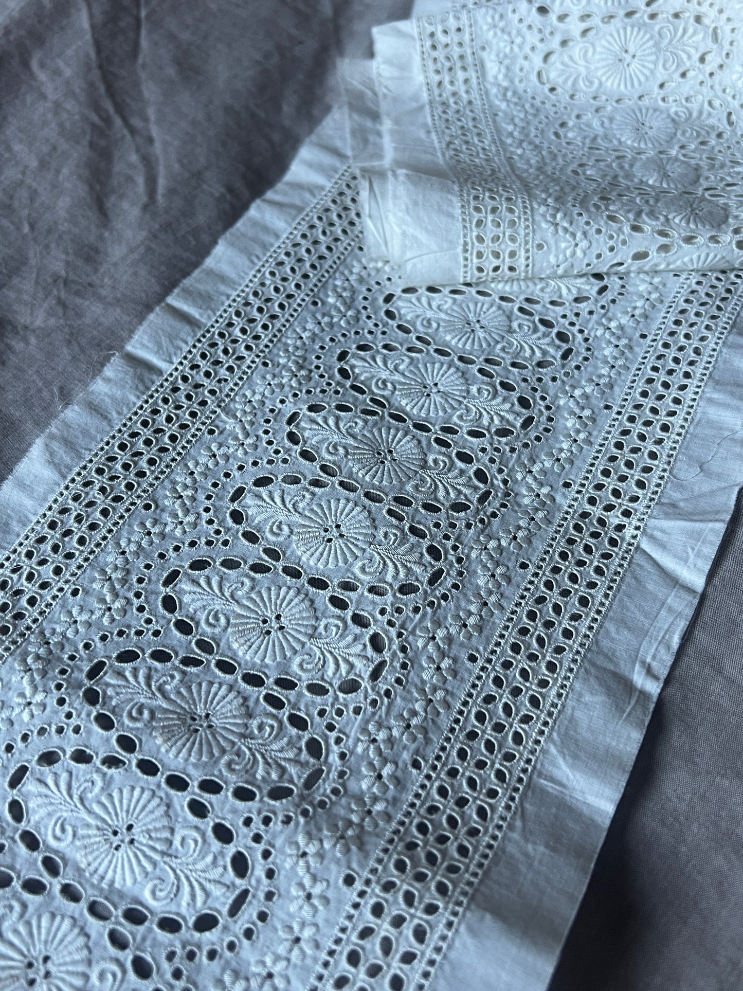 綿密なステッチの素晴らしい幅広のインサート用刺繍トリムです