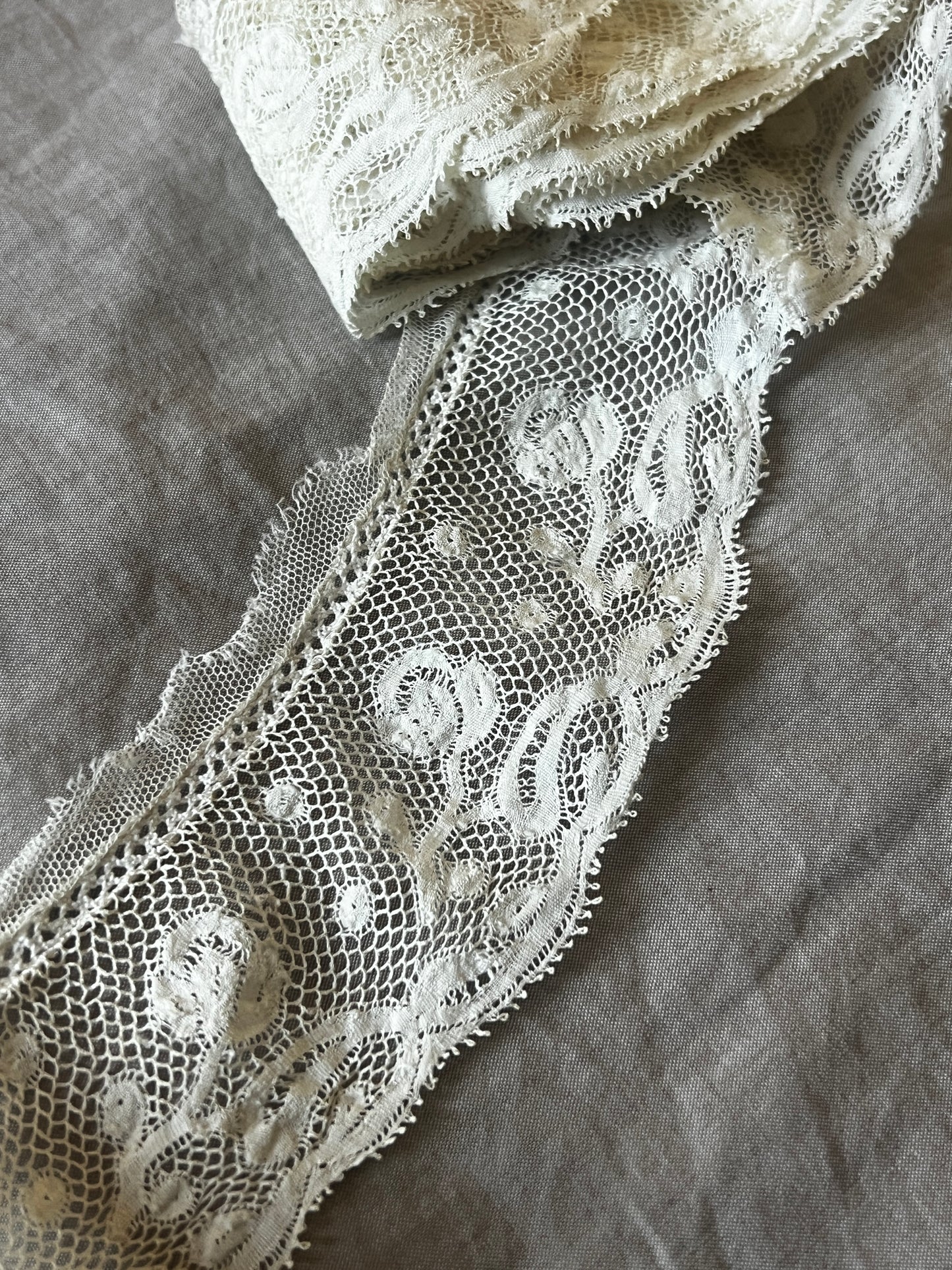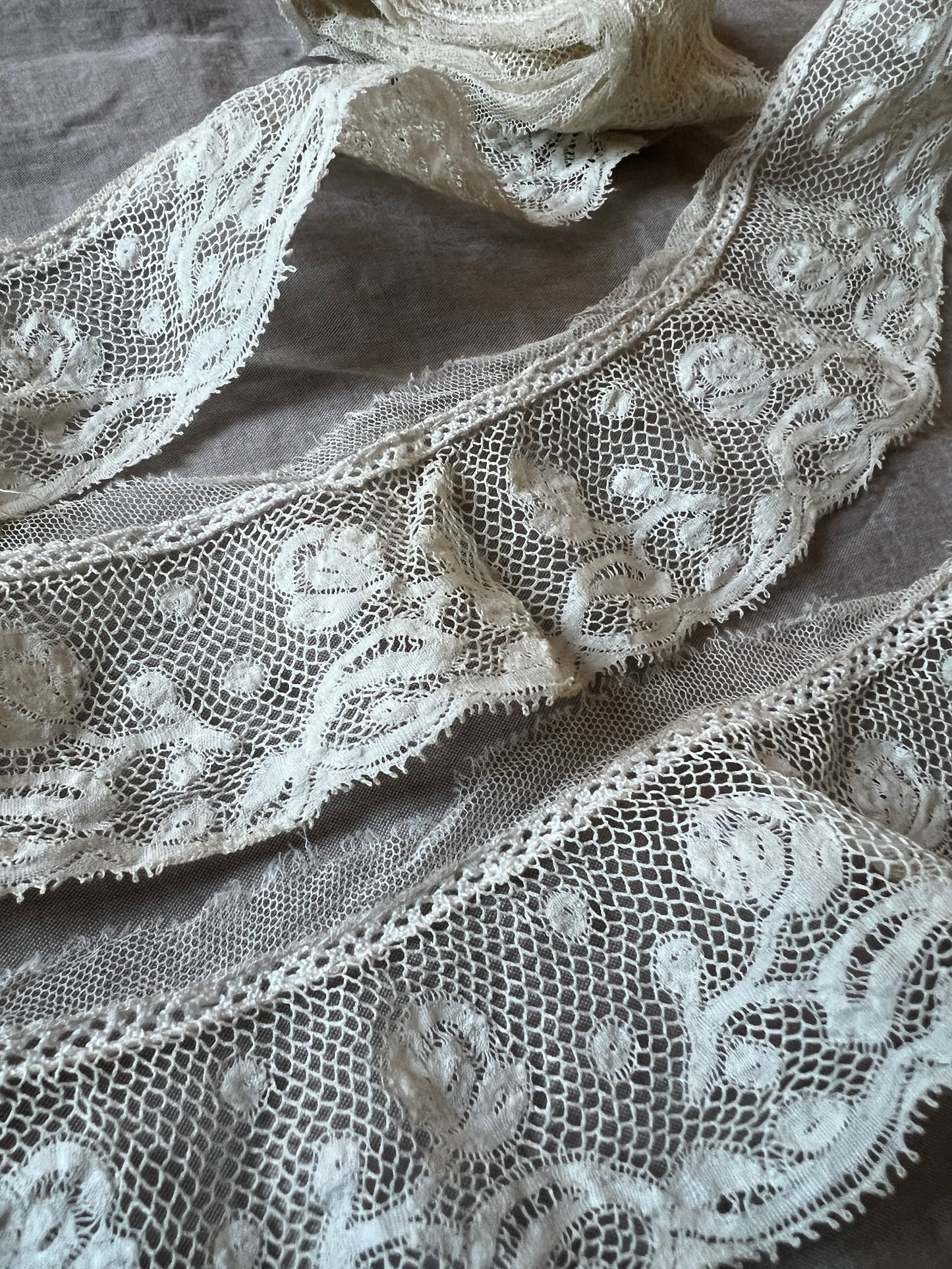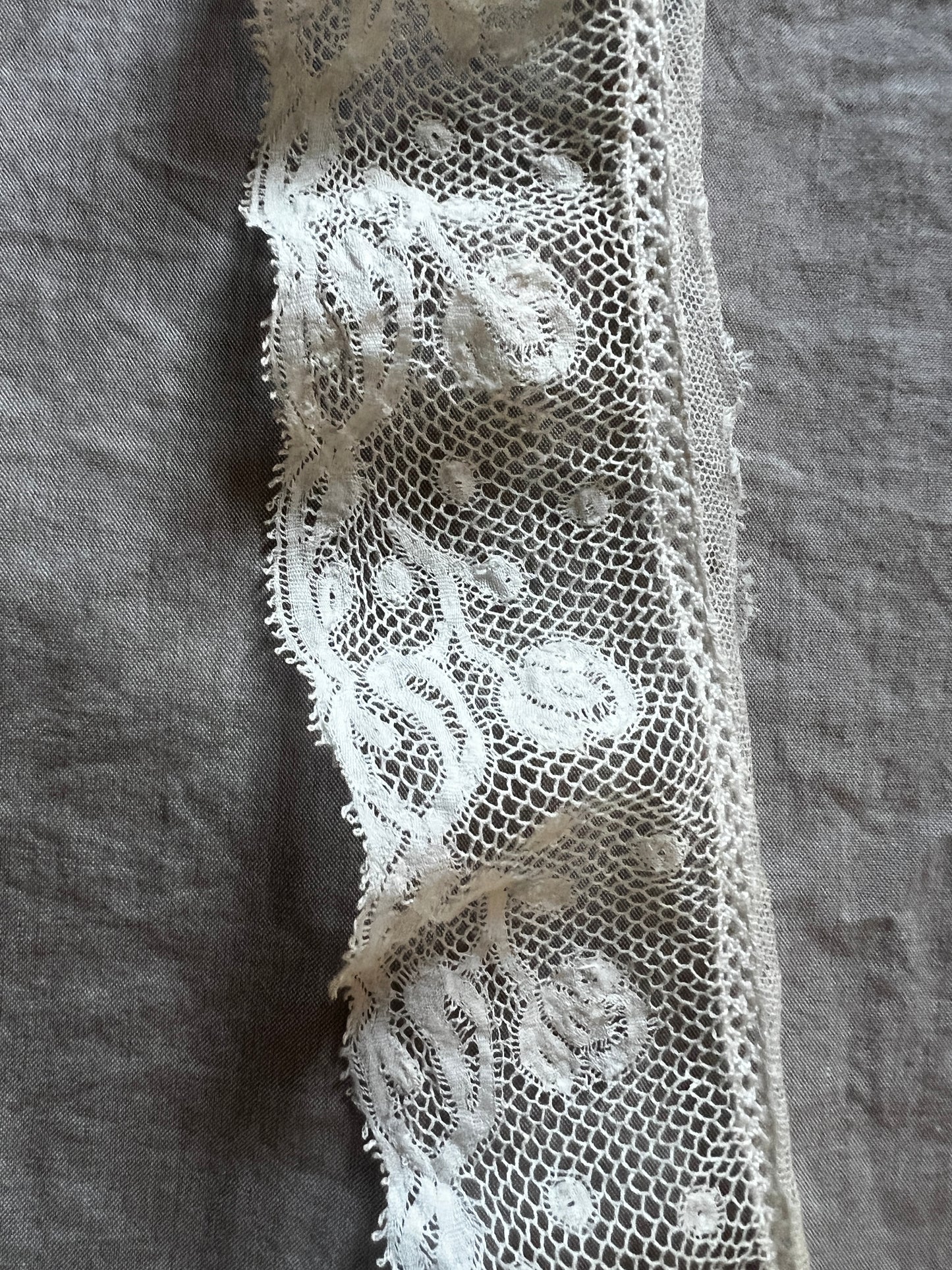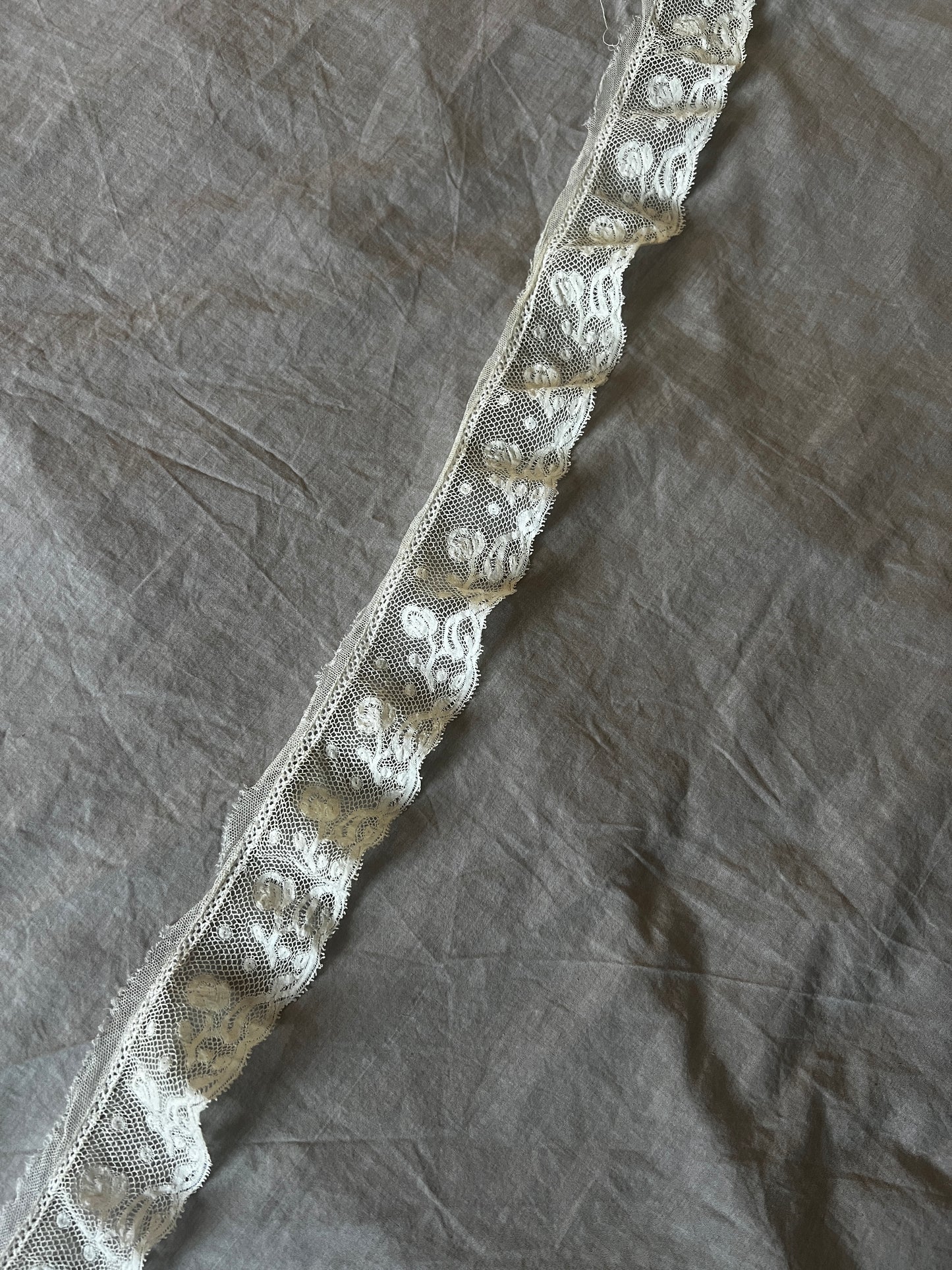 薄く軽やかな質感のヴァランシエンヌレースがややカーブのついたゆるめのフリル状になっています