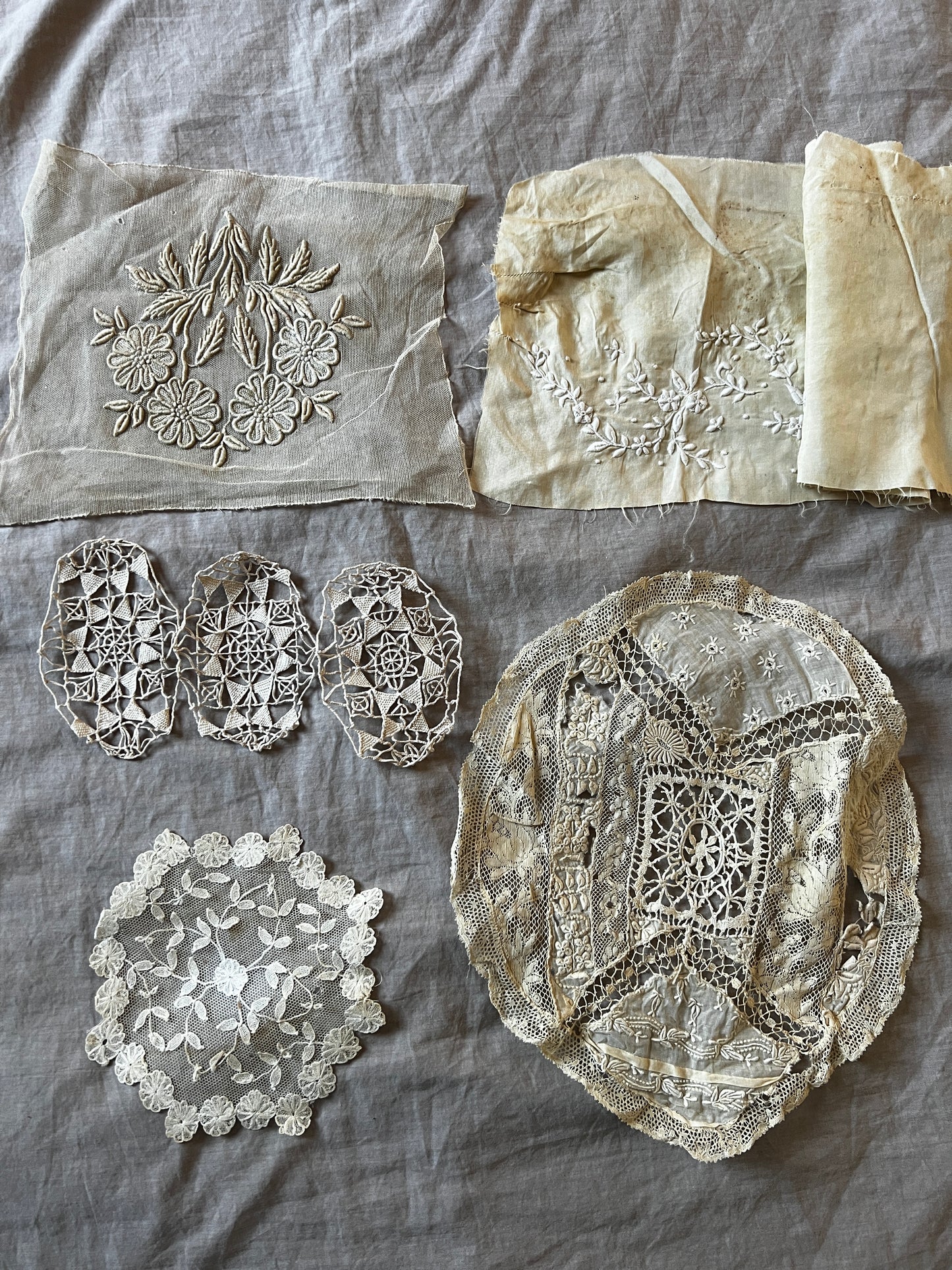 ニードルモチーフやアプリケーションレース、刺繍端布、ノルマンディーレースをセットにしました