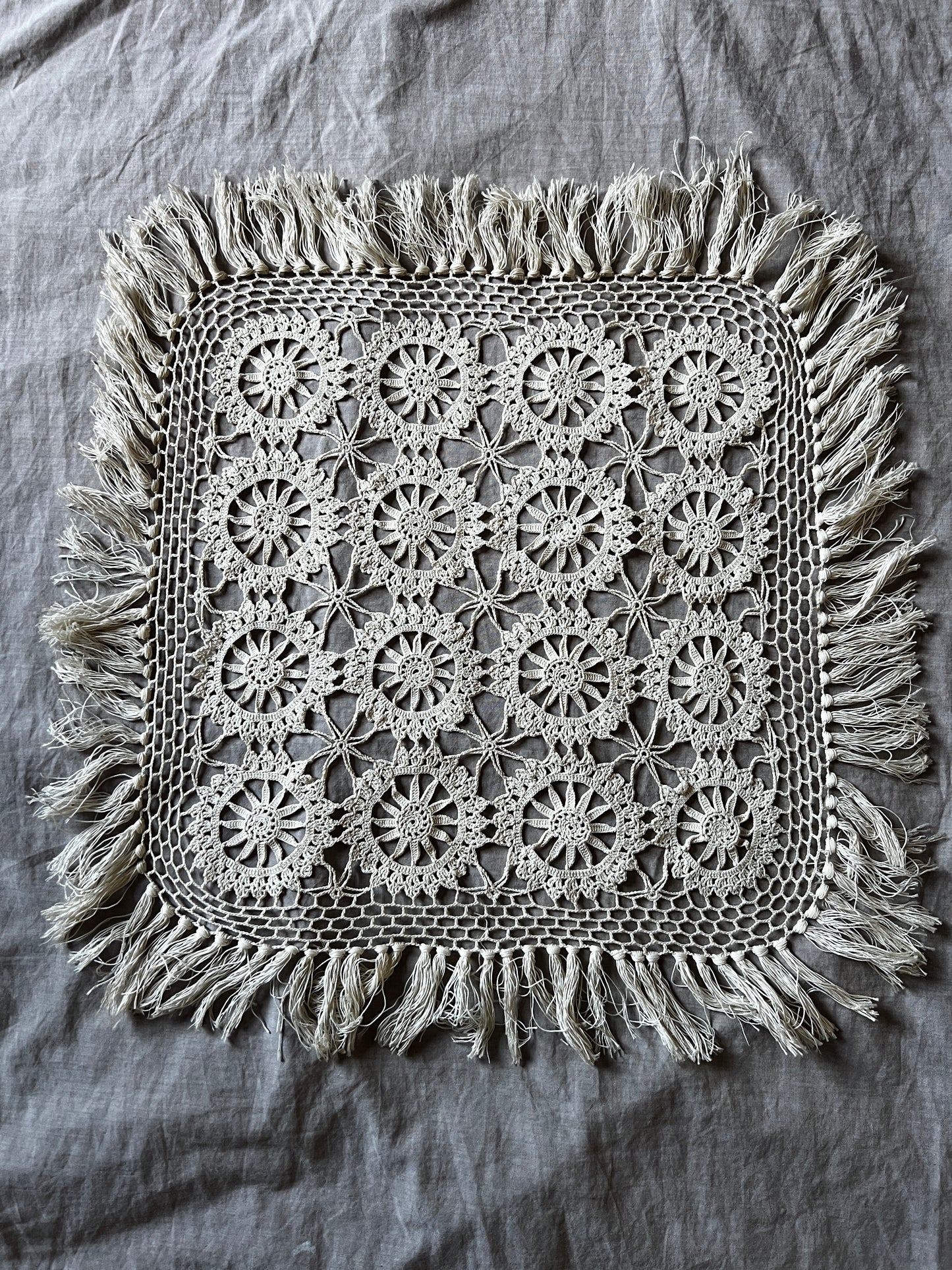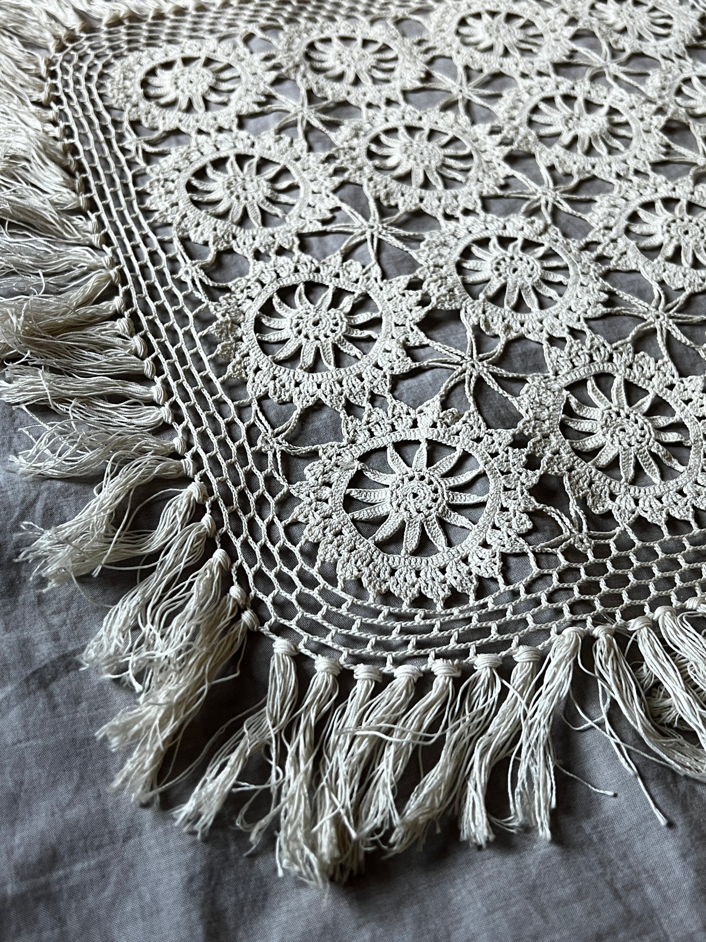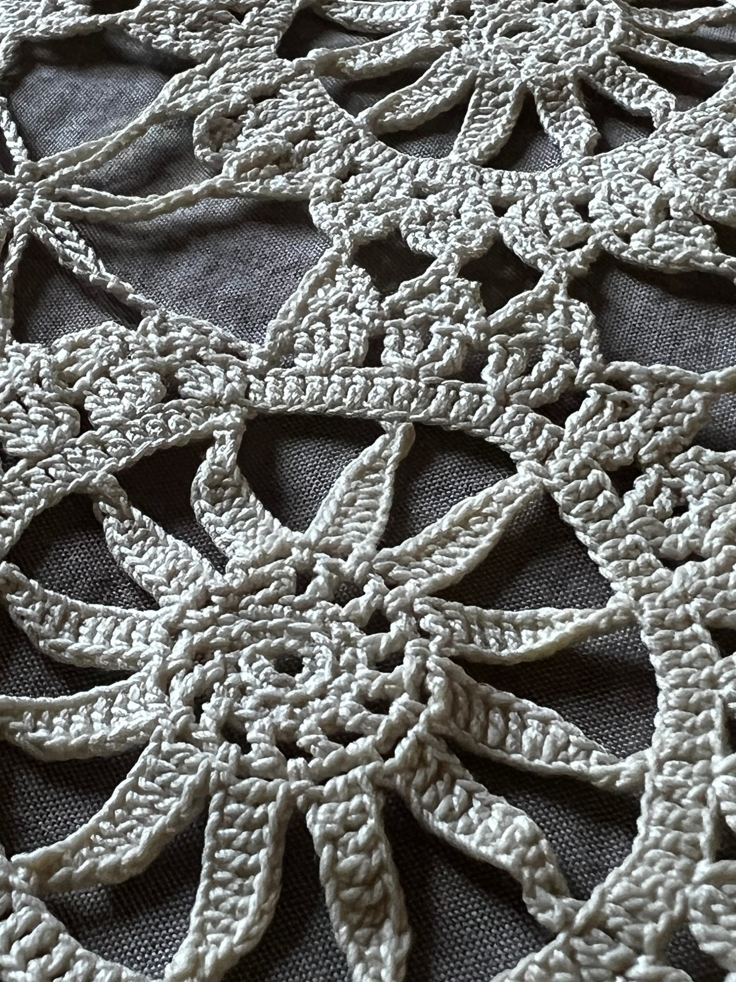 クロシェレース編みのモチーフをつないだかわいらしいマットです