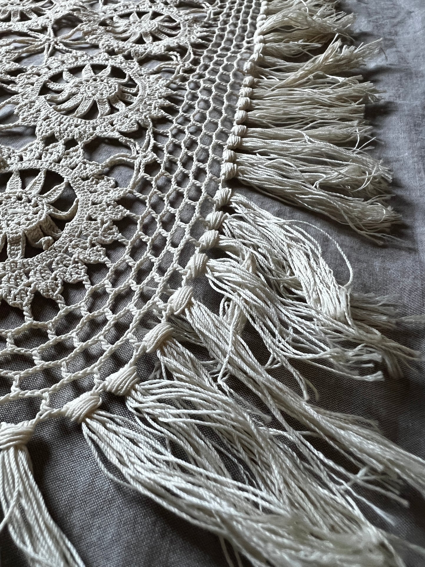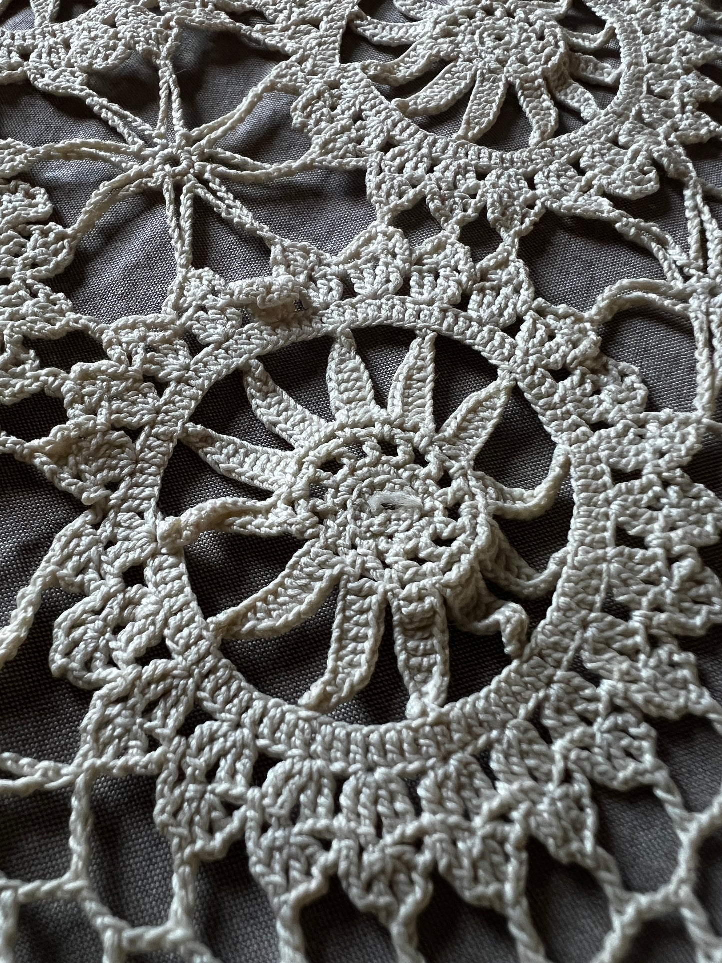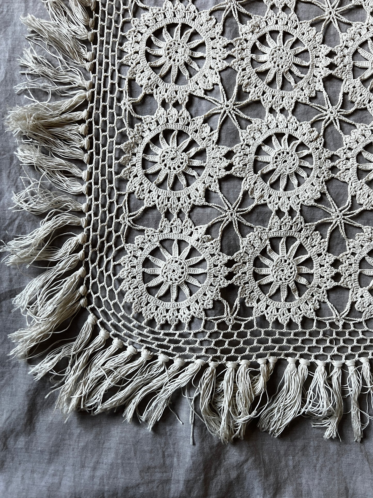 クロシェレース編みのモチーフをつないだかわいらしいマットです