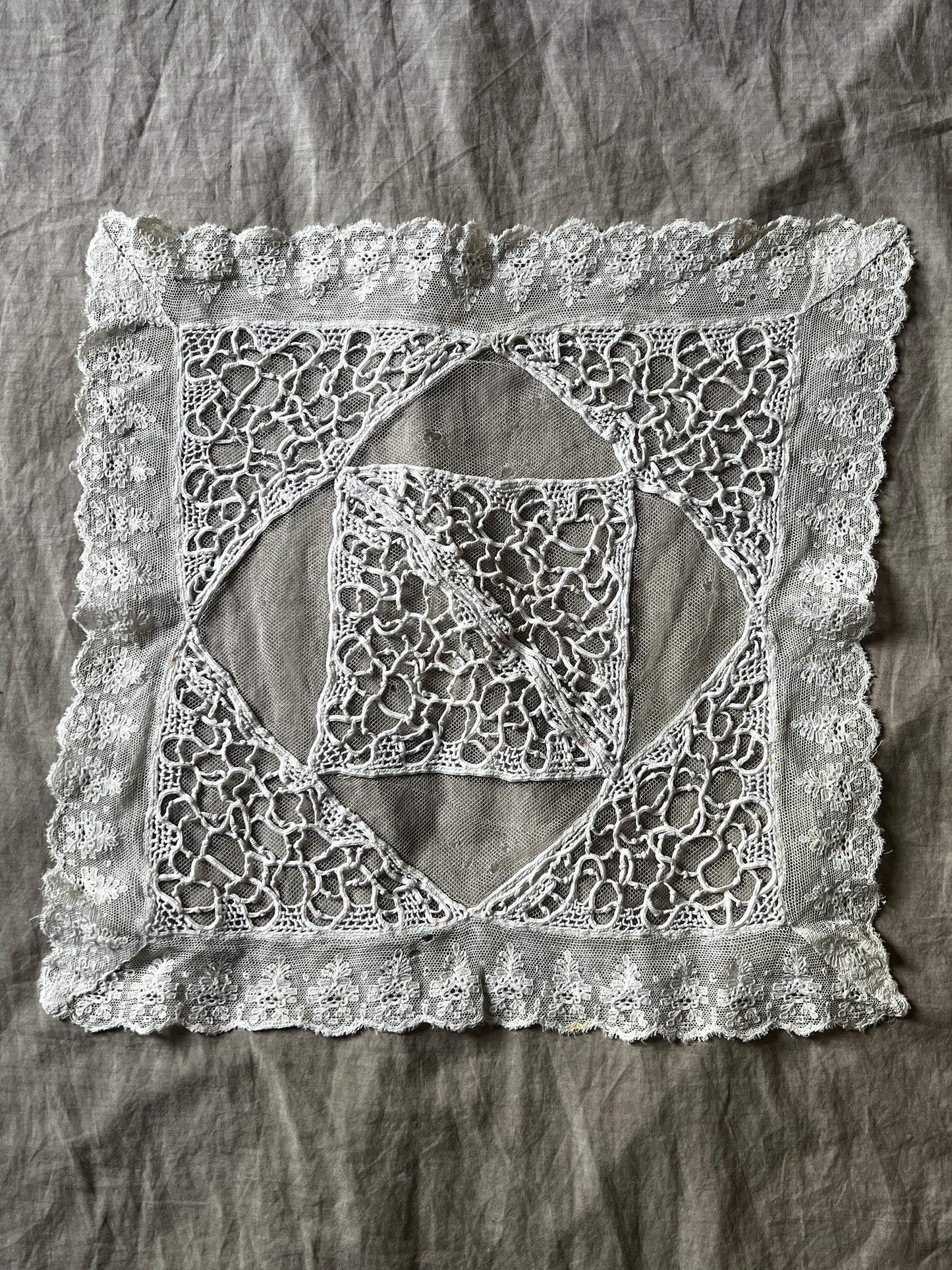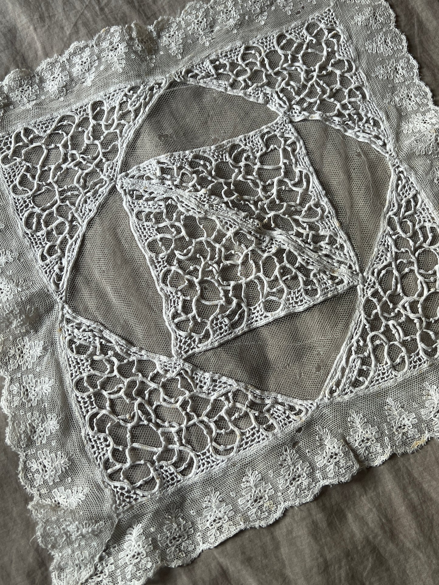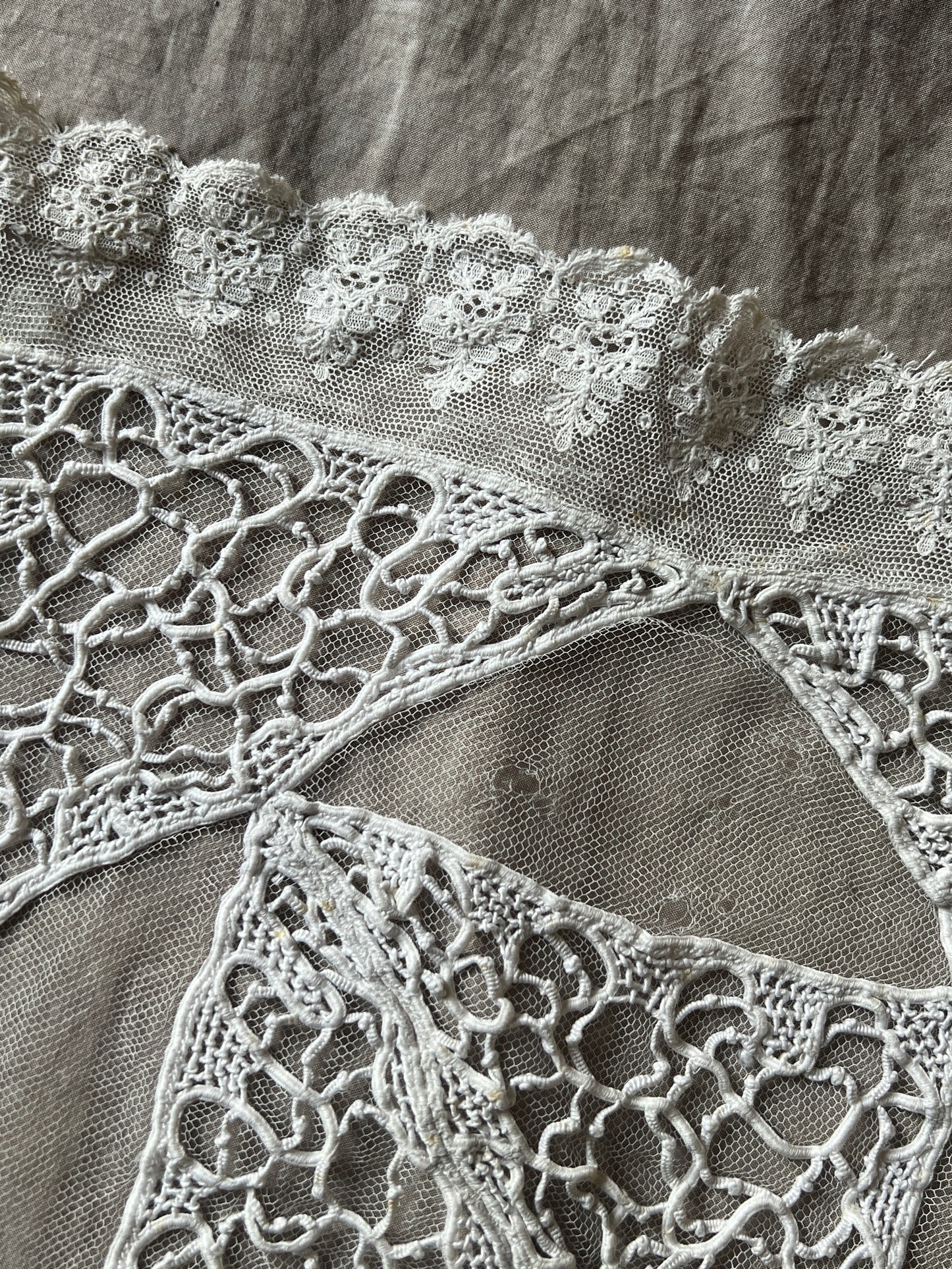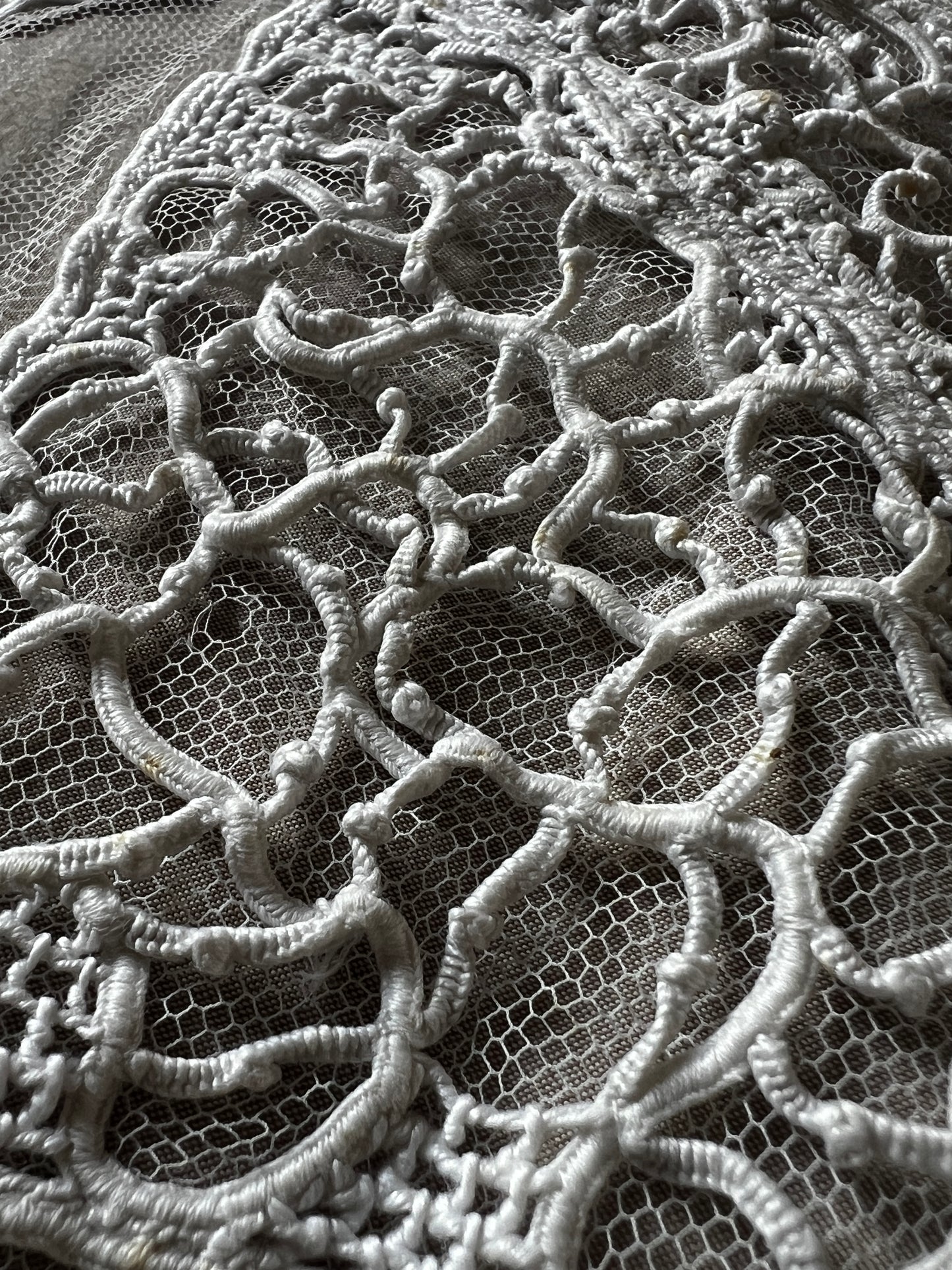 チュールレースにニードルレースを重ねたデザインの飾り布です