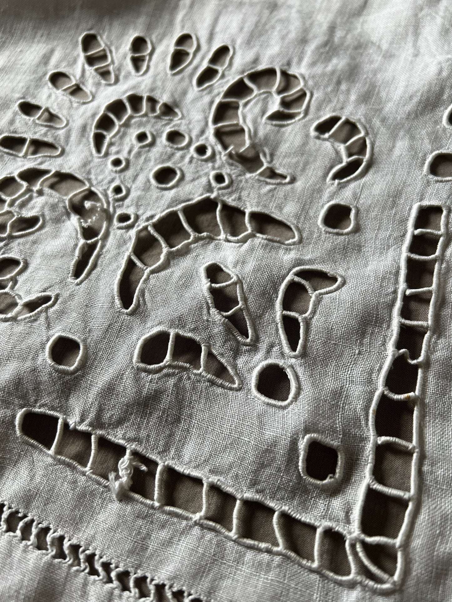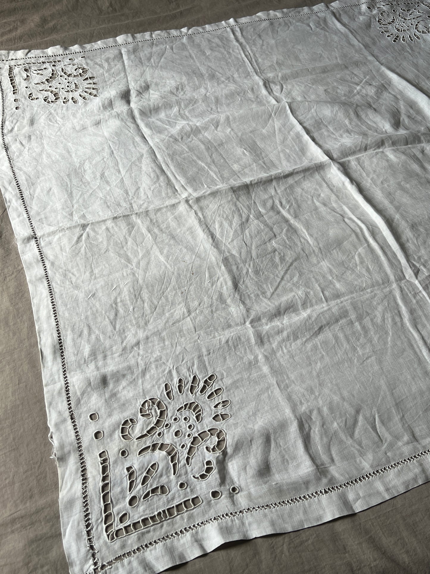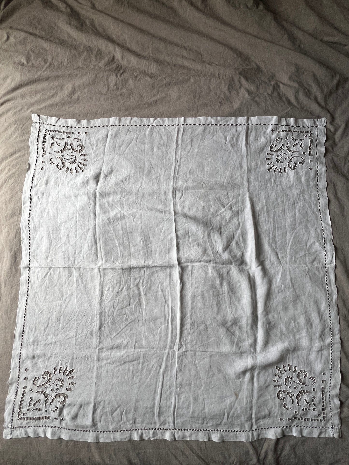四隅にカットワーク刺繍が施されたデザインの正方形クロスです