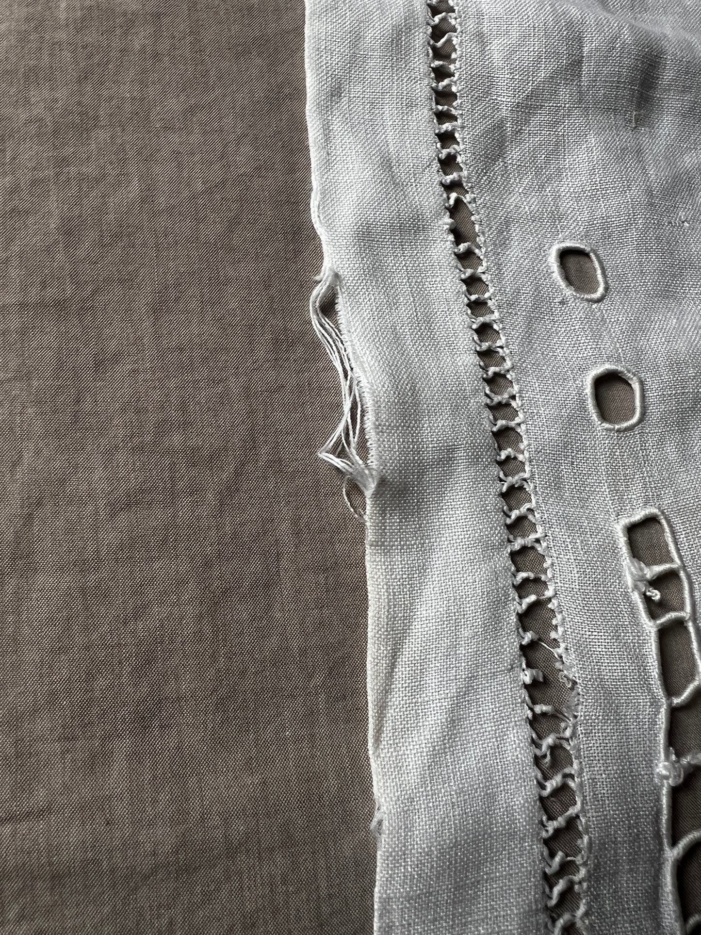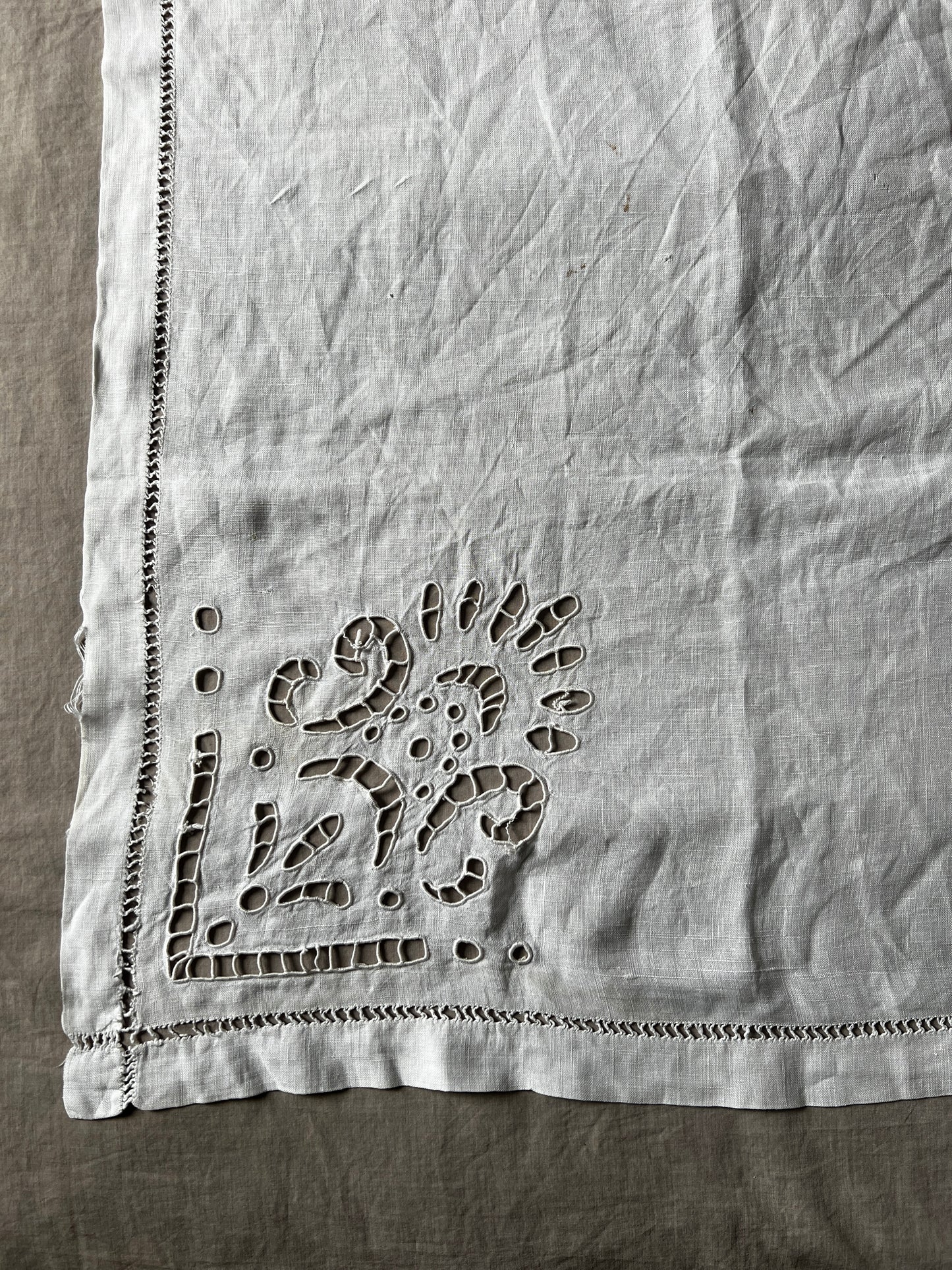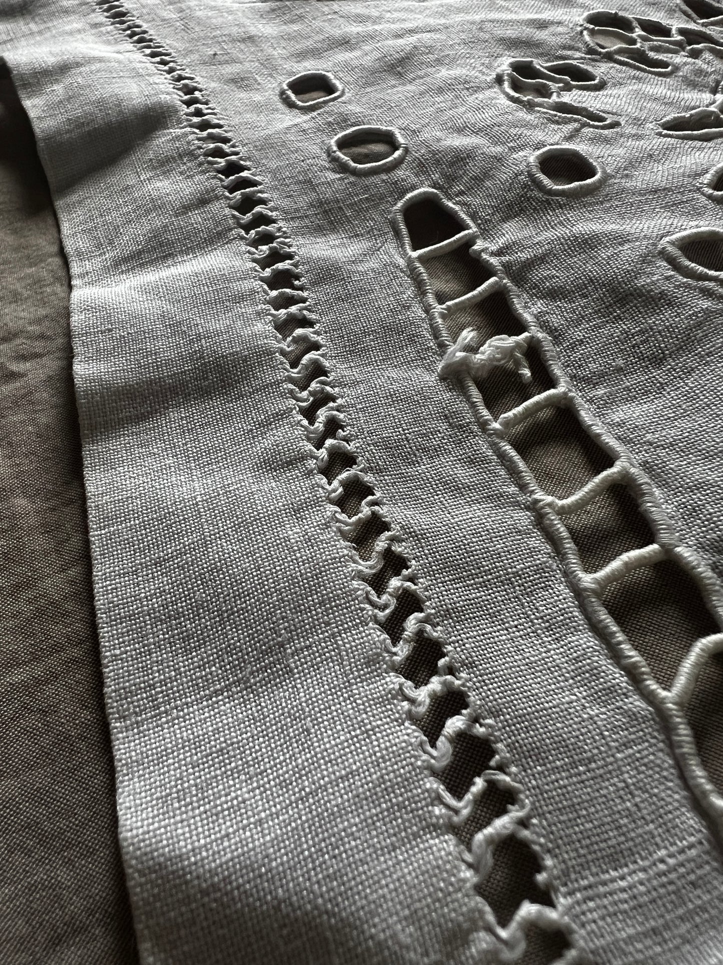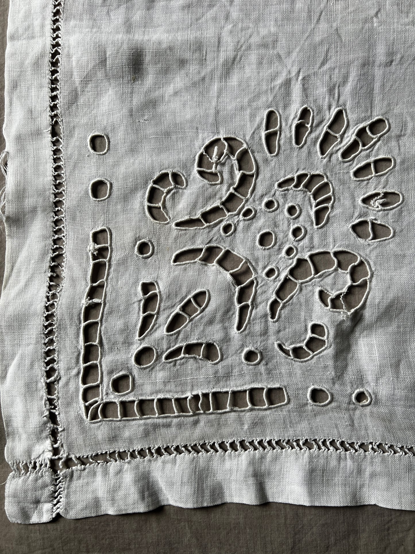 四隅にカットワーク刺繍が施されたデザインの正方形クロスです