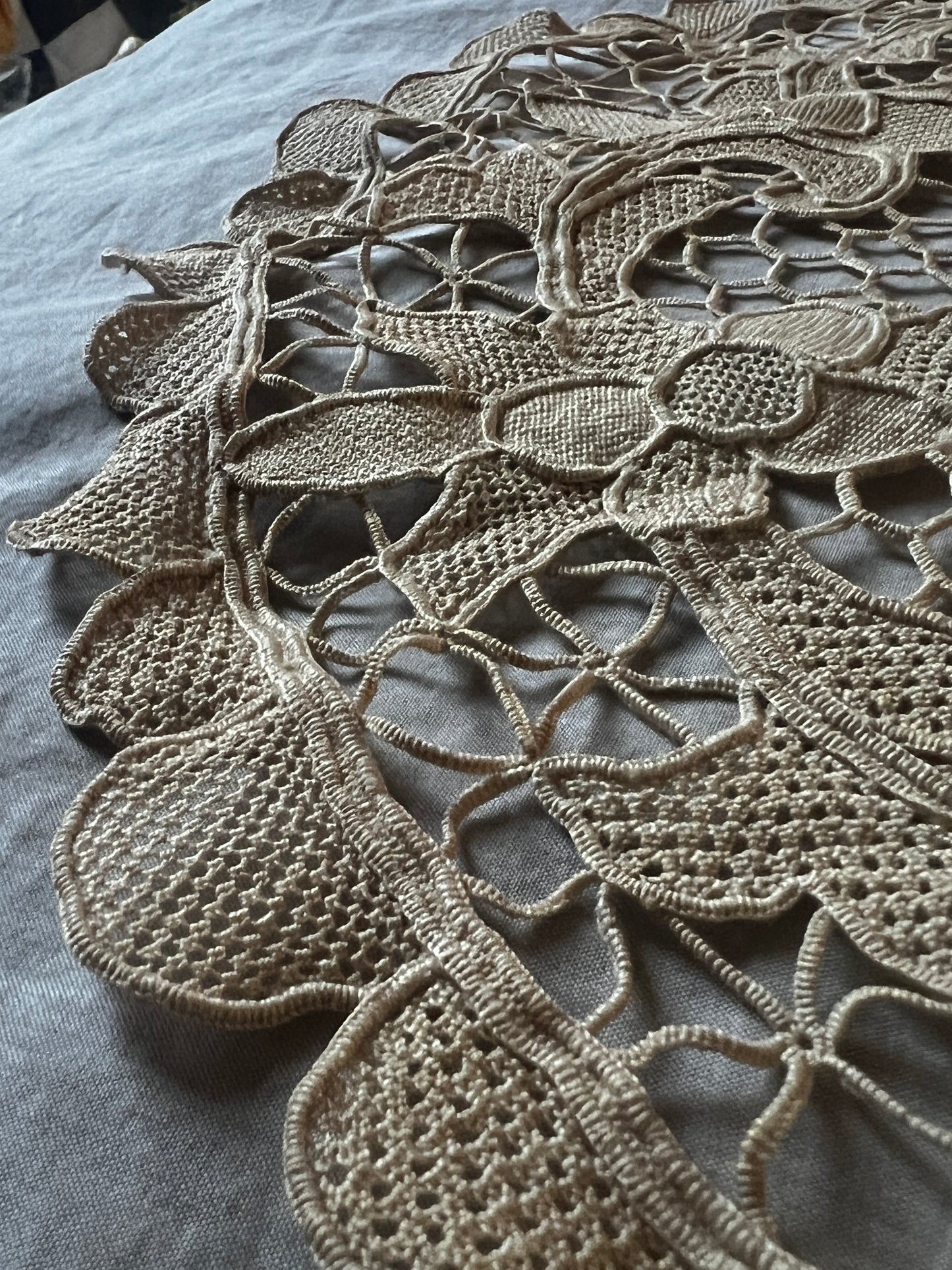 淡いカフェオレ色の円形クロスです