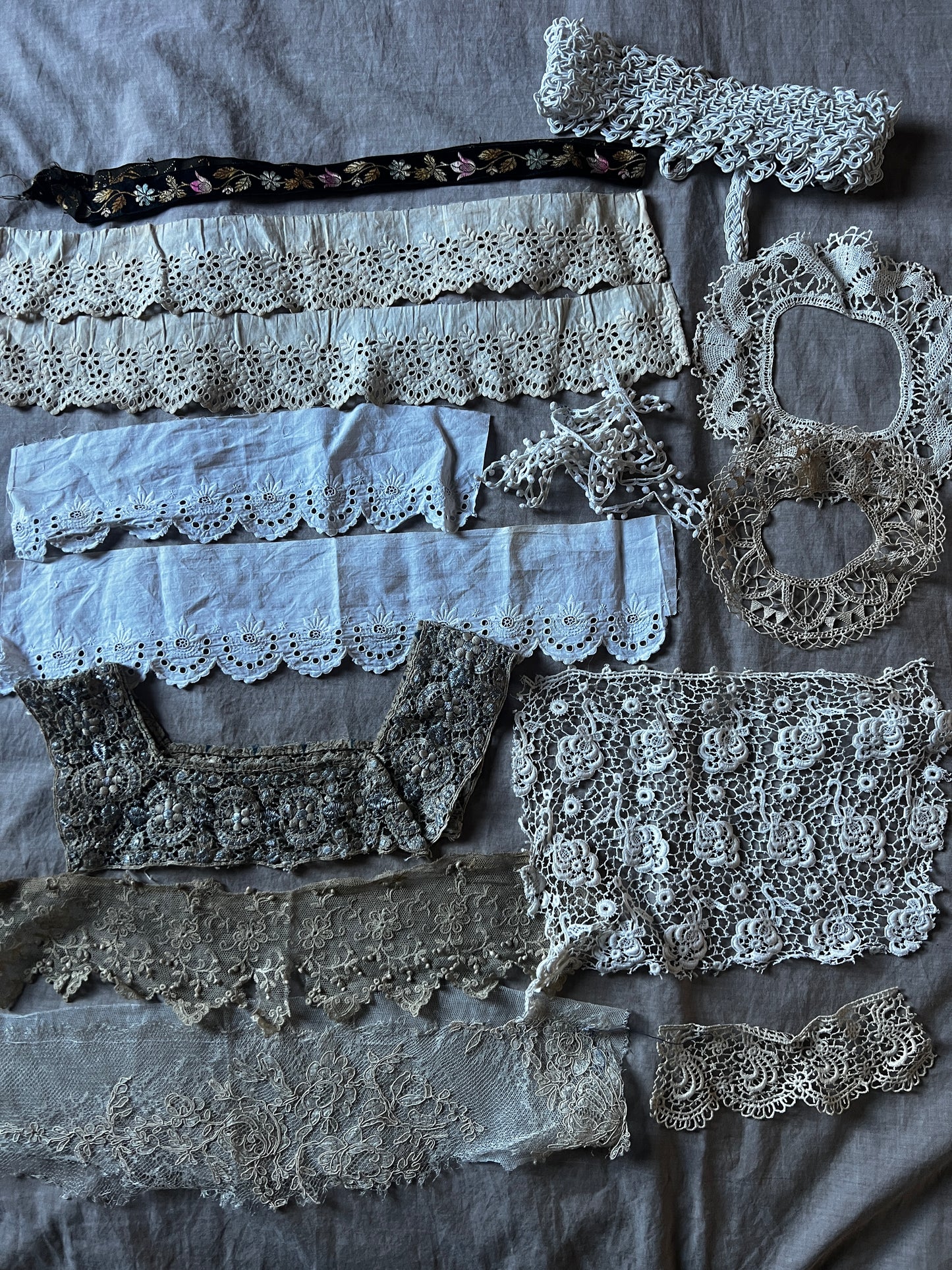 チュール刺繍レースやギュピールレース、刺繍トリムなどをセットにしました