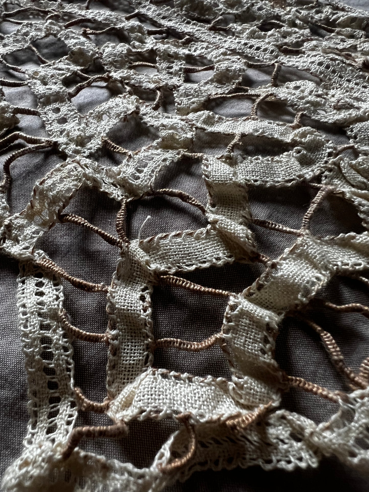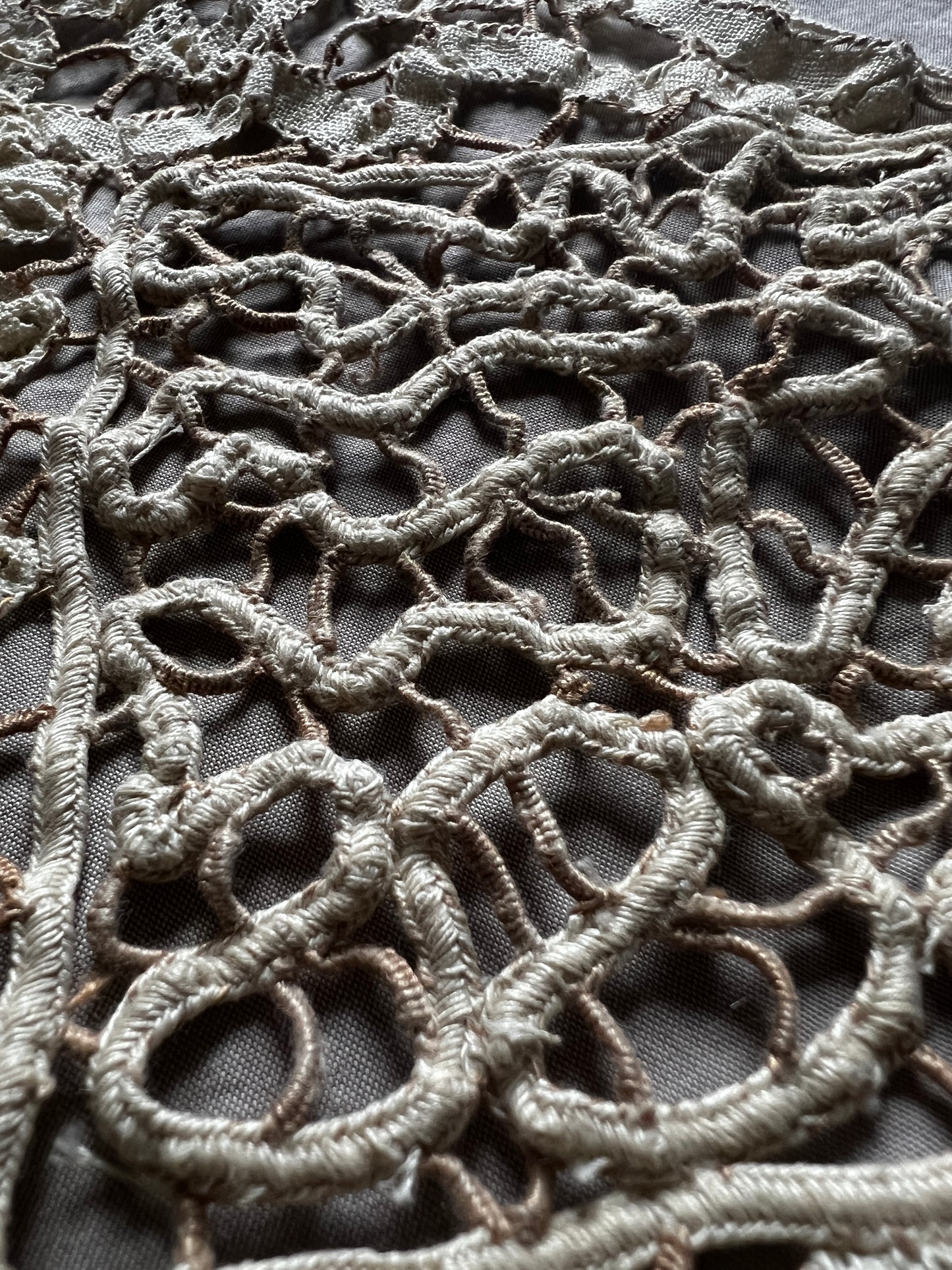 ミルクティーの良な色糸が使用されており、落ち着いた雰囲気に仕上がっています