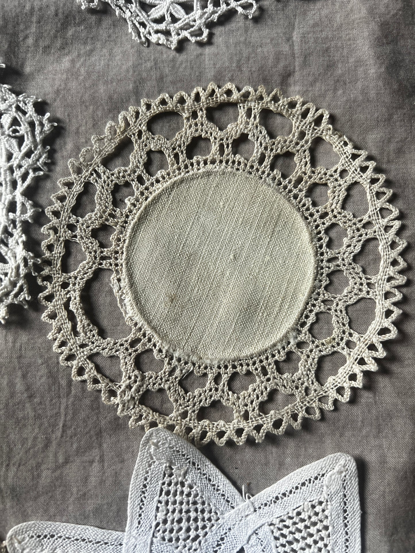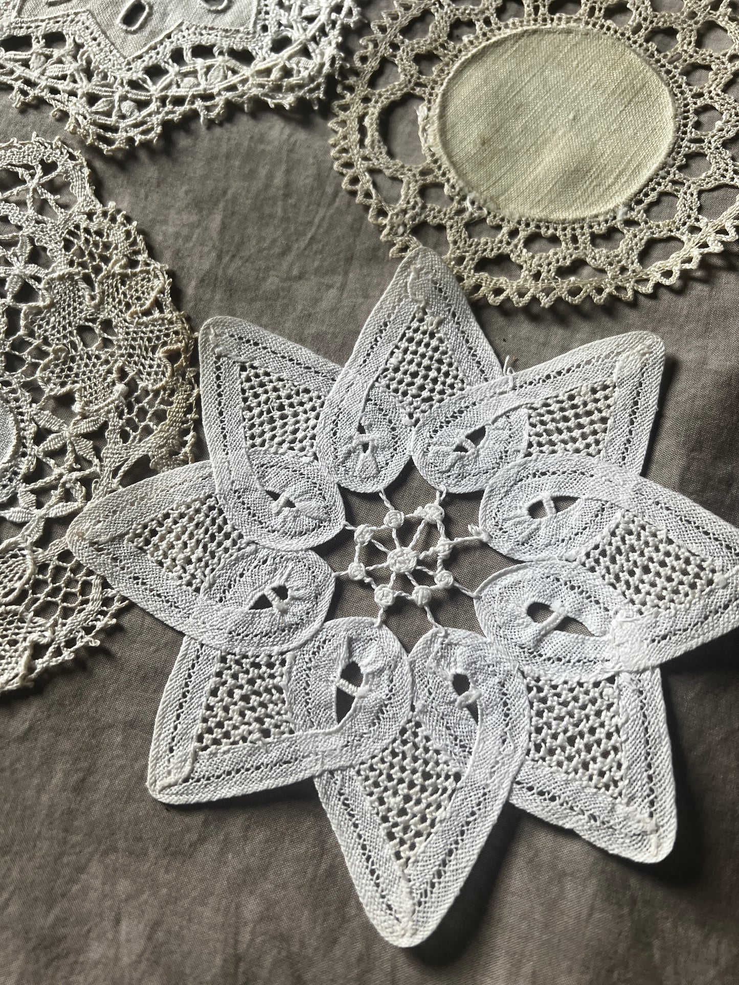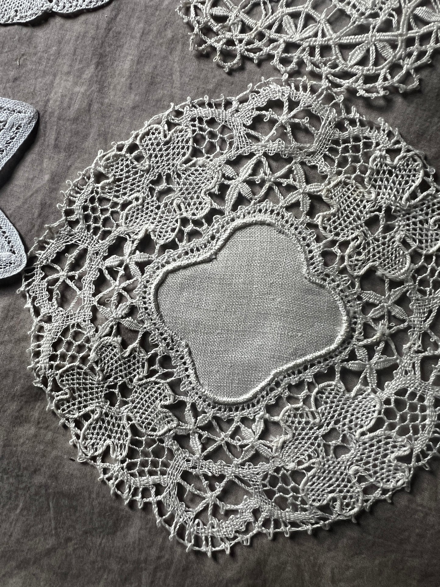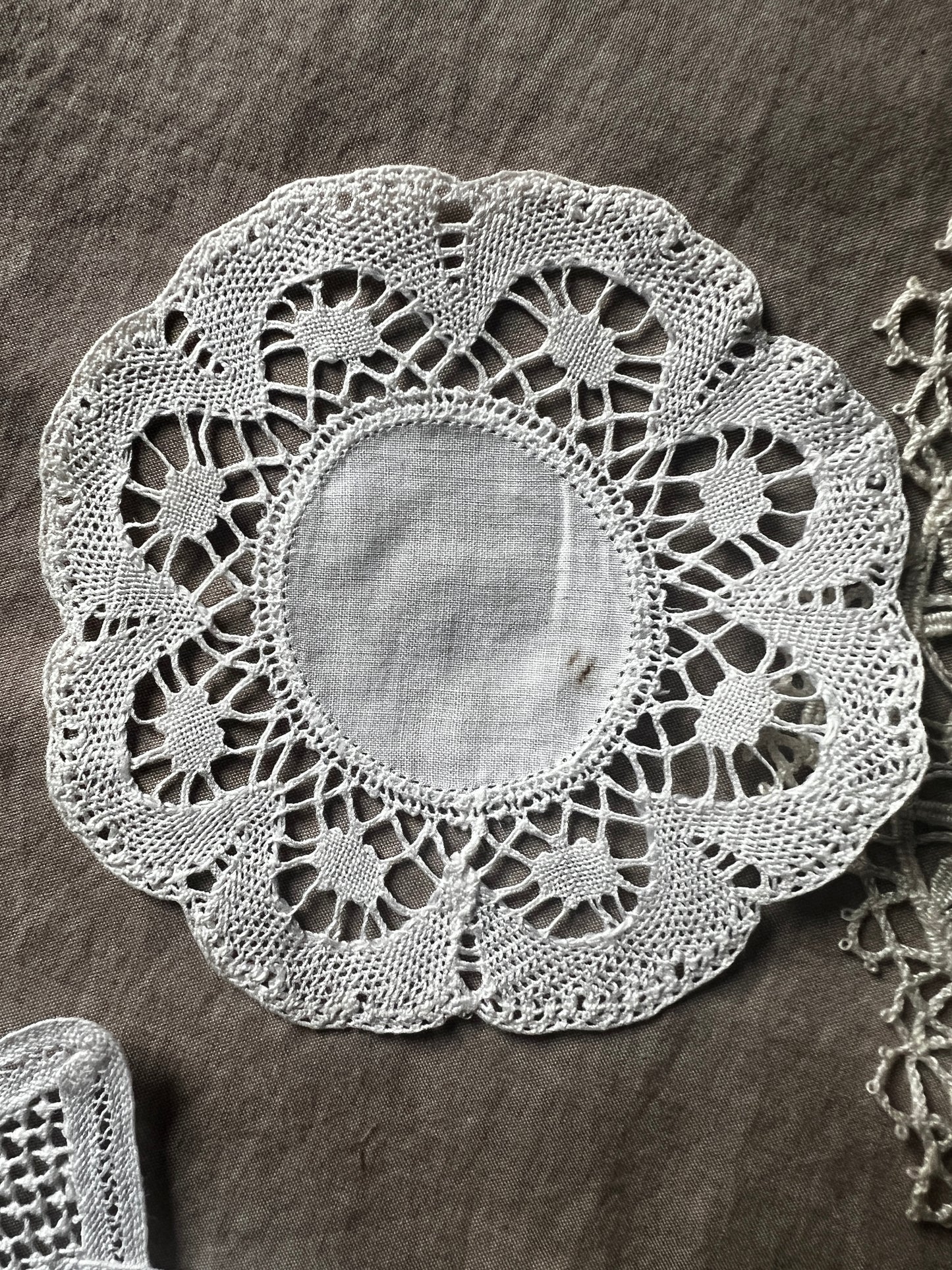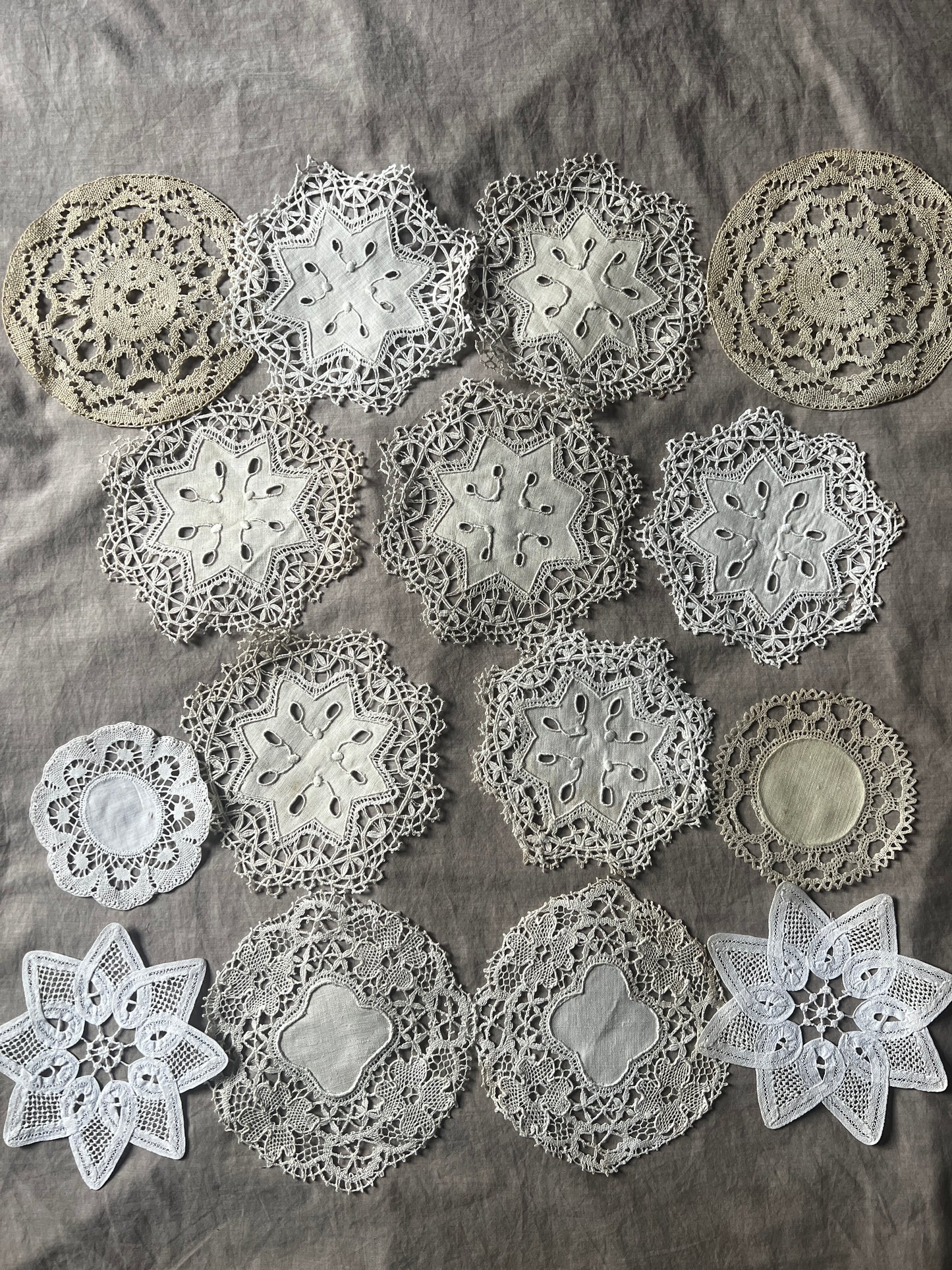 手のひらほどのサイズのドイリーを集めてセットにしました