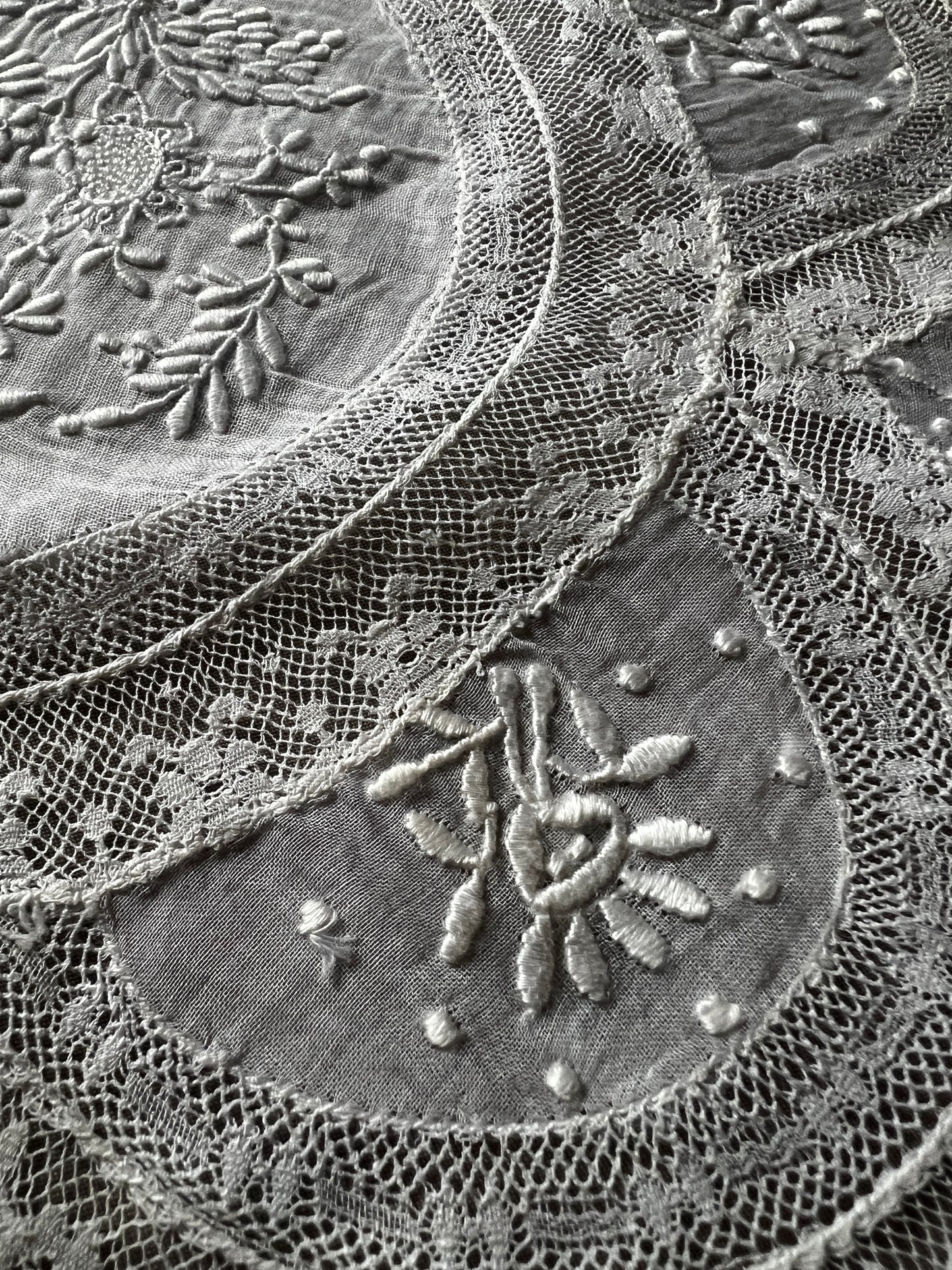 繊細なレースと刺繍の組み合わせを楽しんでいただける一枚です