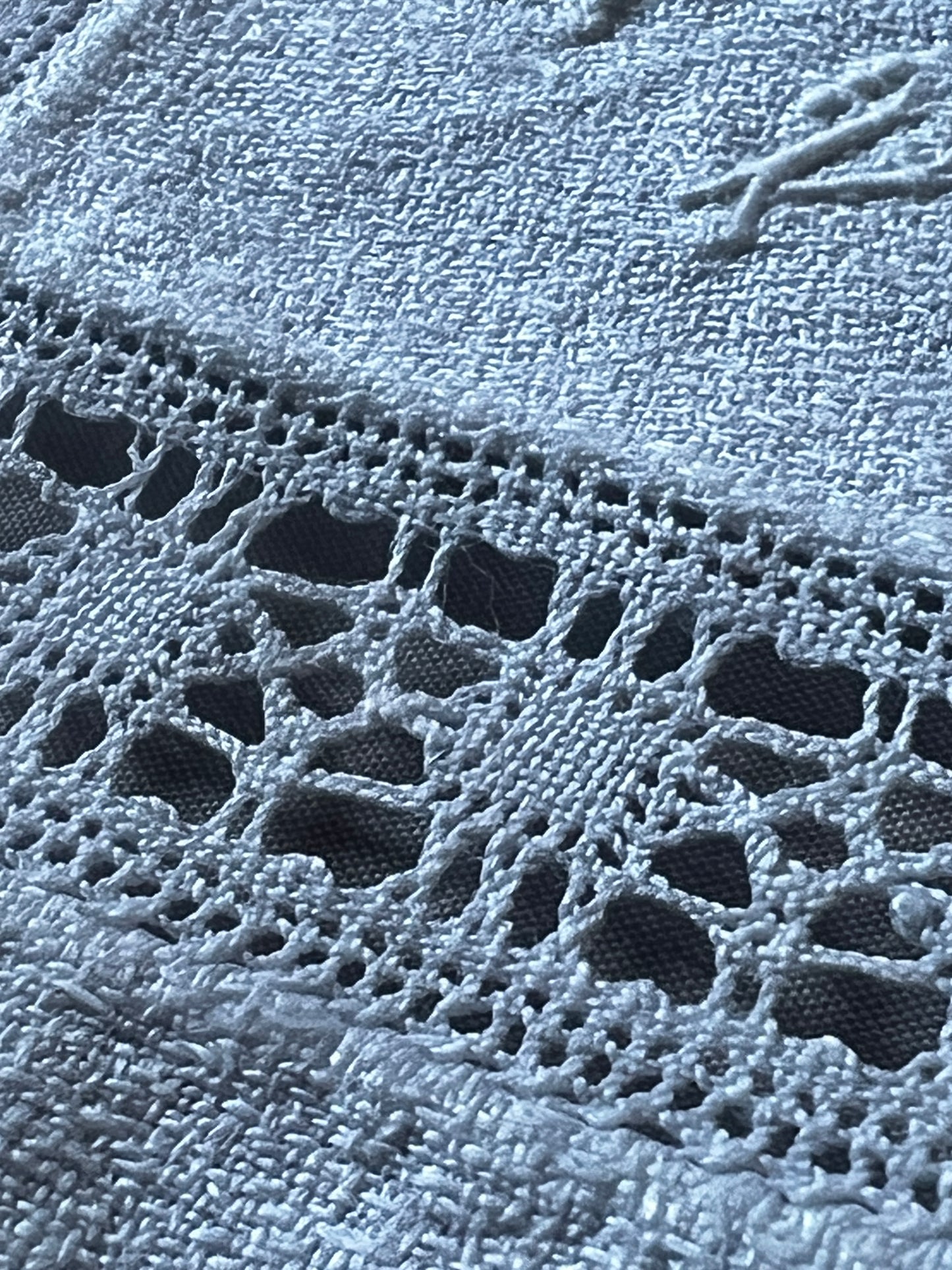 布地は手織りで拡大で見ると不揃いな織り目が確認できます