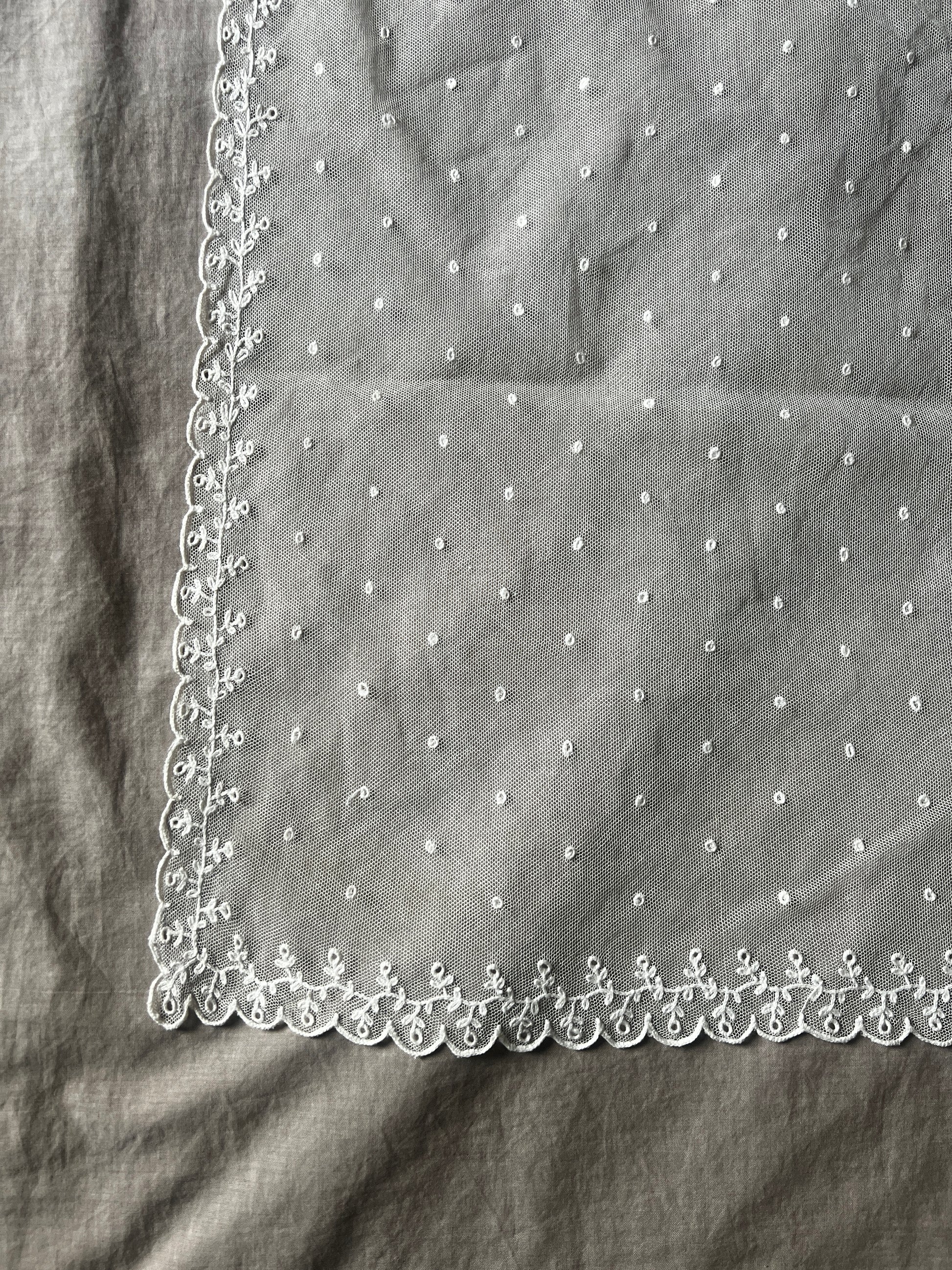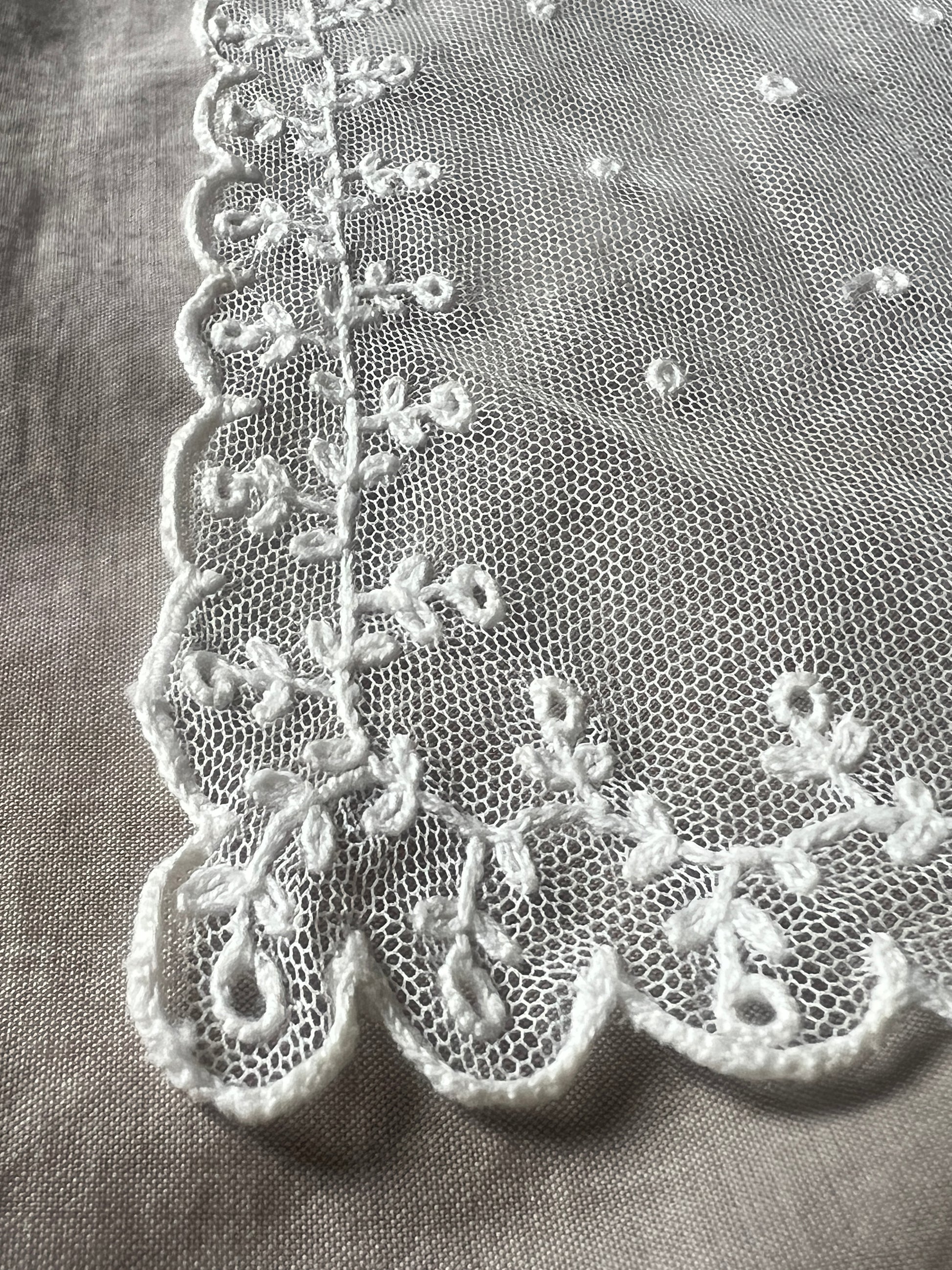 チュールレースに刺繍が施された愛らしい雰囲気のカーテンです