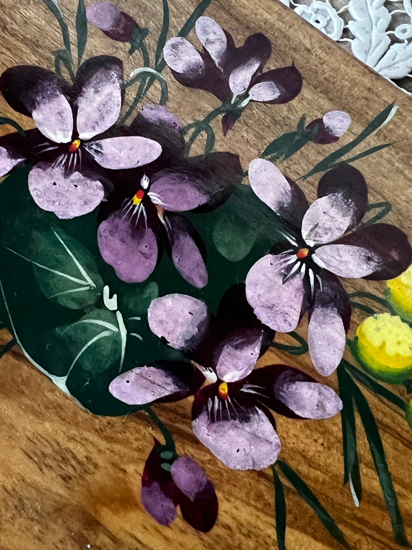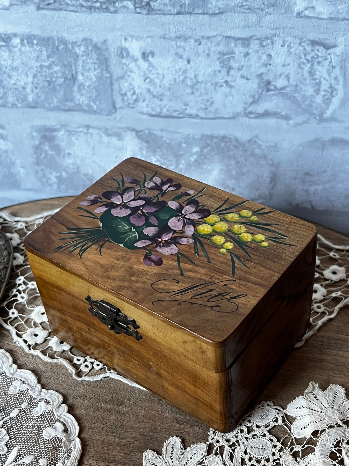 木製箱にハンドペイントが施されたモシュリンヌの小箱です