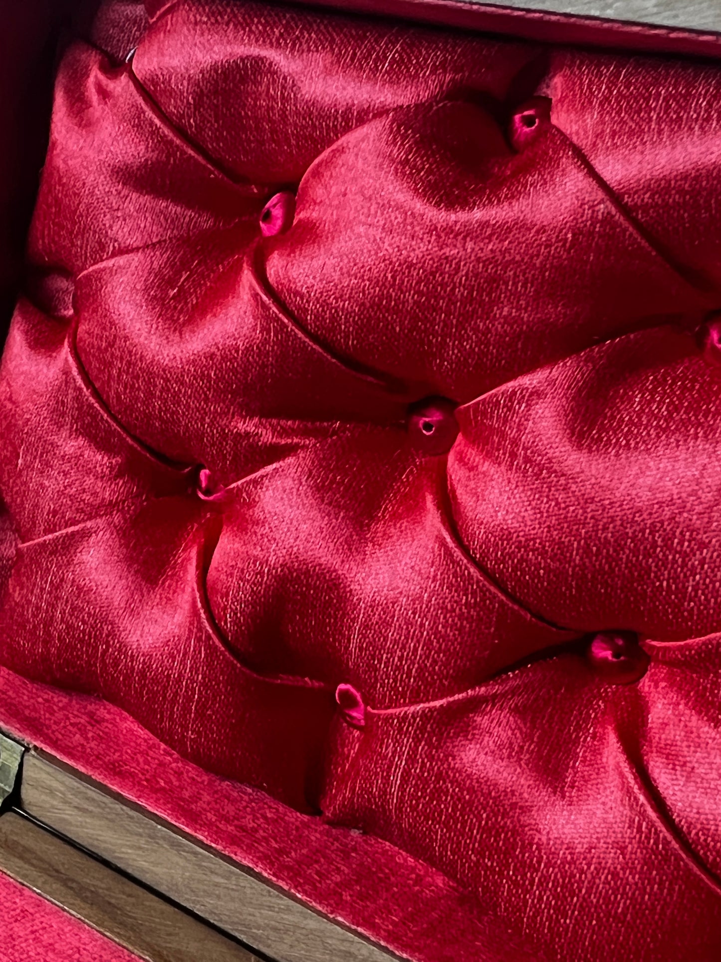 内部はサテン地でクッション仕上げにされており、繊細な宝物をふんわりと守って保管するのに最適です