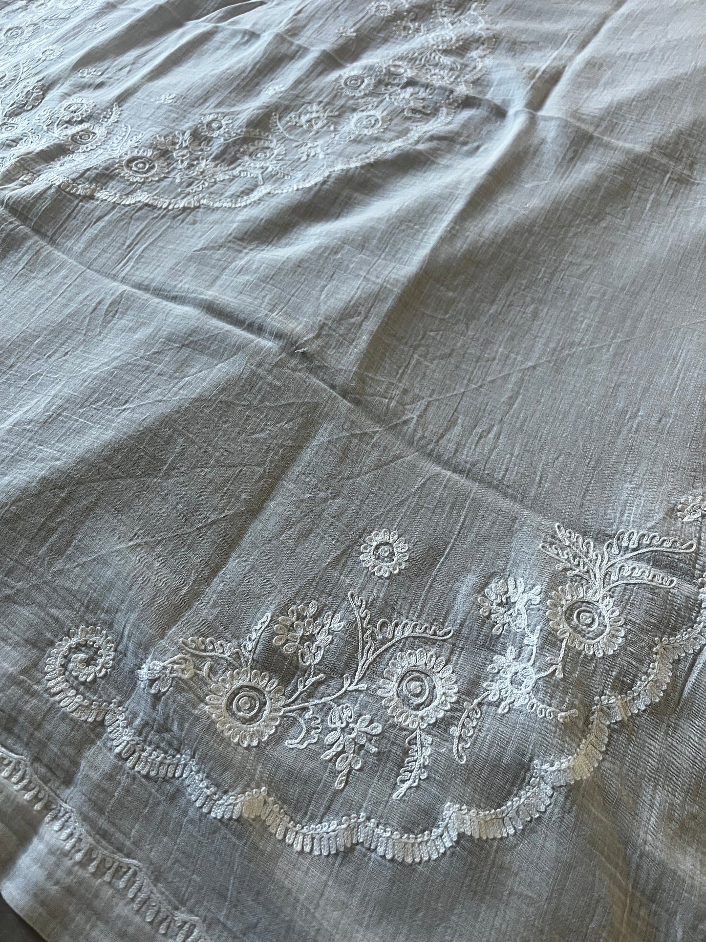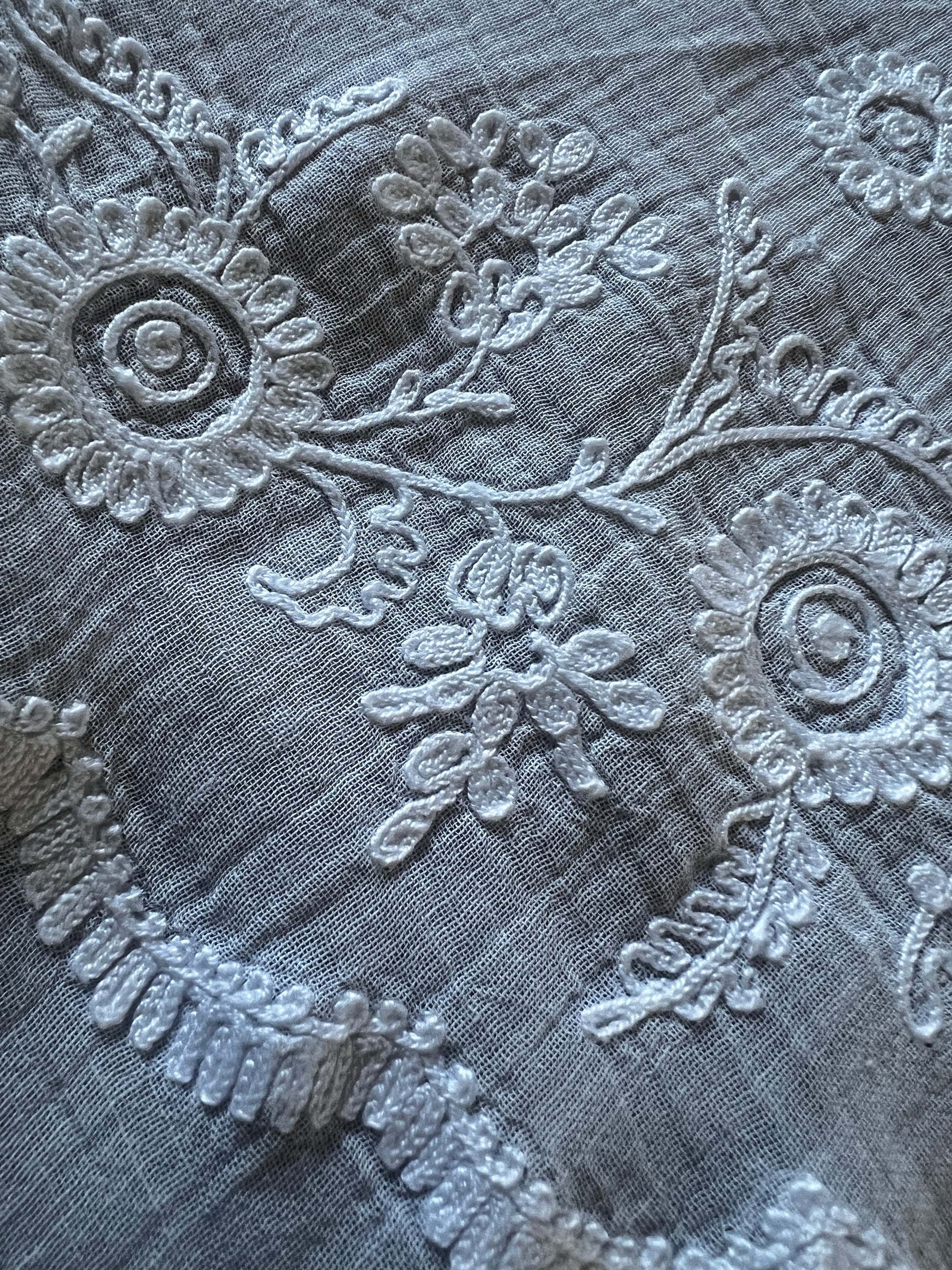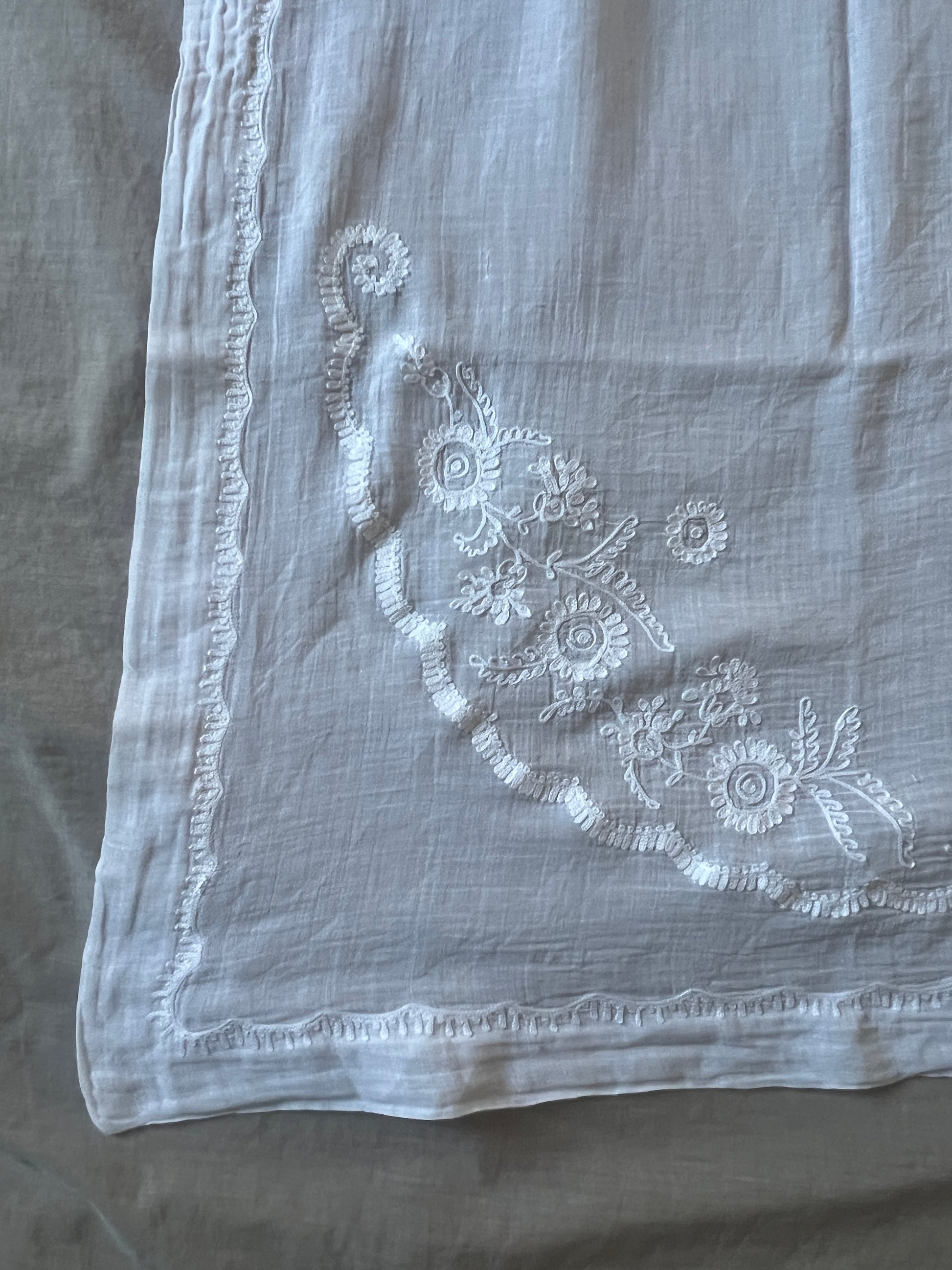 ローン地の薄布にコルネリー刺繍が施されています