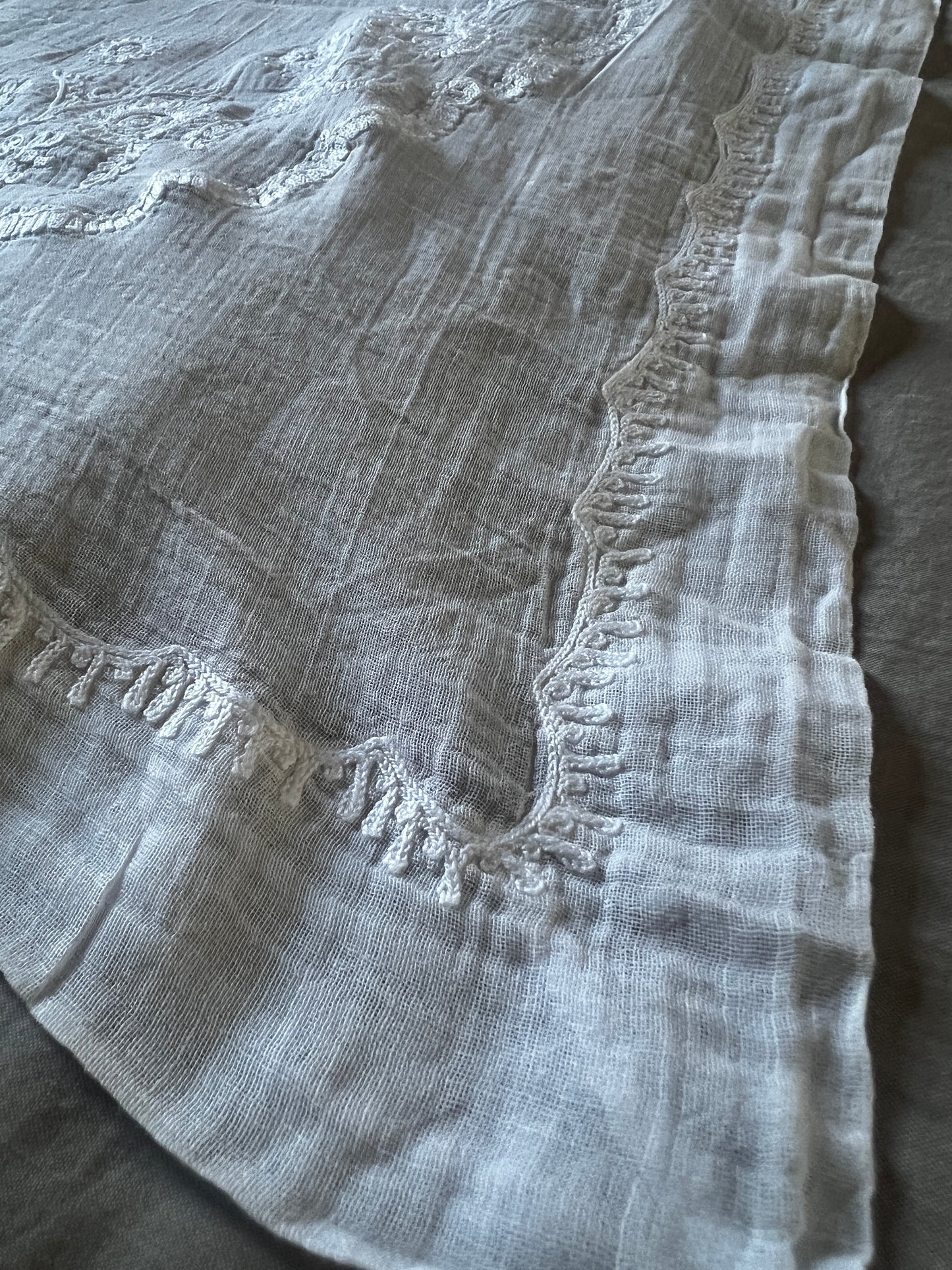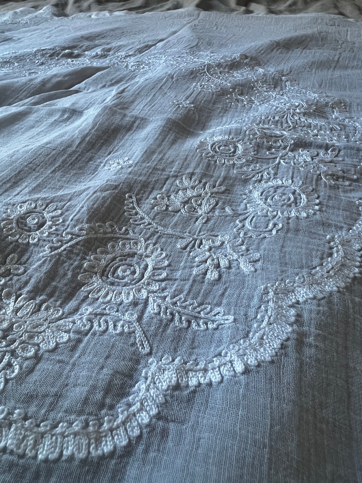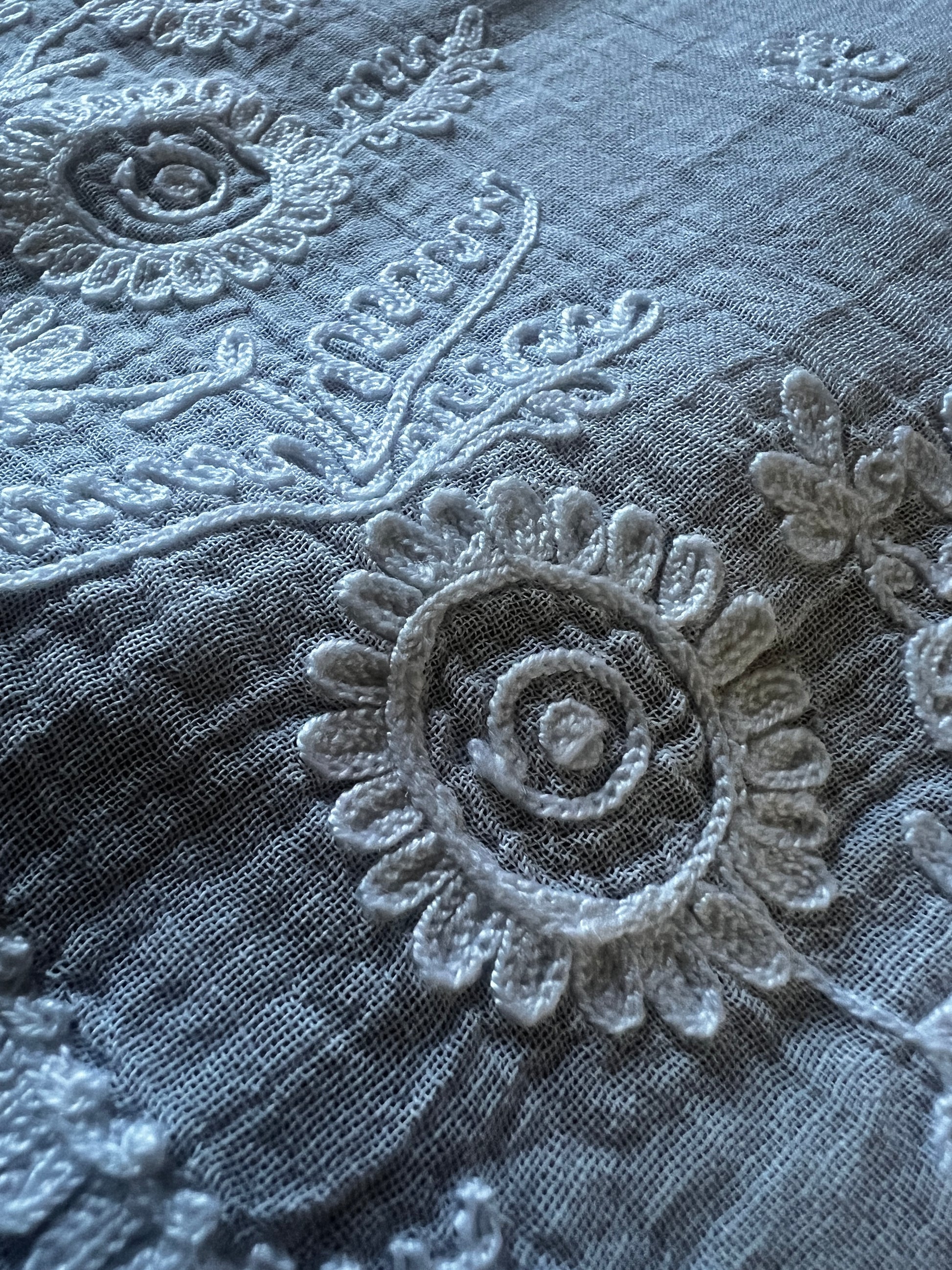 ローン地の薄布にコルネリー刺繍が施されています