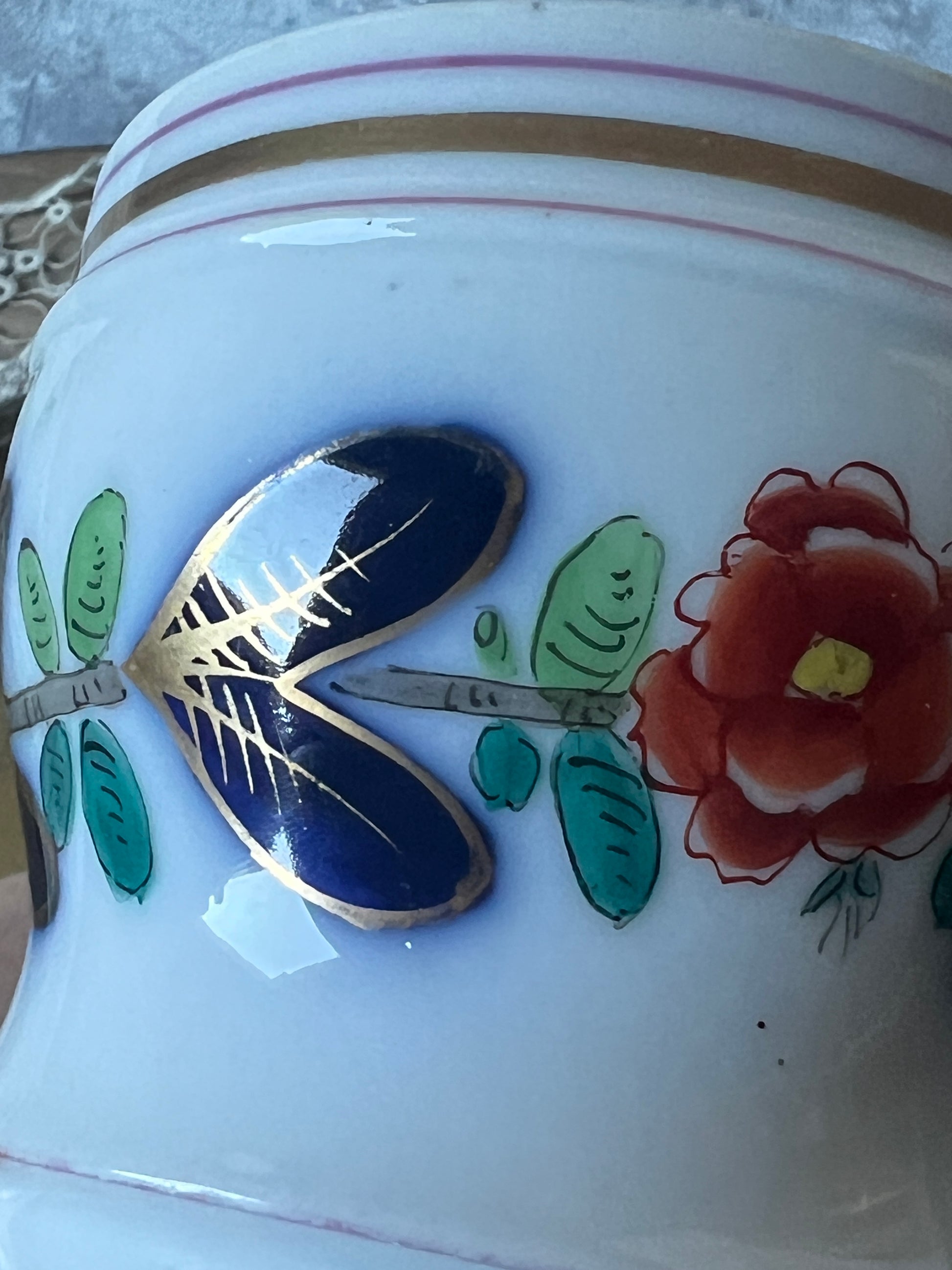 ハンドペイントの彩色で華やかに描かれた図柄が美しいお品です