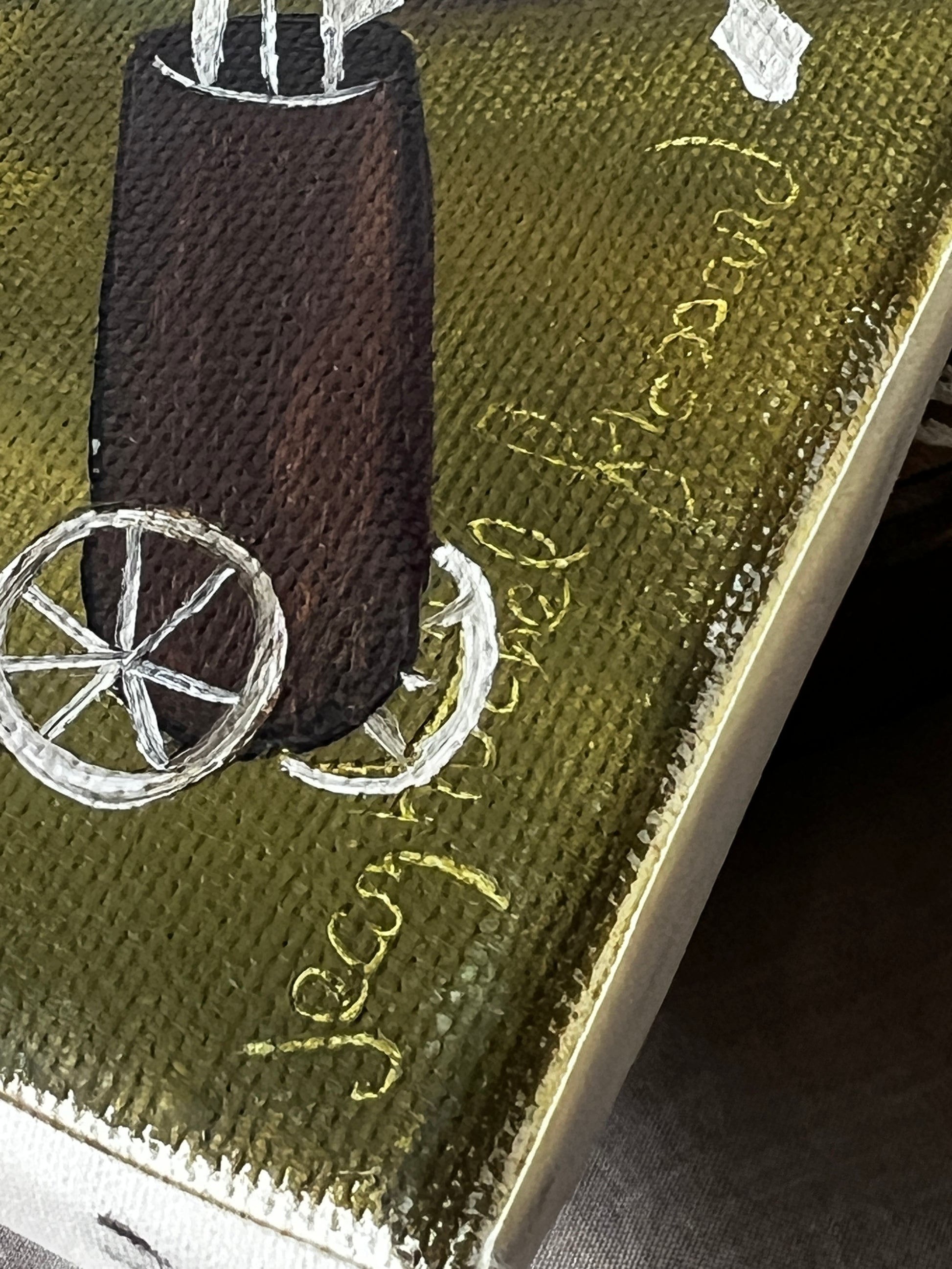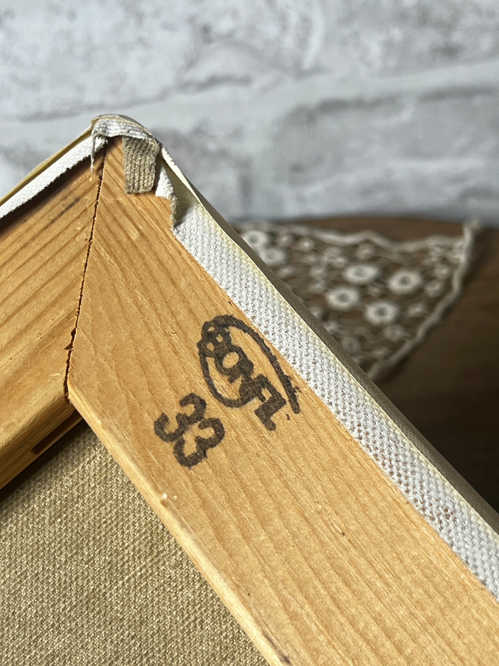 作者名や詳細な来歴は不明ながらも、作品自体にしっかりとした個性とストーリー性が感じられ、空間を楽しく彩ってくれる一枚となっています