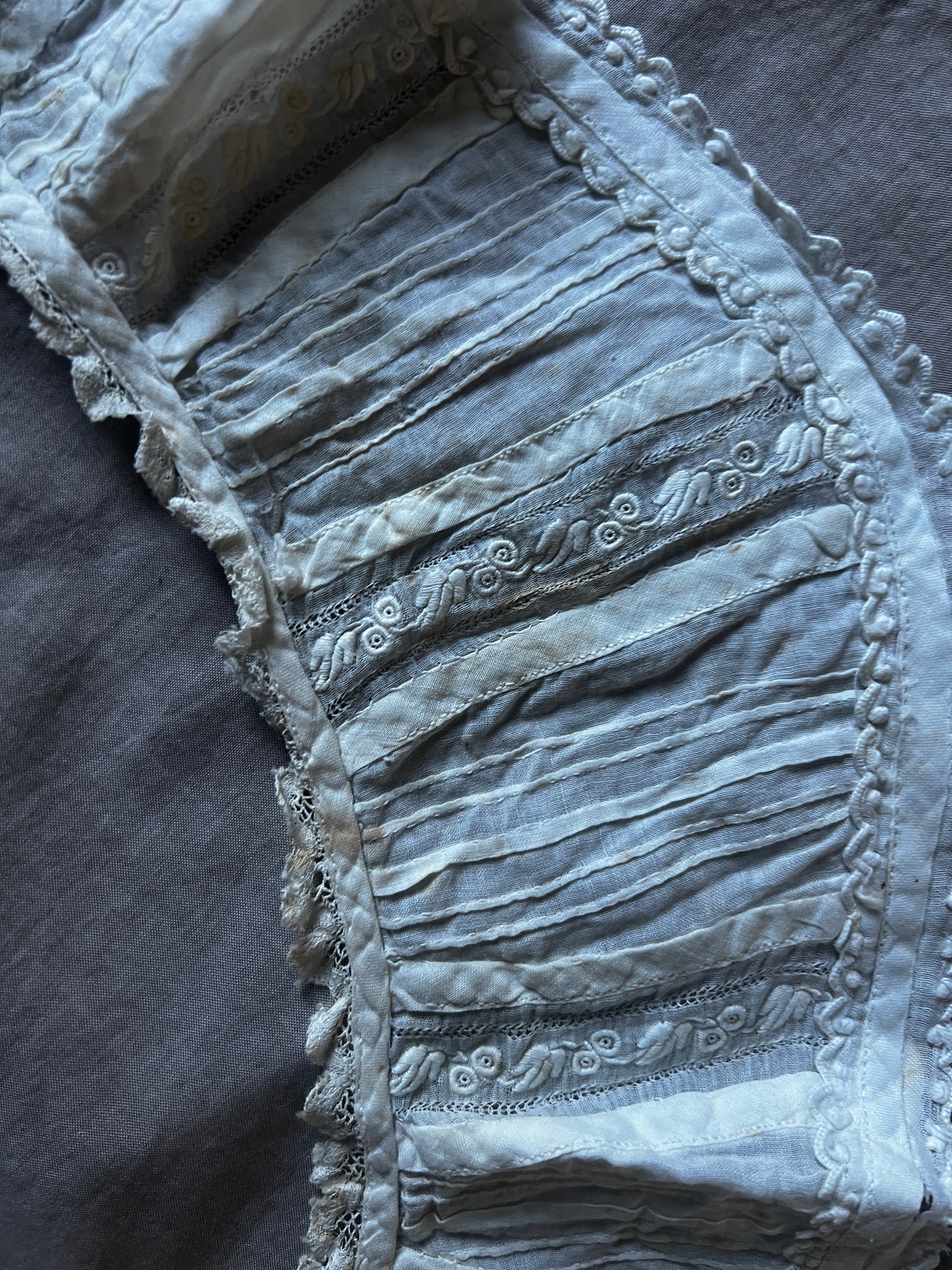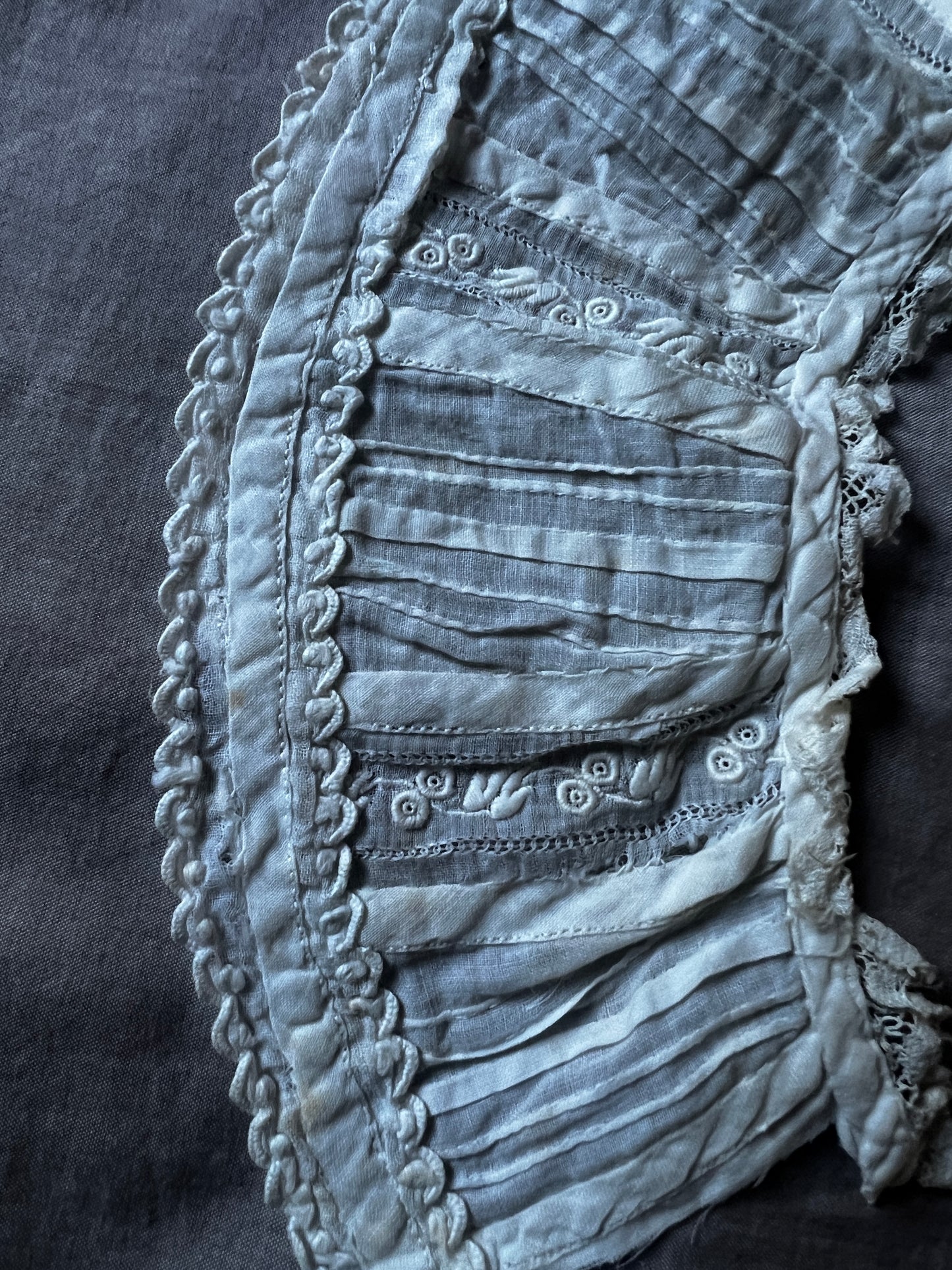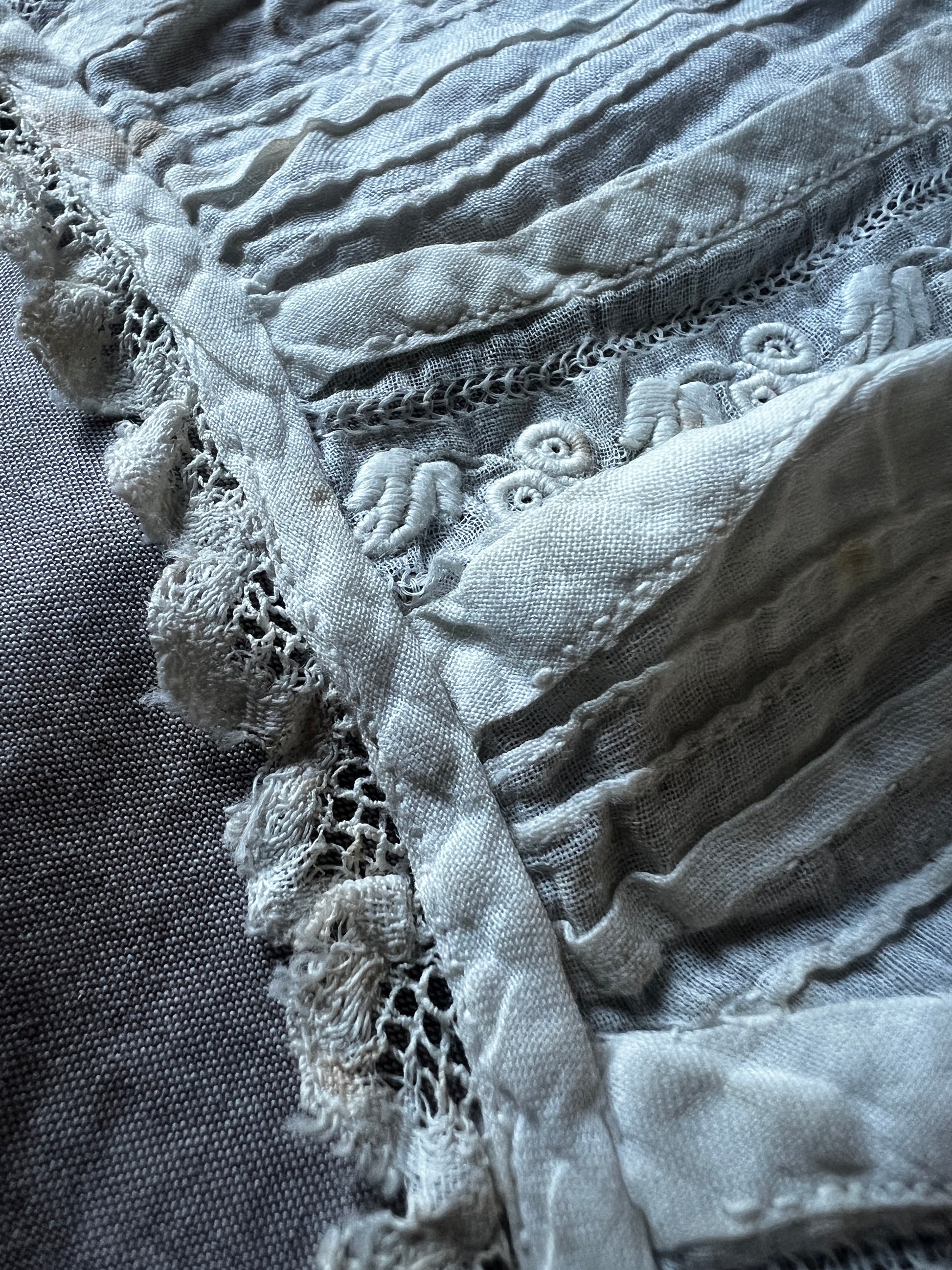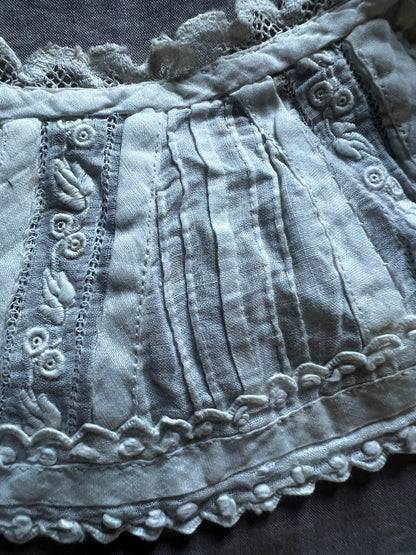 愛らしい刺繍とレースが組み合わさったデザインの飾り布です