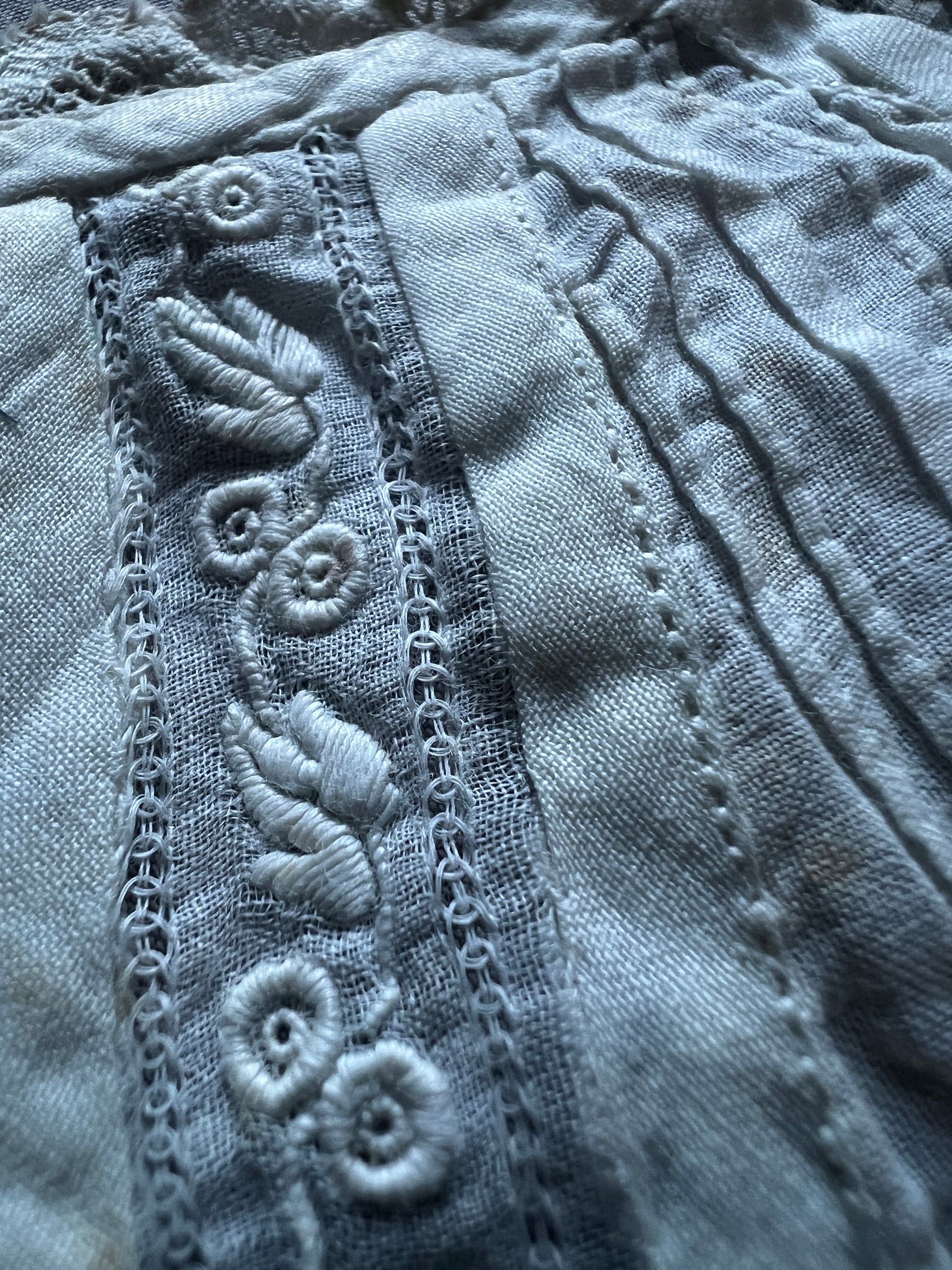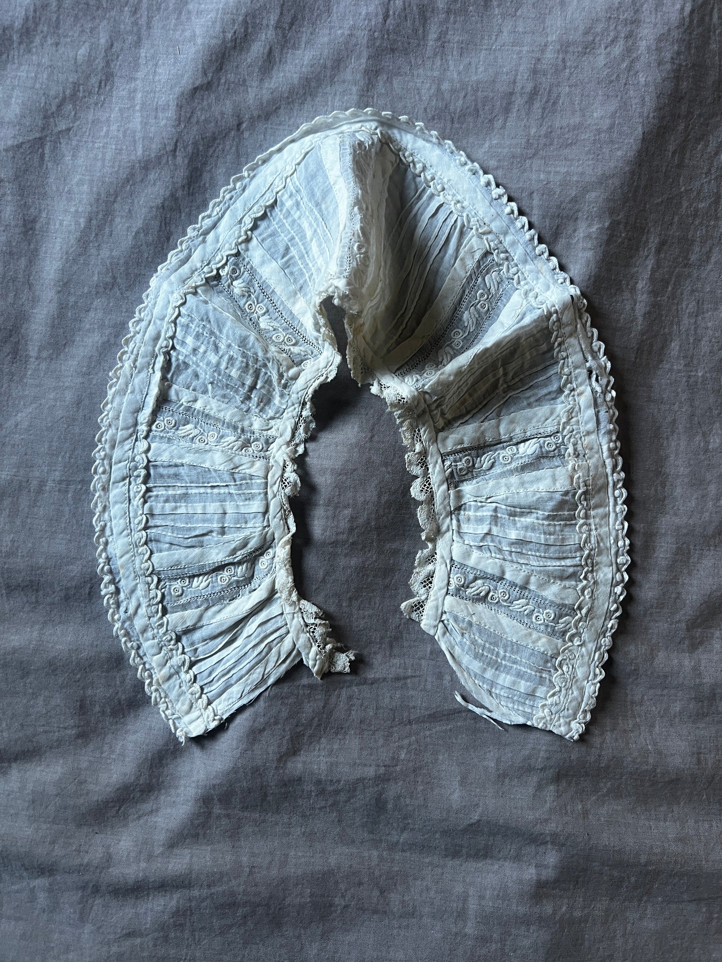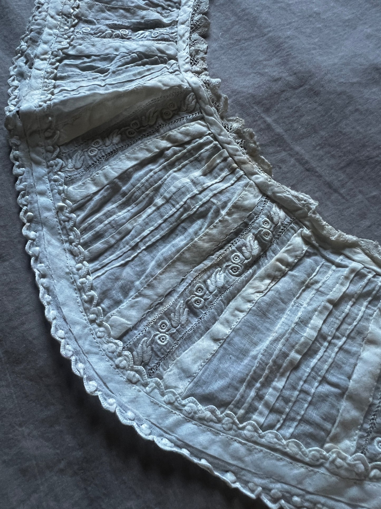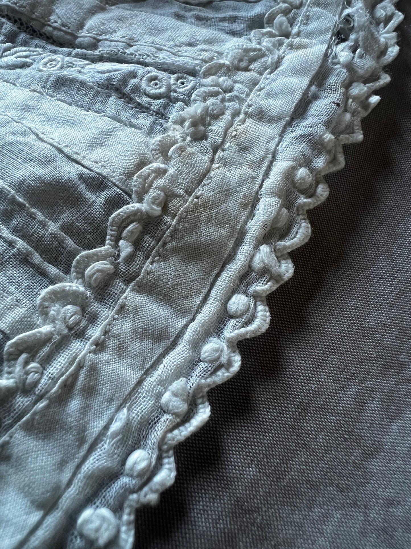 愛らしい刺繍とレースが組み合わさったデザインの飾り布です