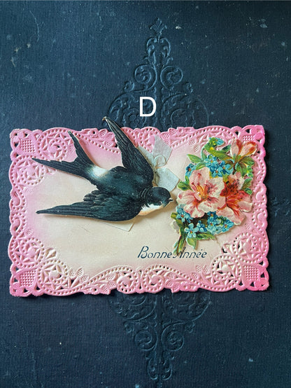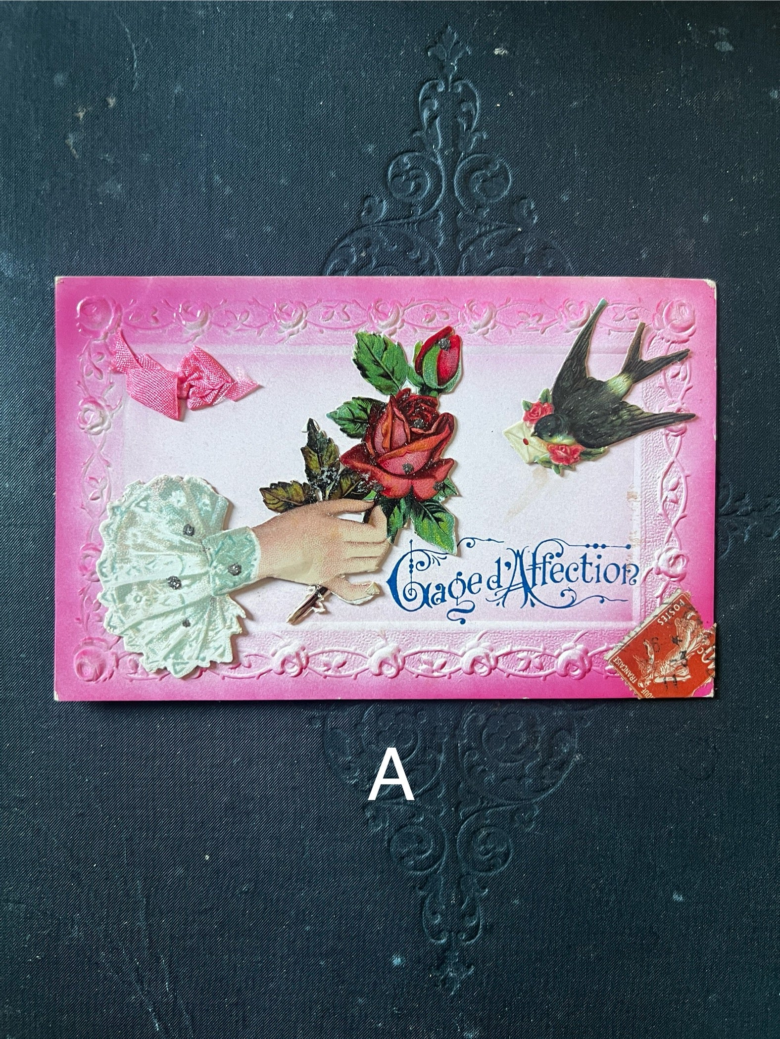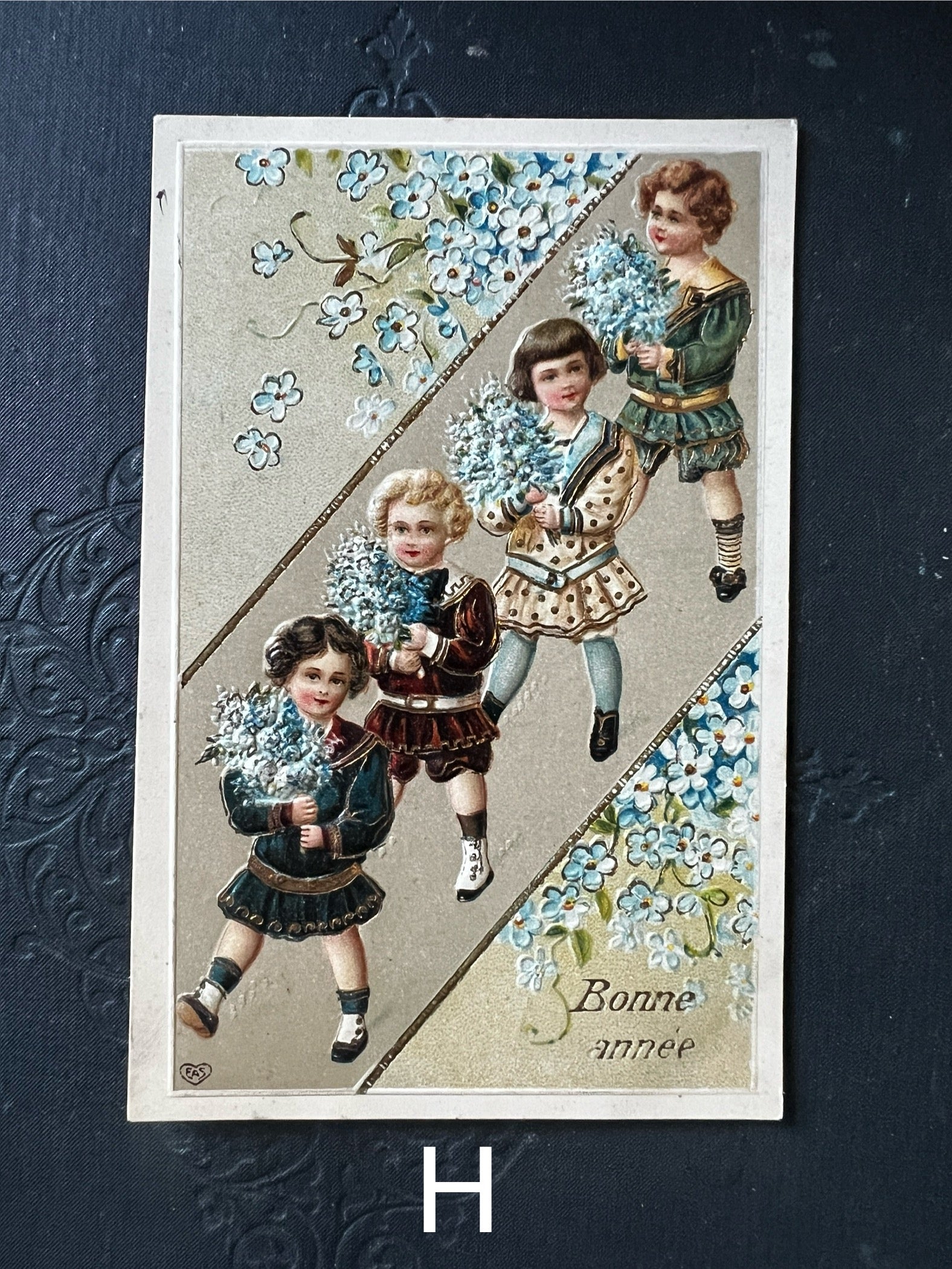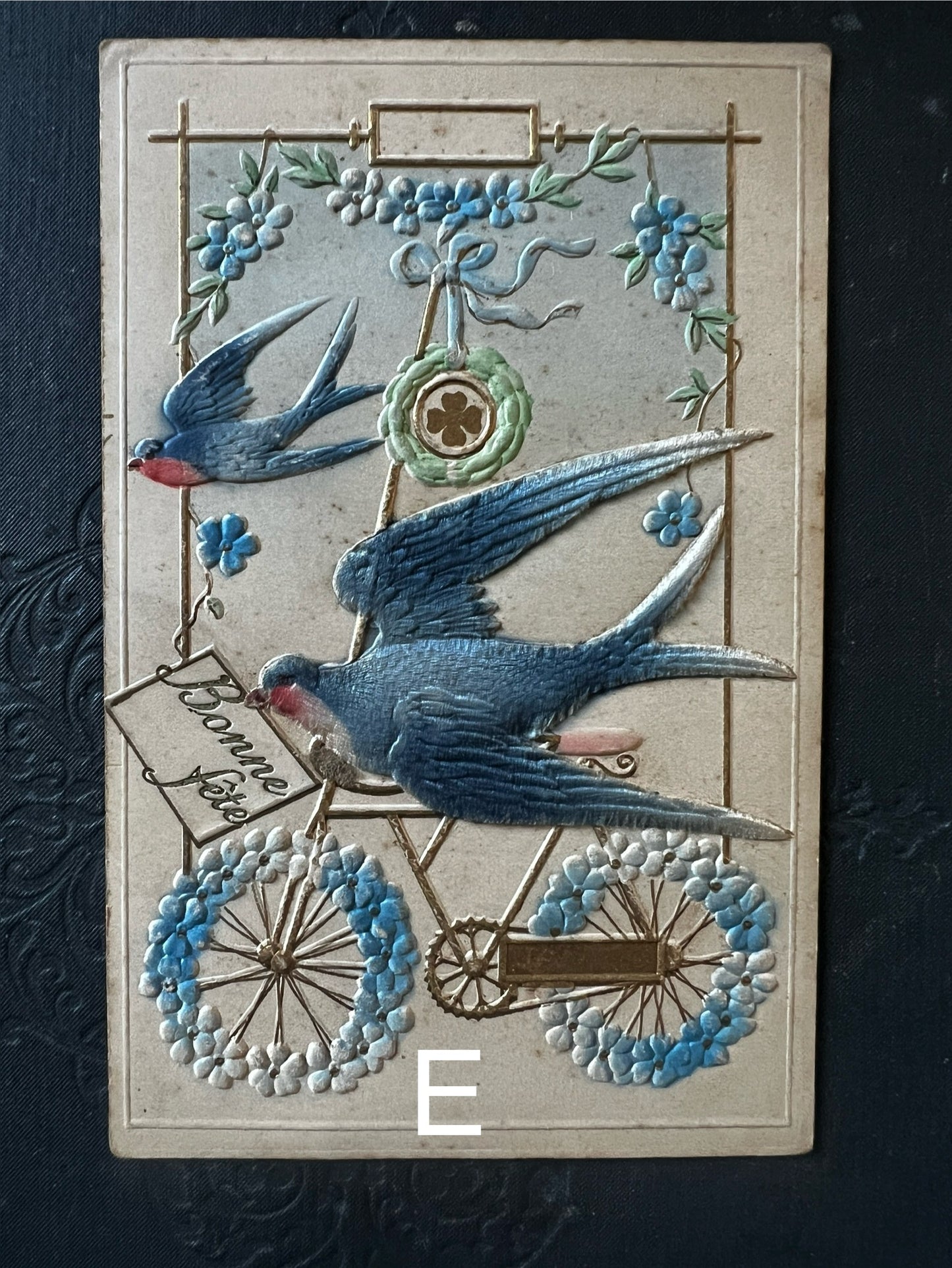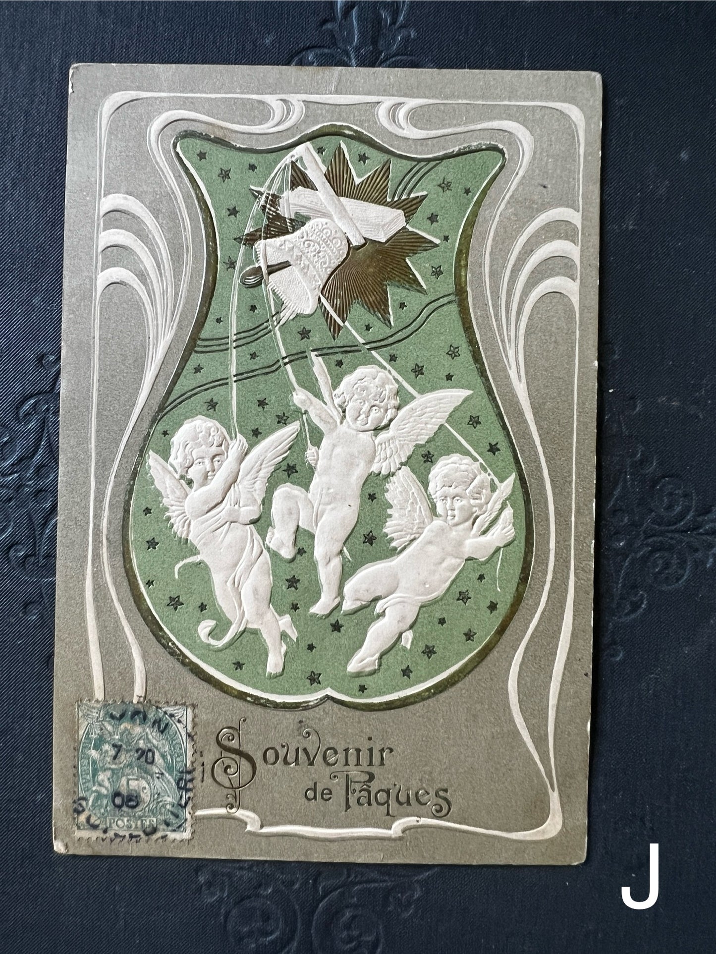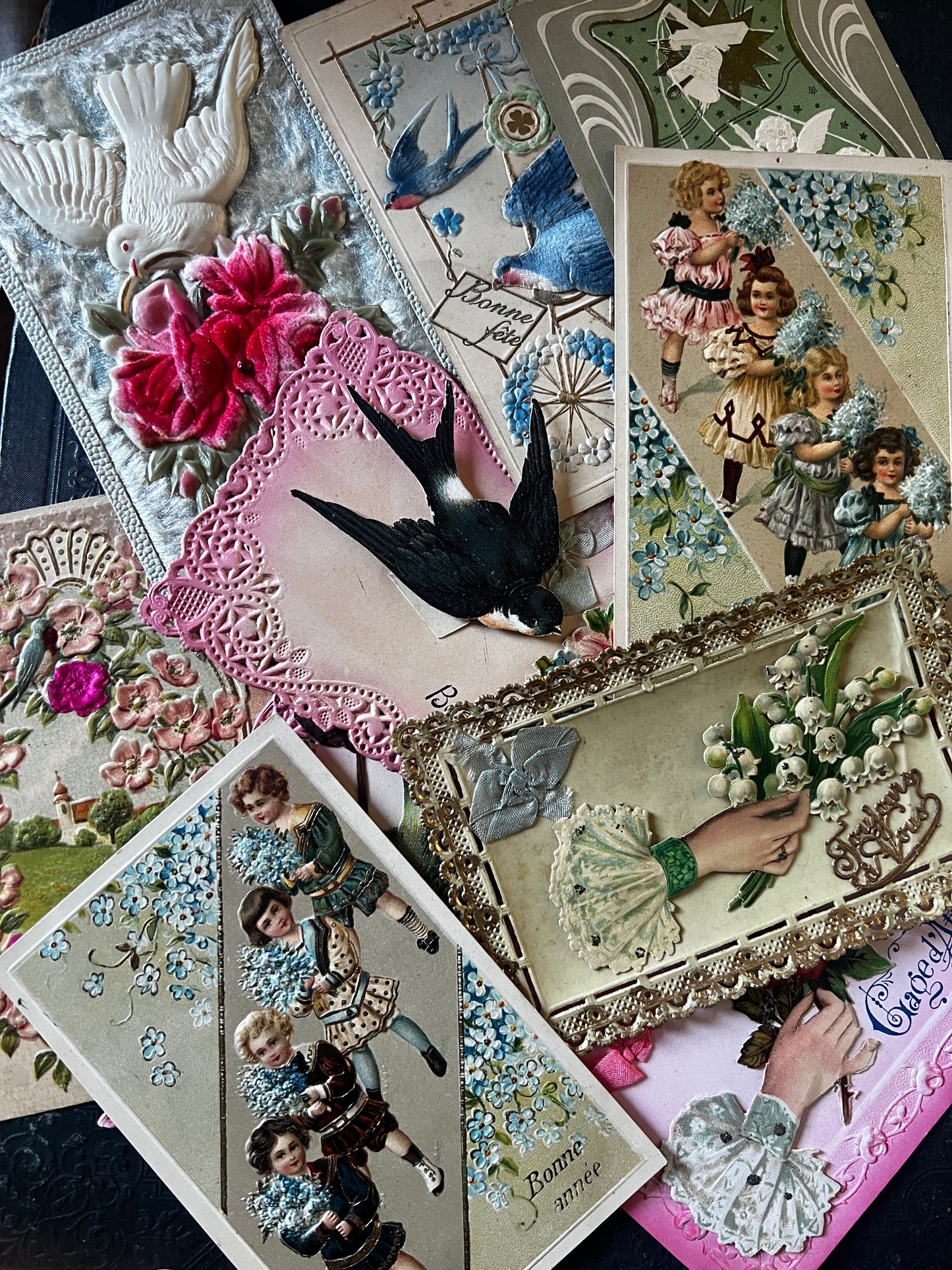 つばめや天使、すずらんや子供たちなど愛らしいデザインのポストカードを集めました