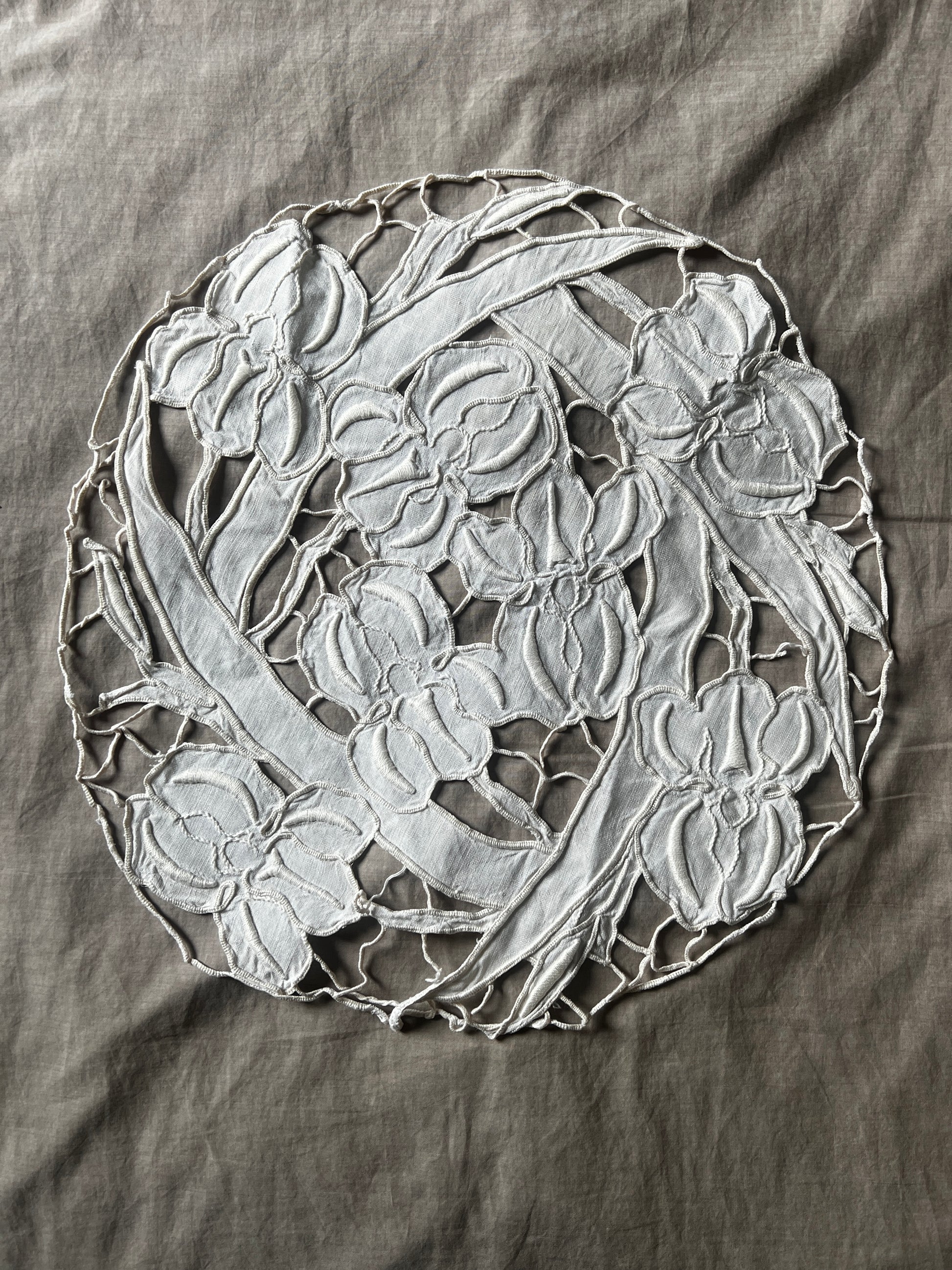カットワーク刺繍円形クロス