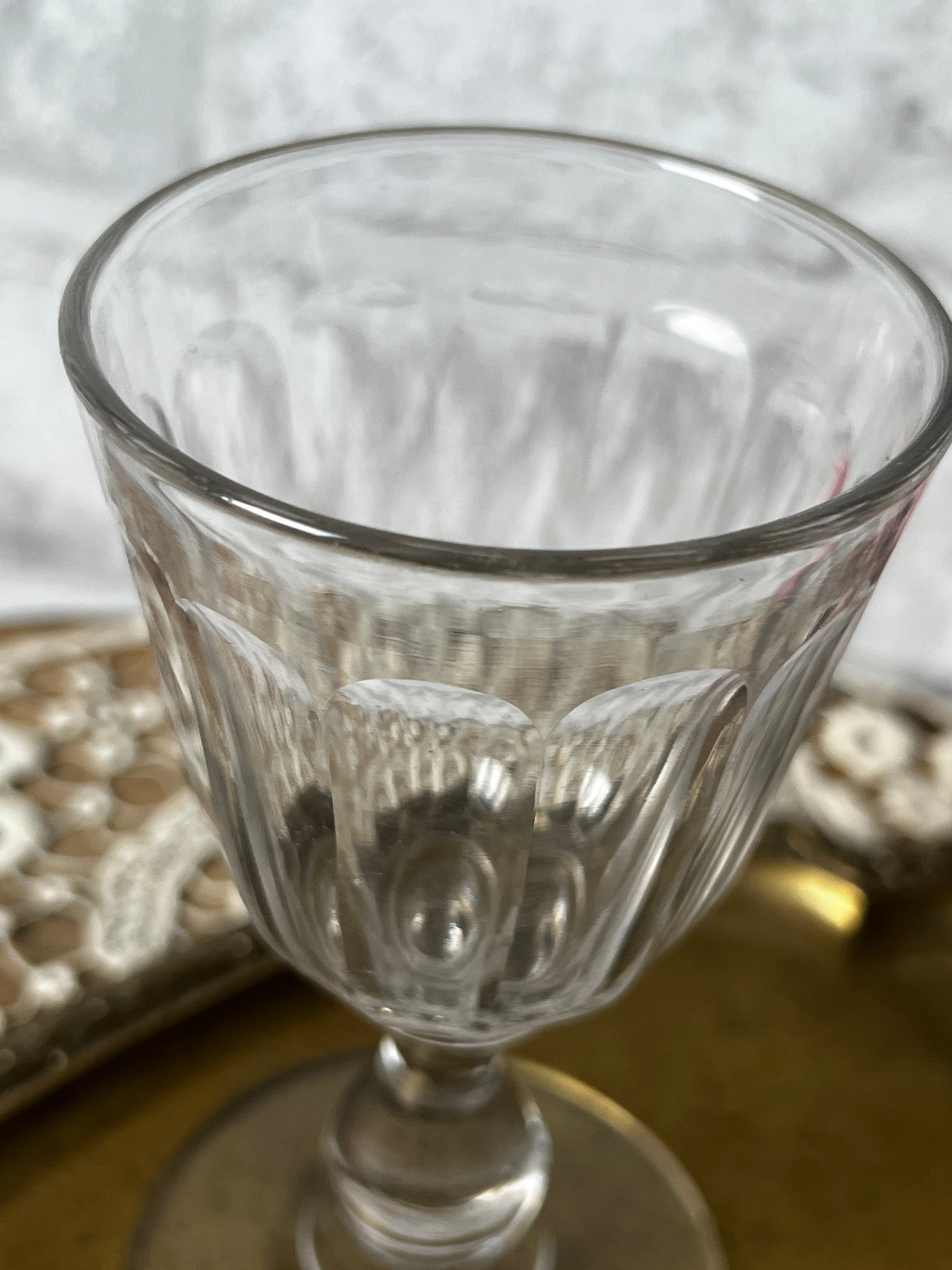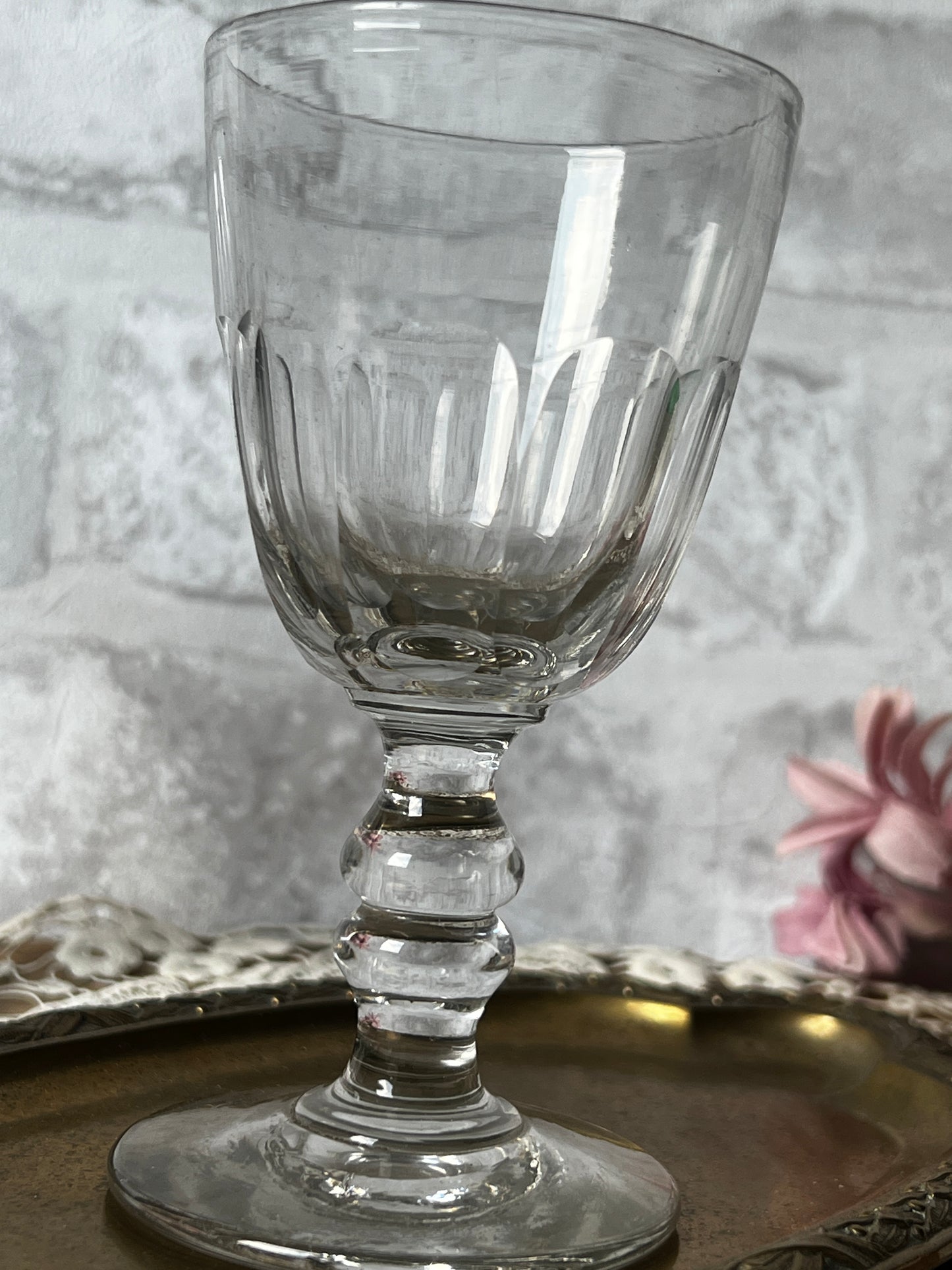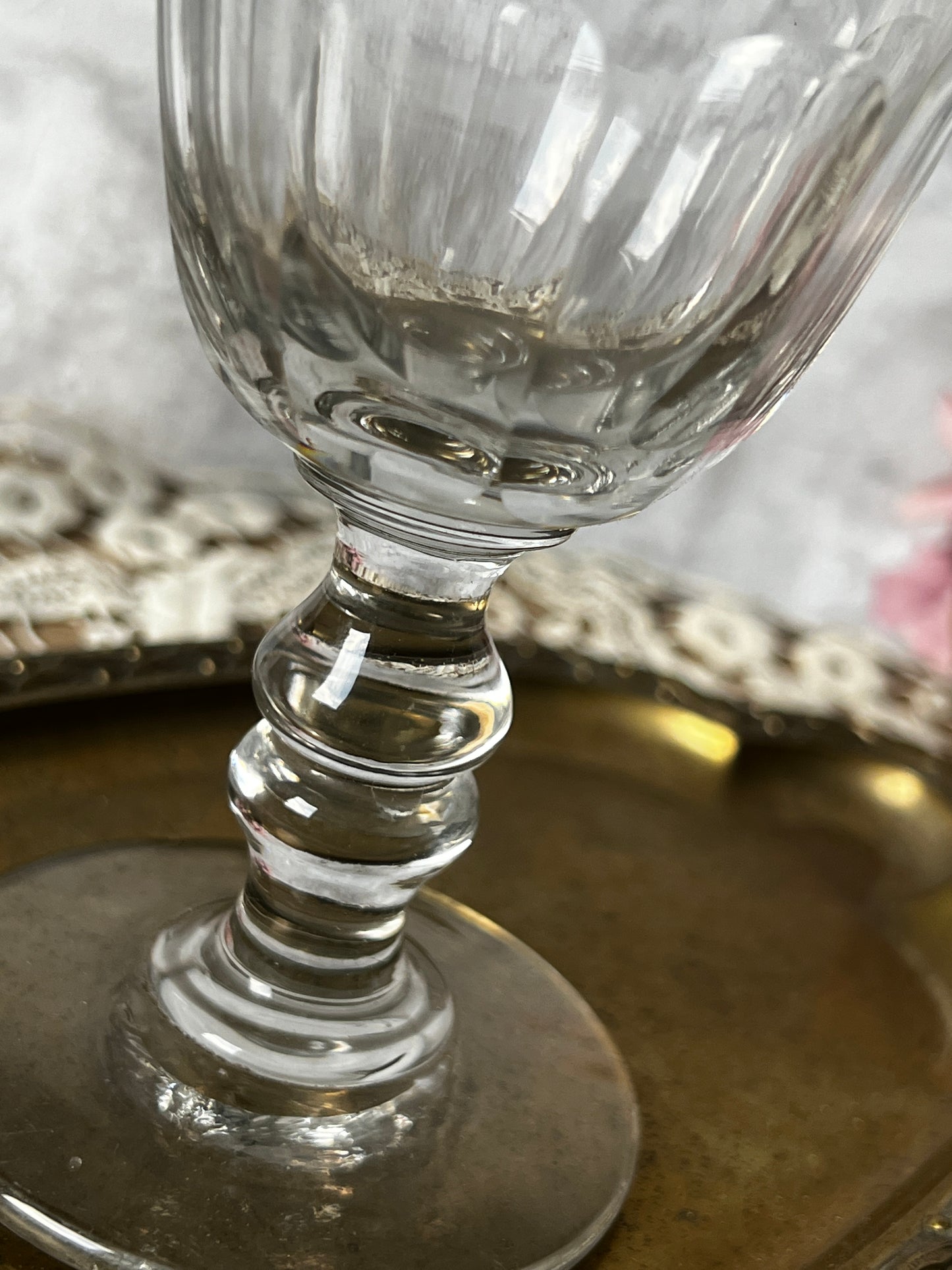 光を受けてきらめくカットの美しさと、ふとした気泡や小さなキズまでもが、このグラスたちの時間を物語ってくれます