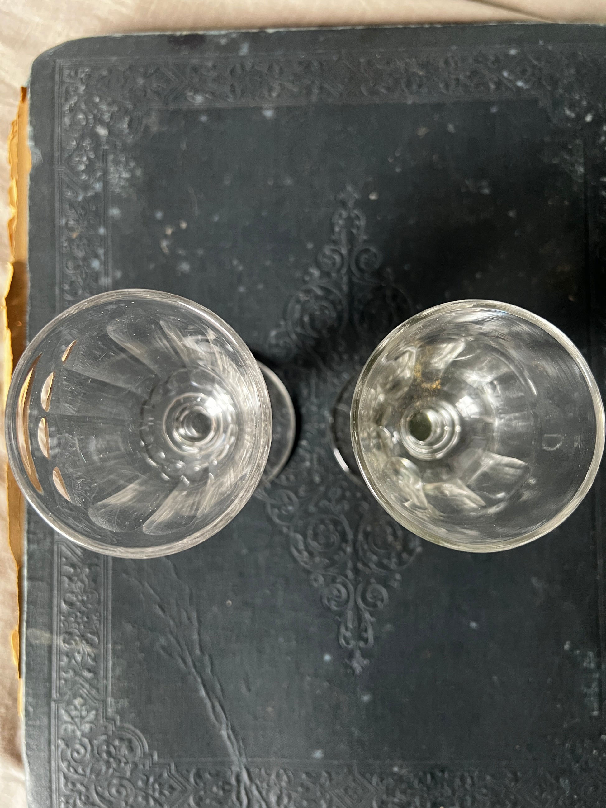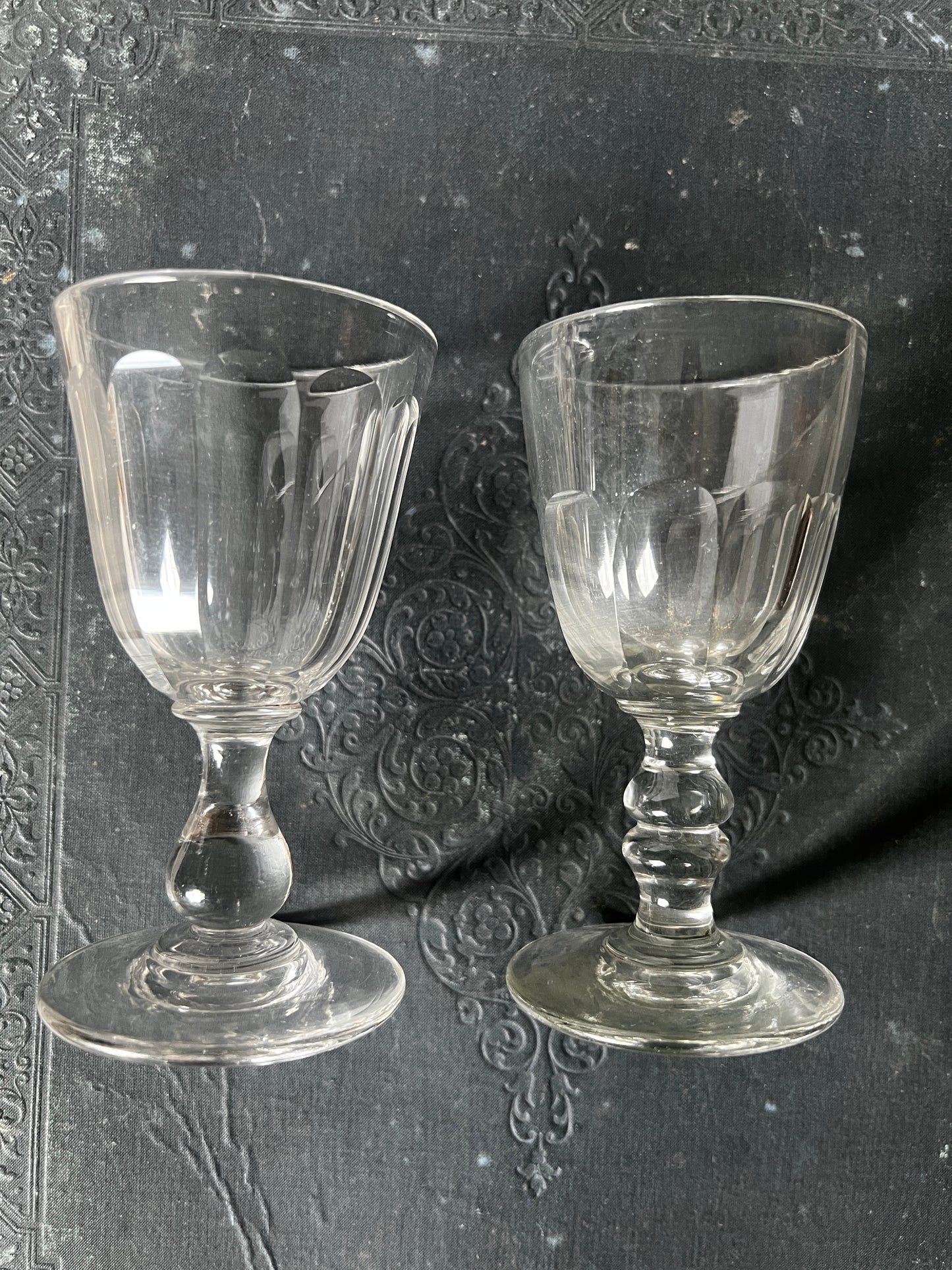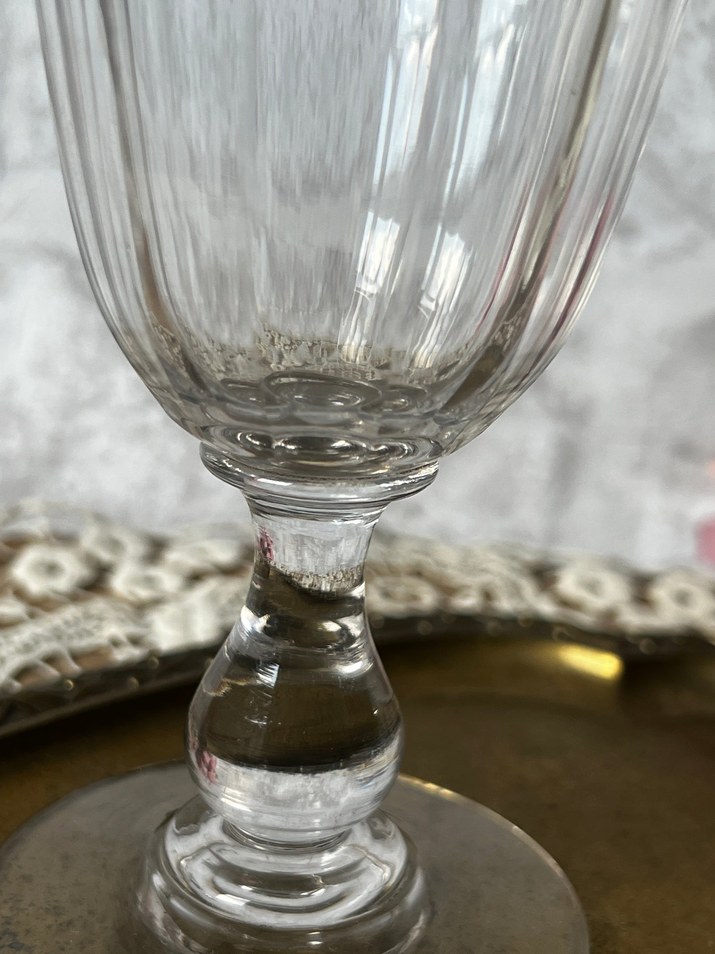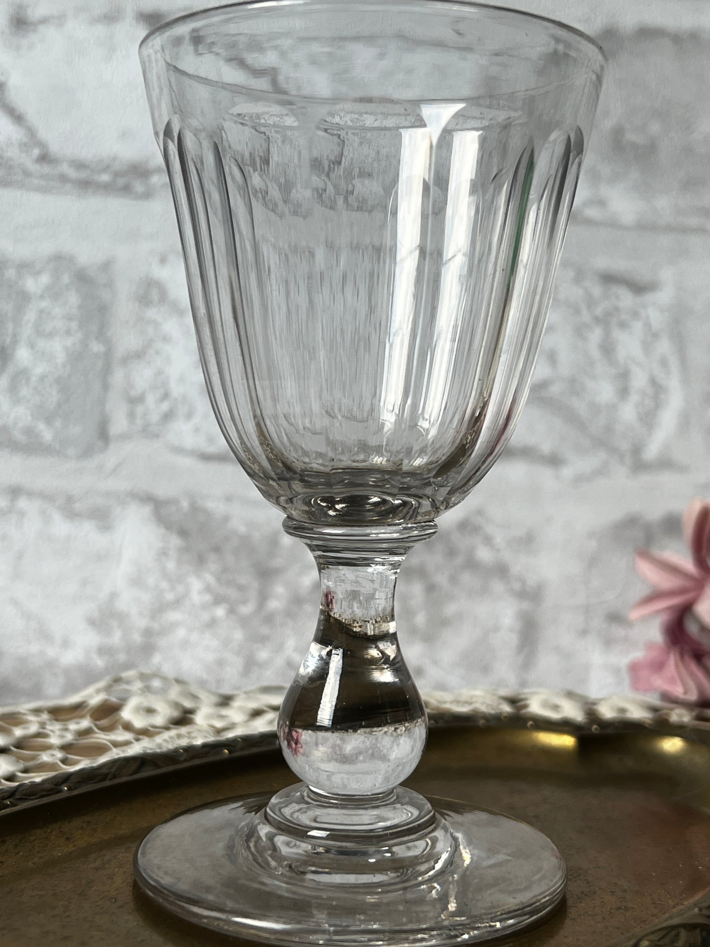 光を受けてきらめくカットの美しさと、ふとした気泡や小さなキズまでもが、このグラスたちの時間を物語ってくれます