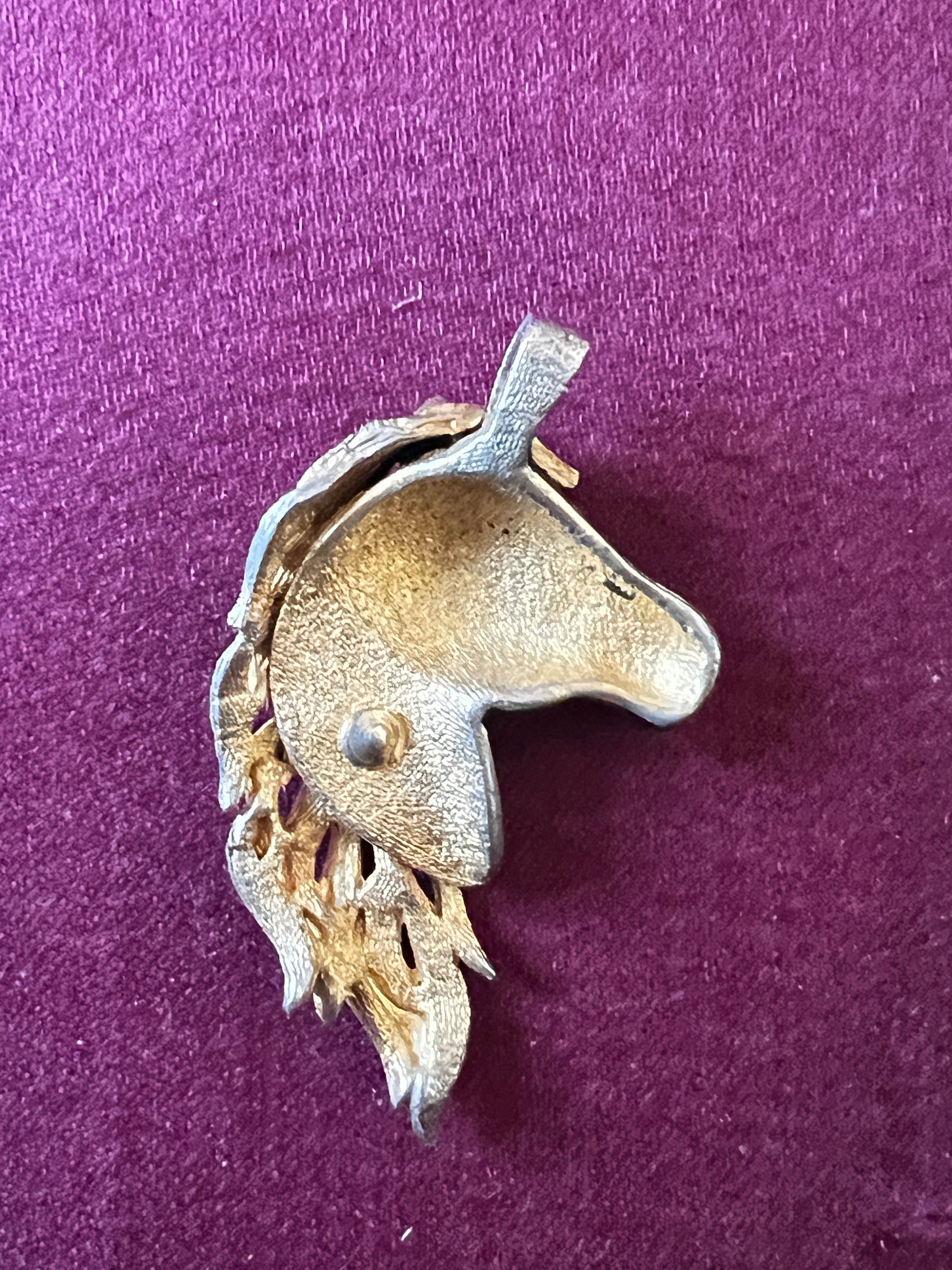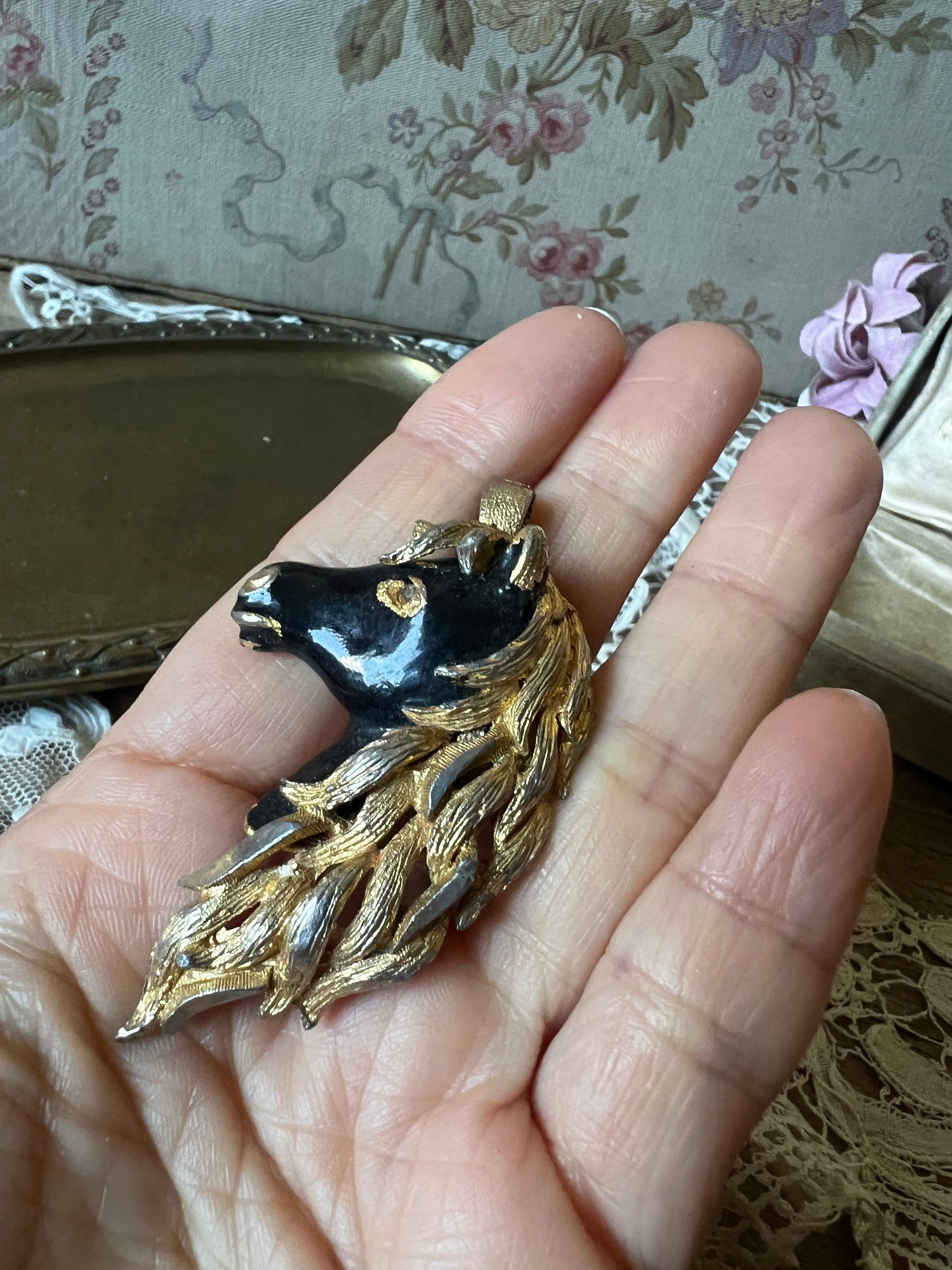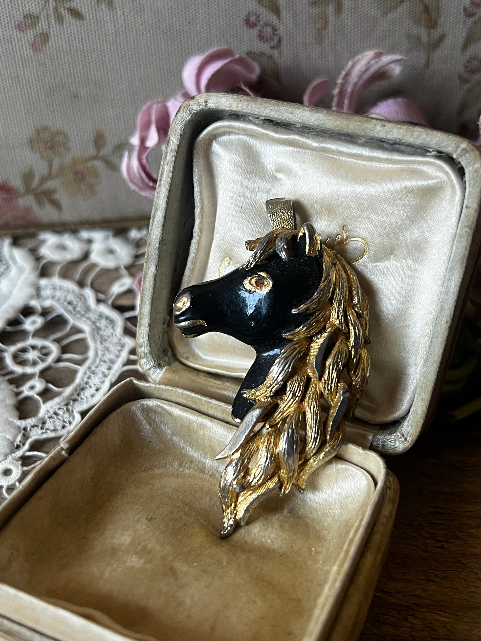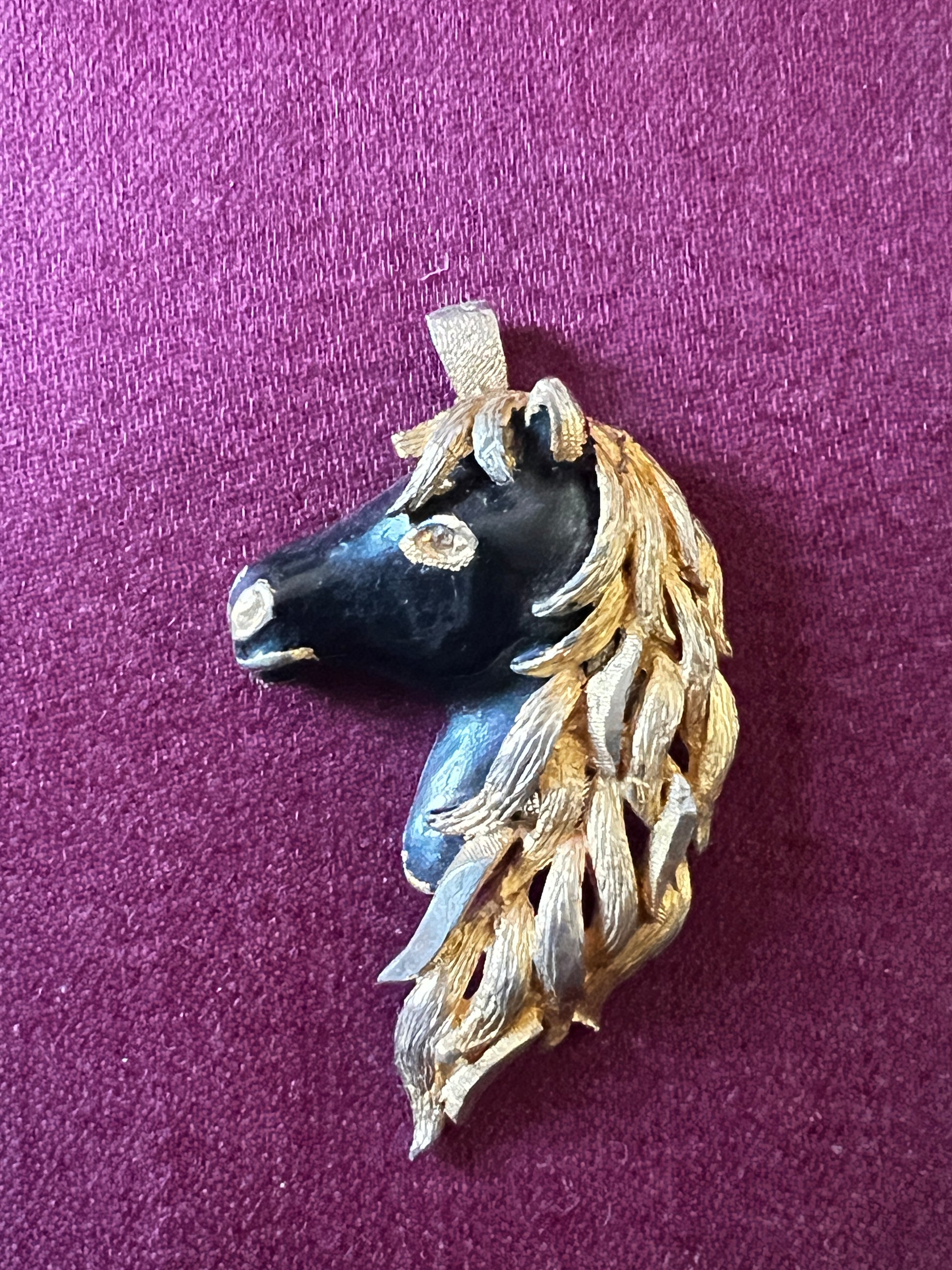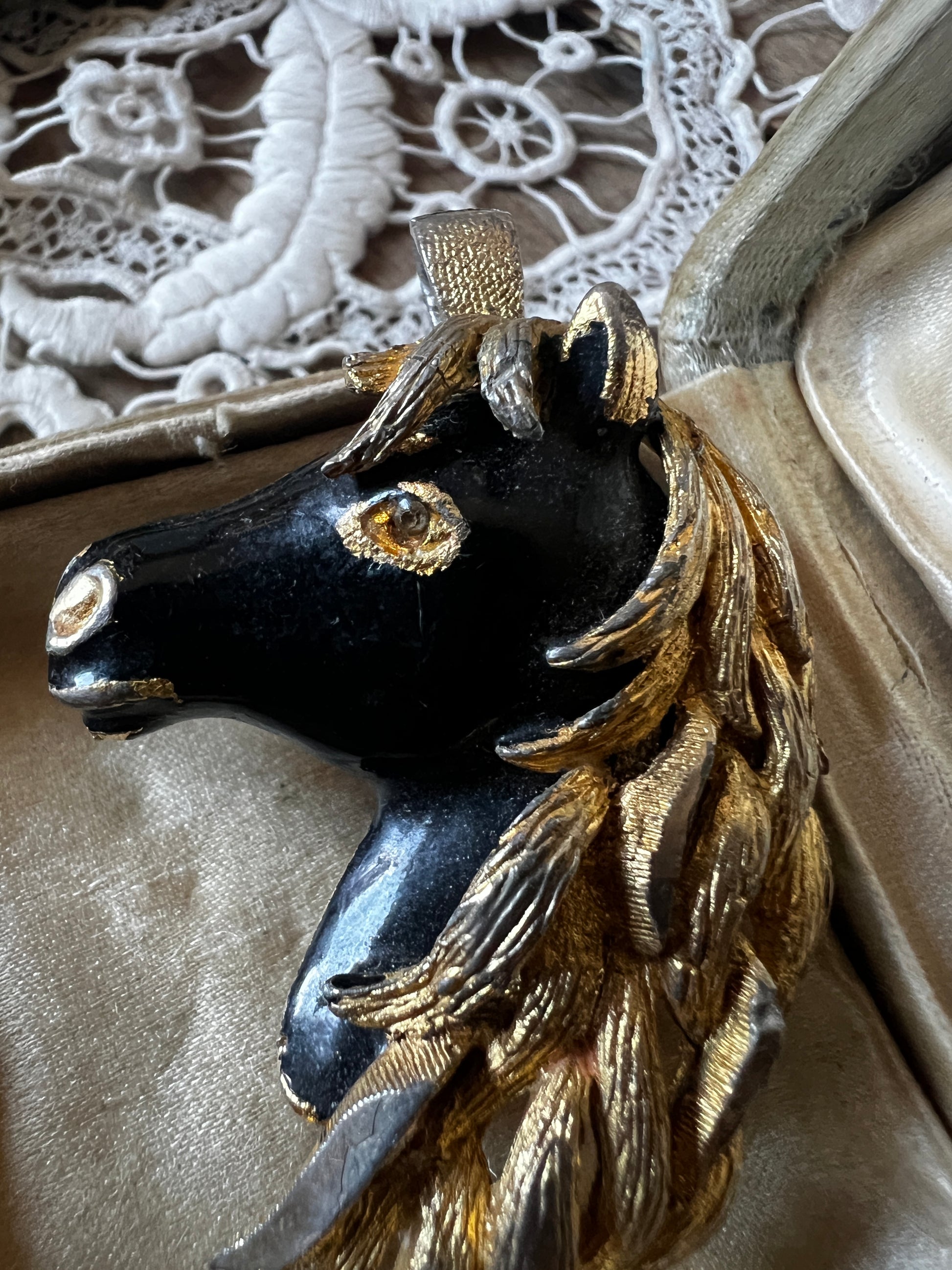 金色のたてがみが美しく際立つ黒馬をモチーフにしたペンダントトップです