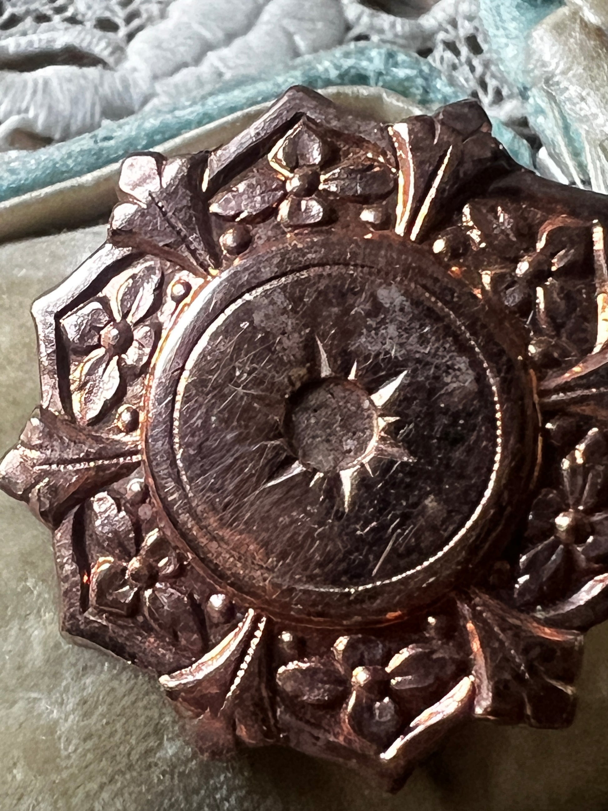 エレガントな細工が美しい、19世紀のブロンズ製アンティークブローチです