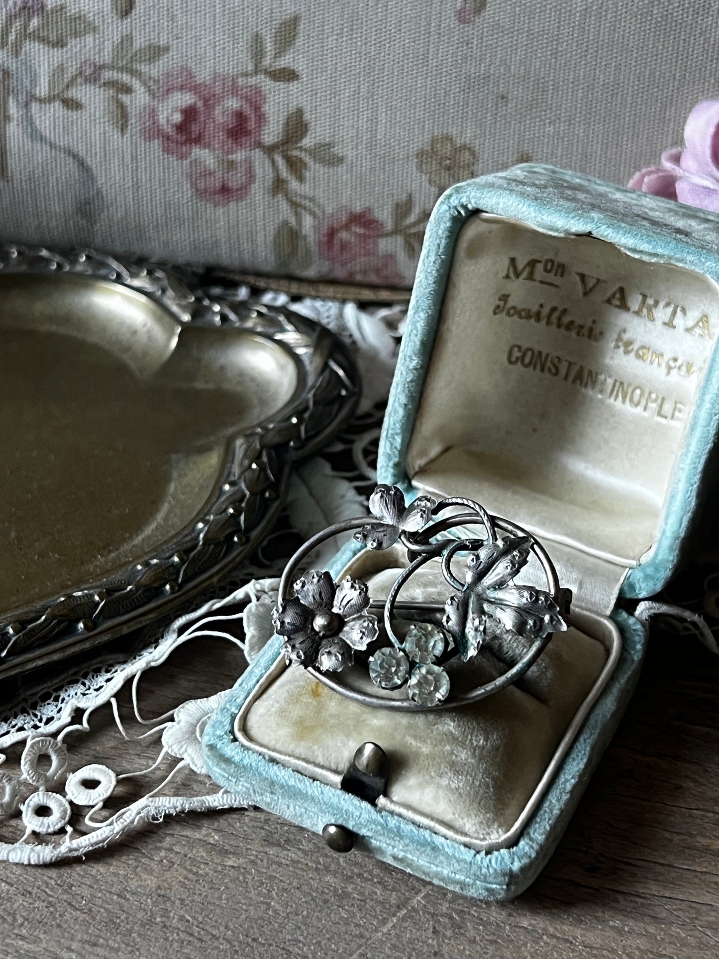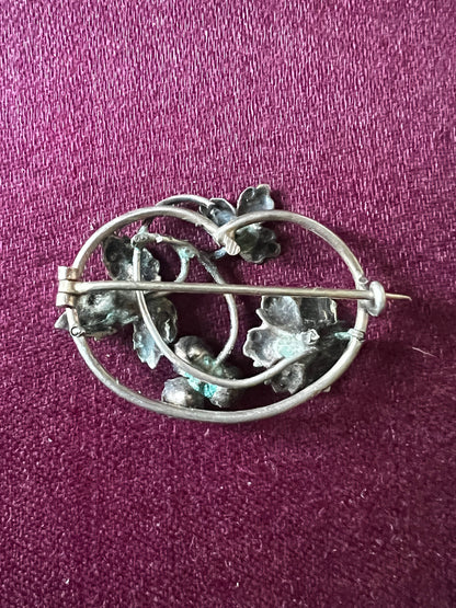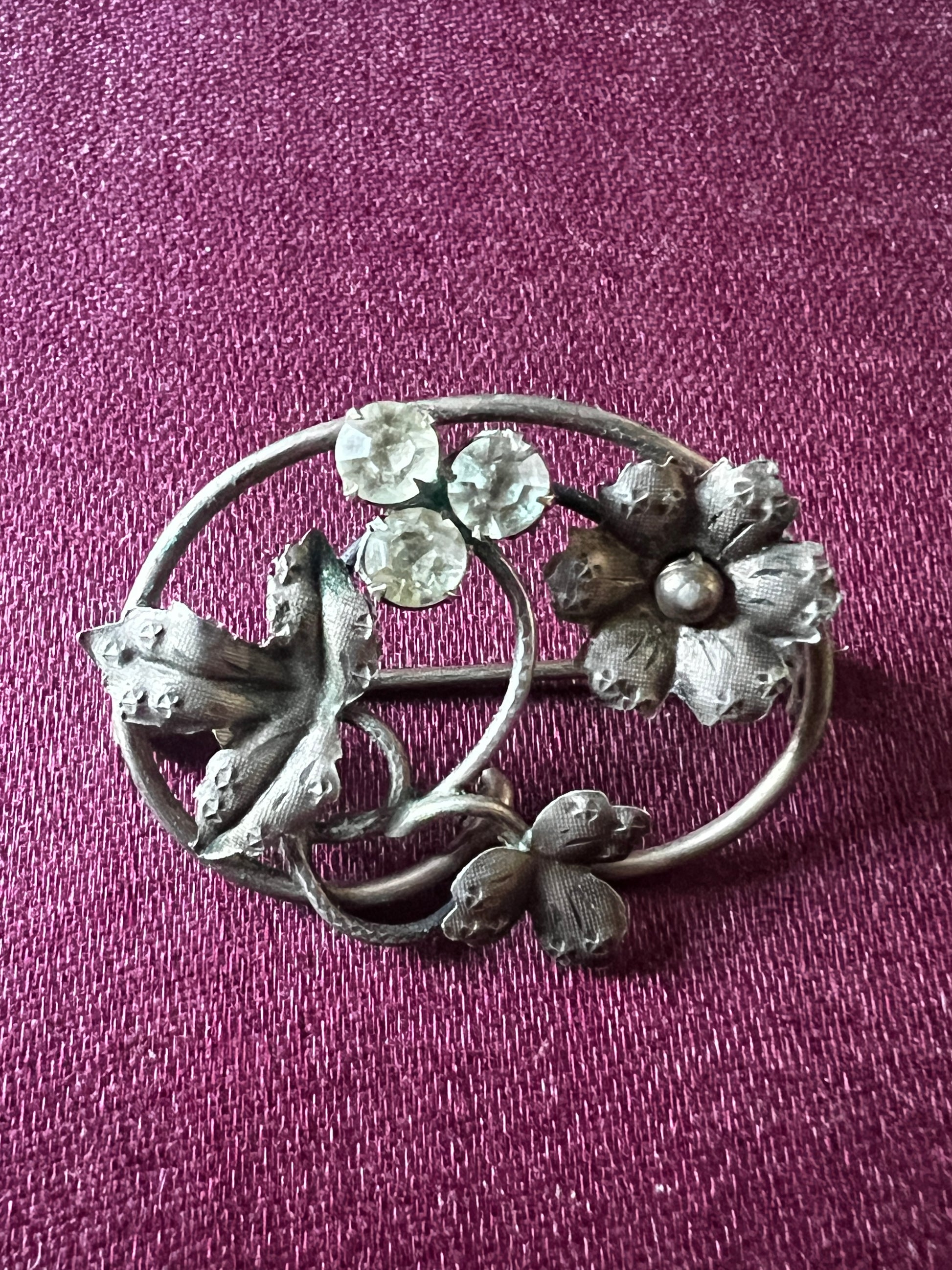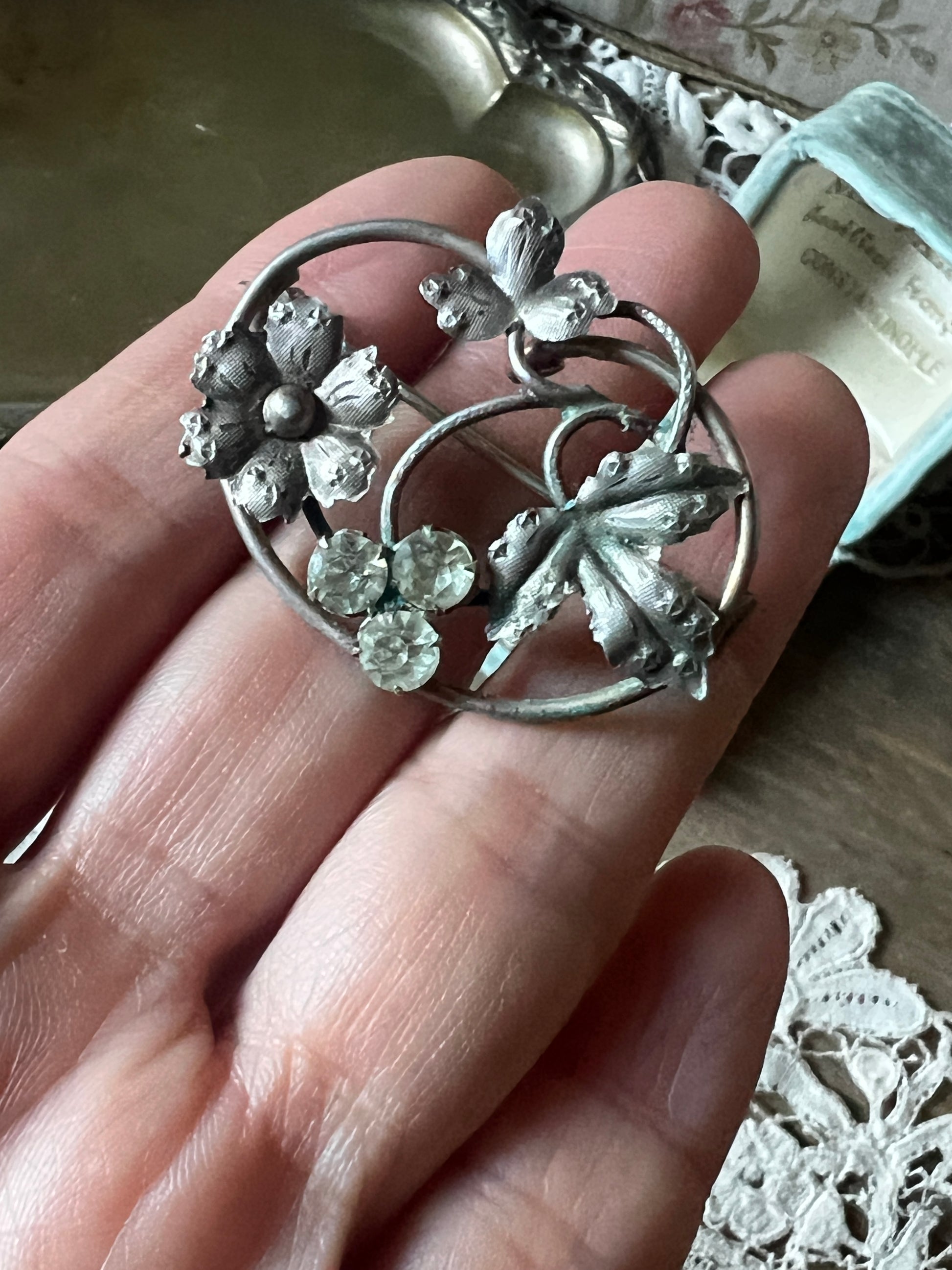 花とストーンを組み合わせたデザインが印象的な、19世紀のアンティークブローチです