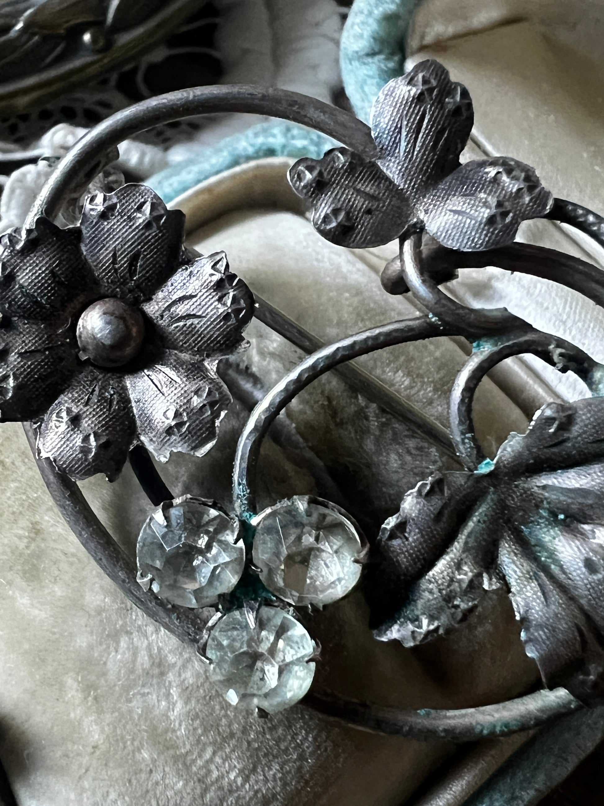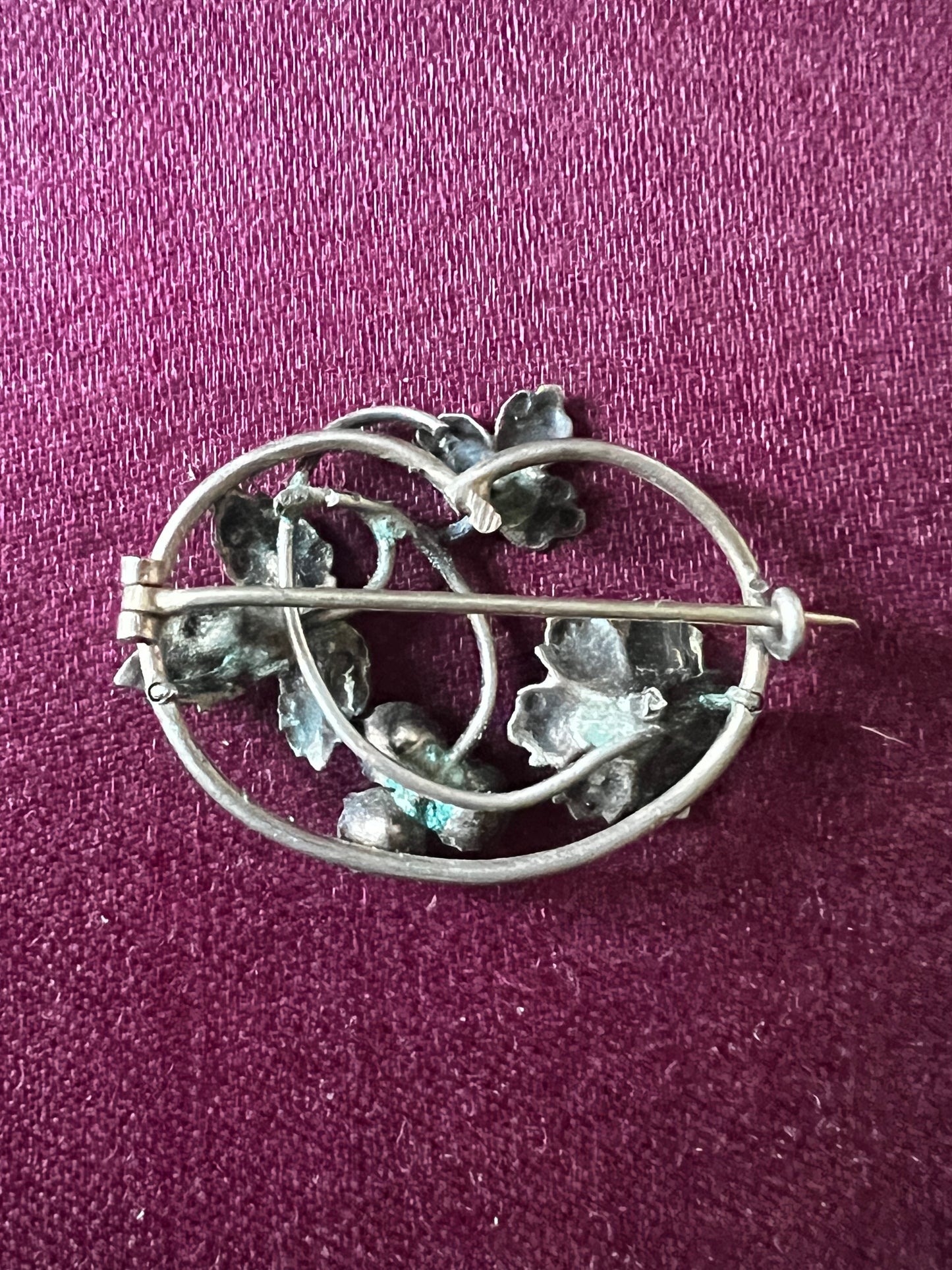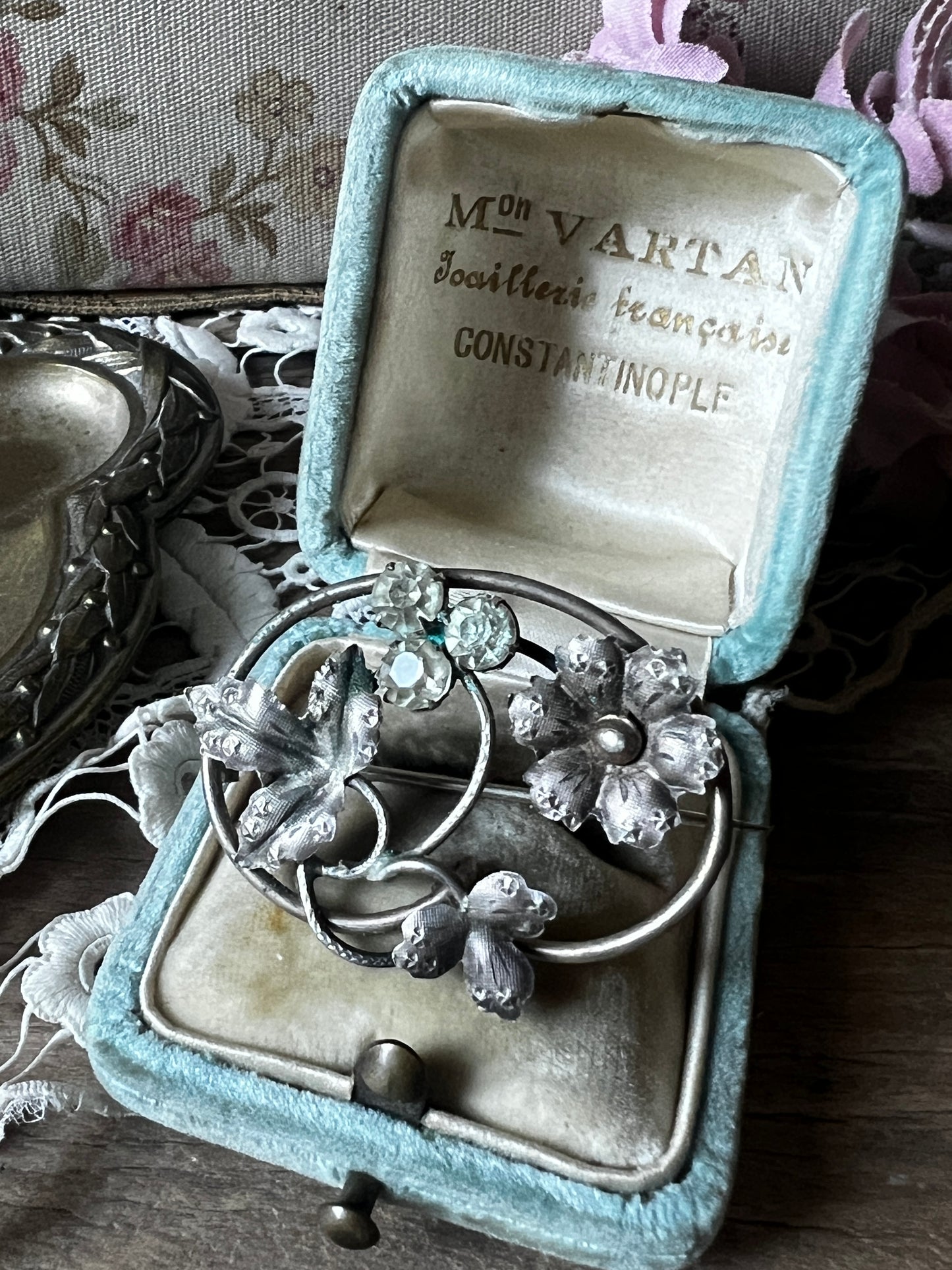 花とストーンを組み合わせたデザインが印象的な、19世紀のアンティークブローチです