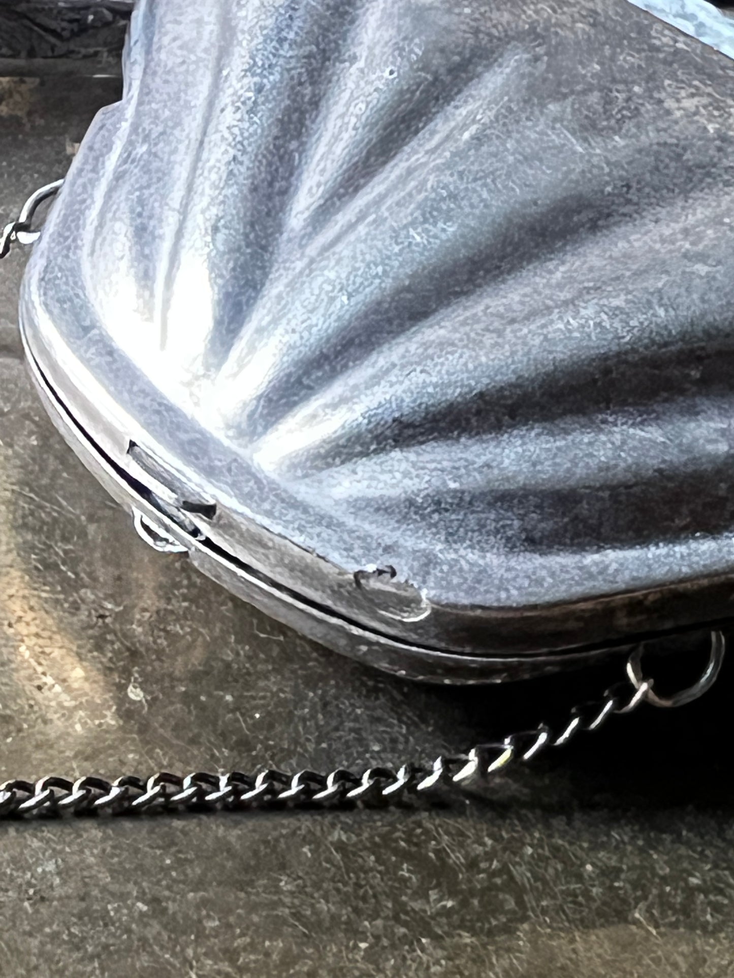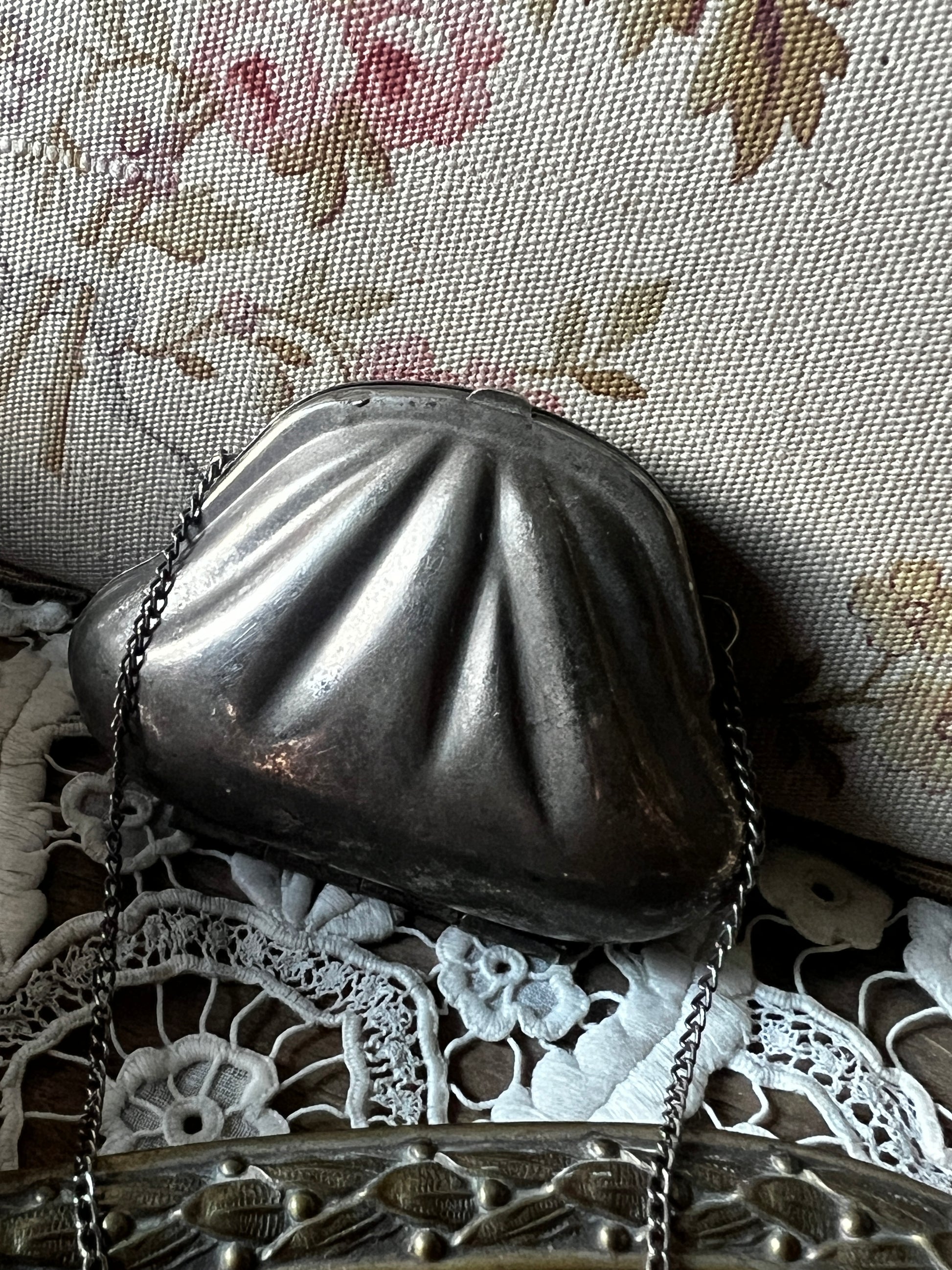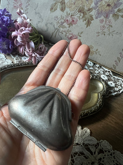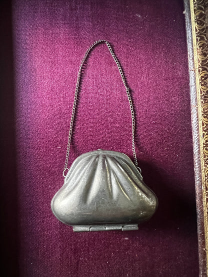 がま口のハンドバッグをかたどった純銀製の小さなケースです