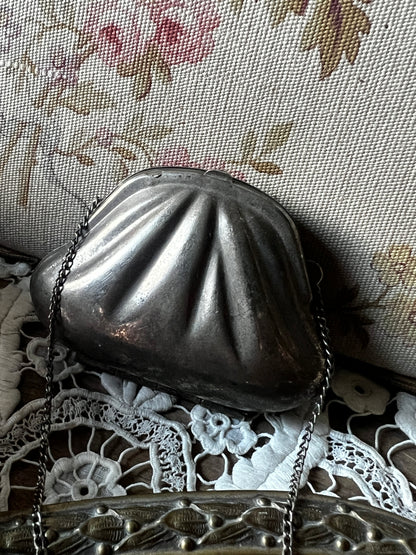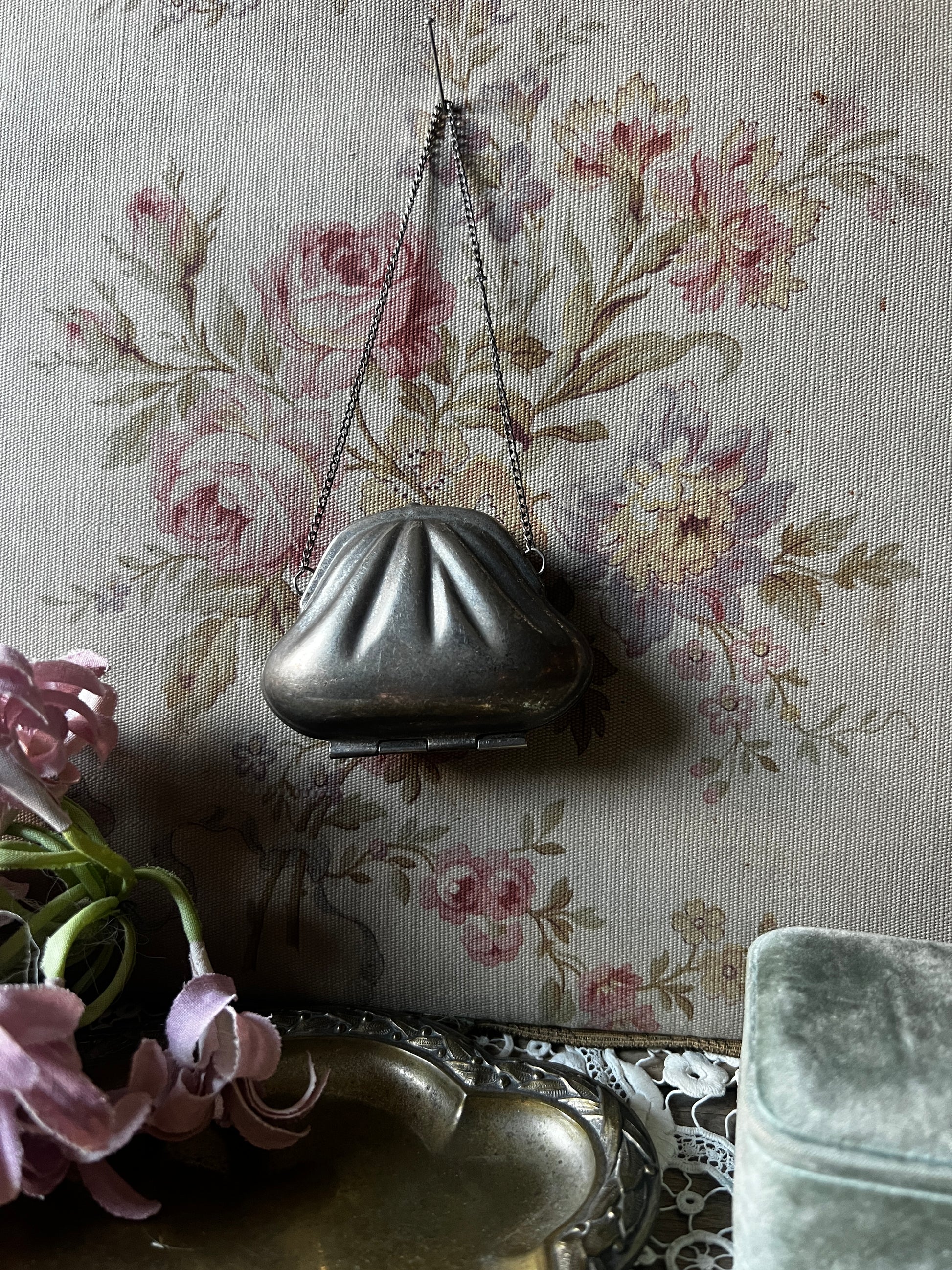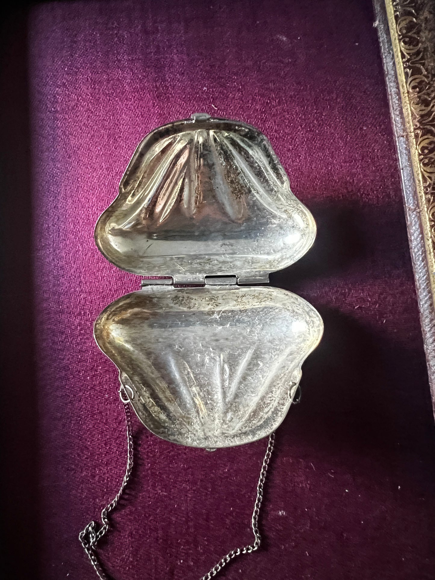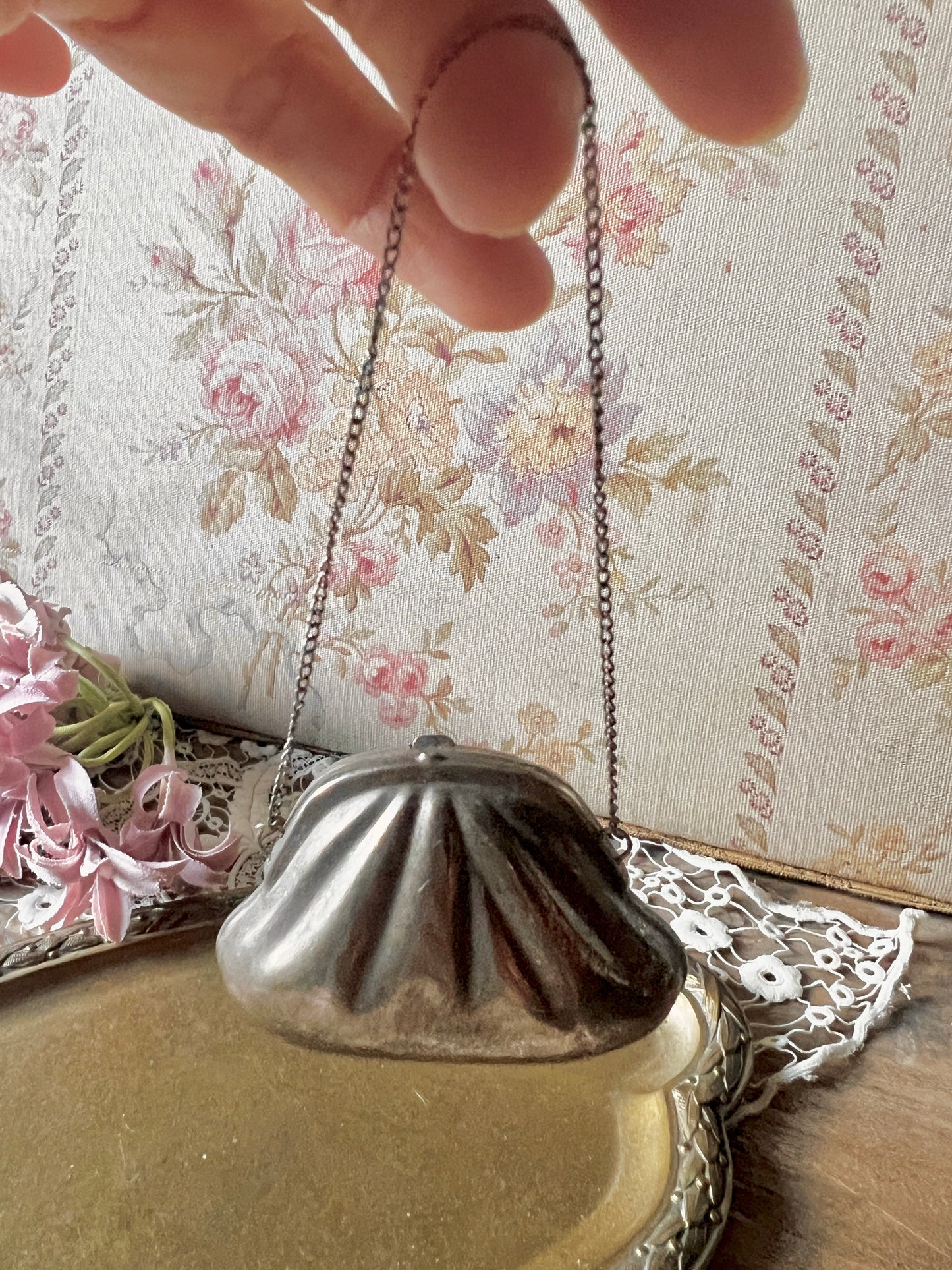 がま口のハンドバッグをかたどった純銀製の小さなケースです