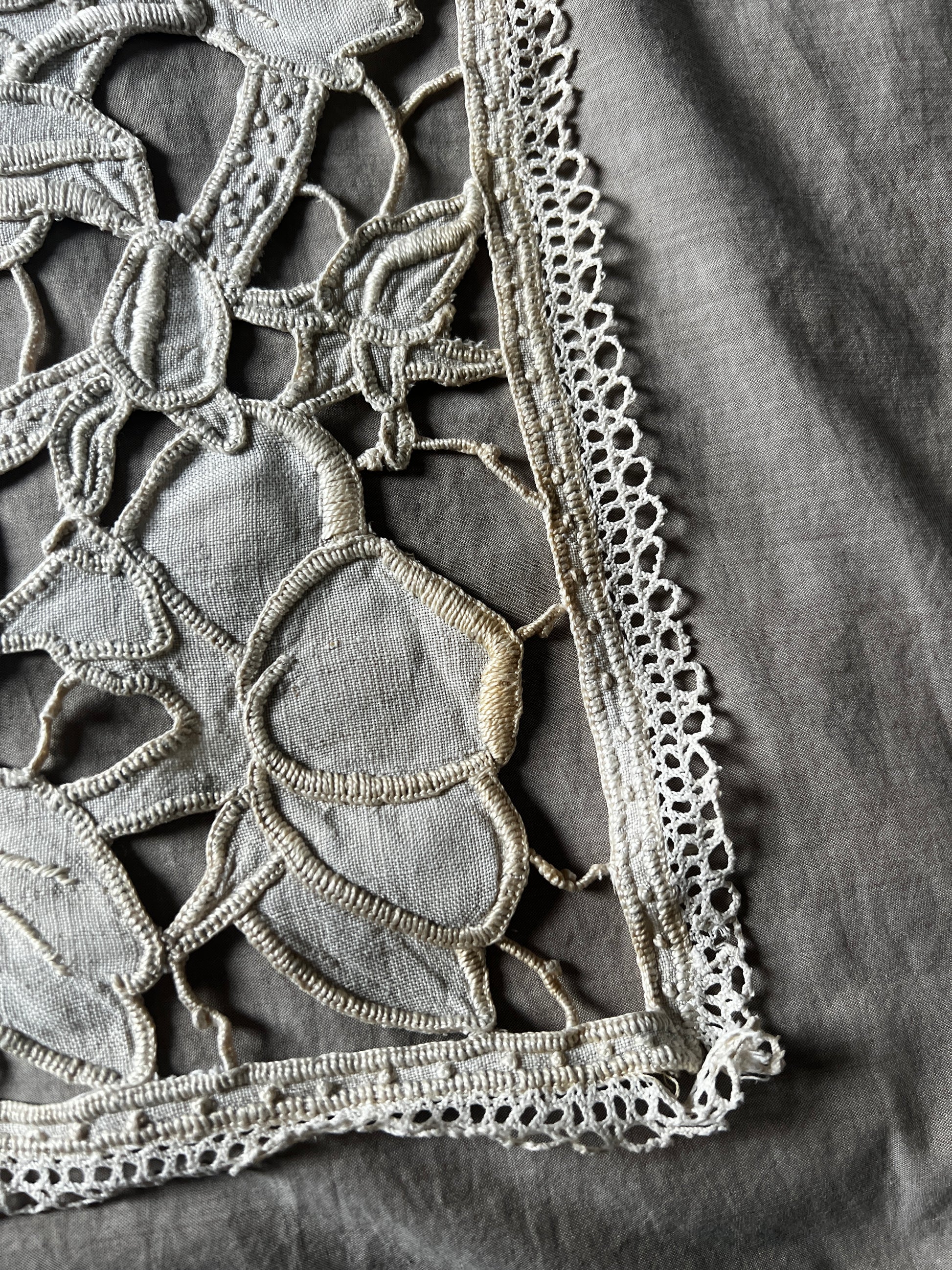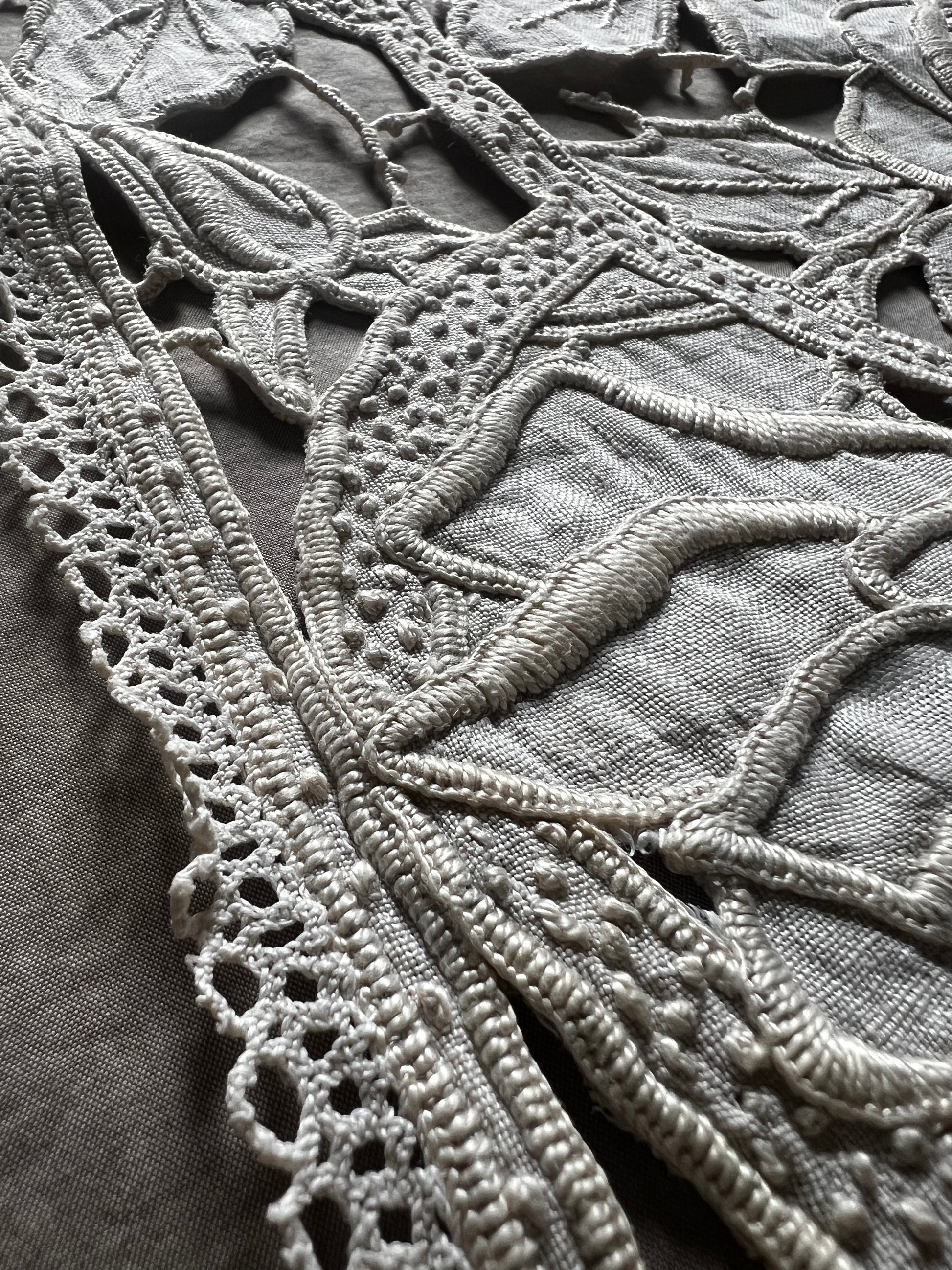 未漂白のリネン地に、たっぷりと刺繍が施された長方形のクロスです