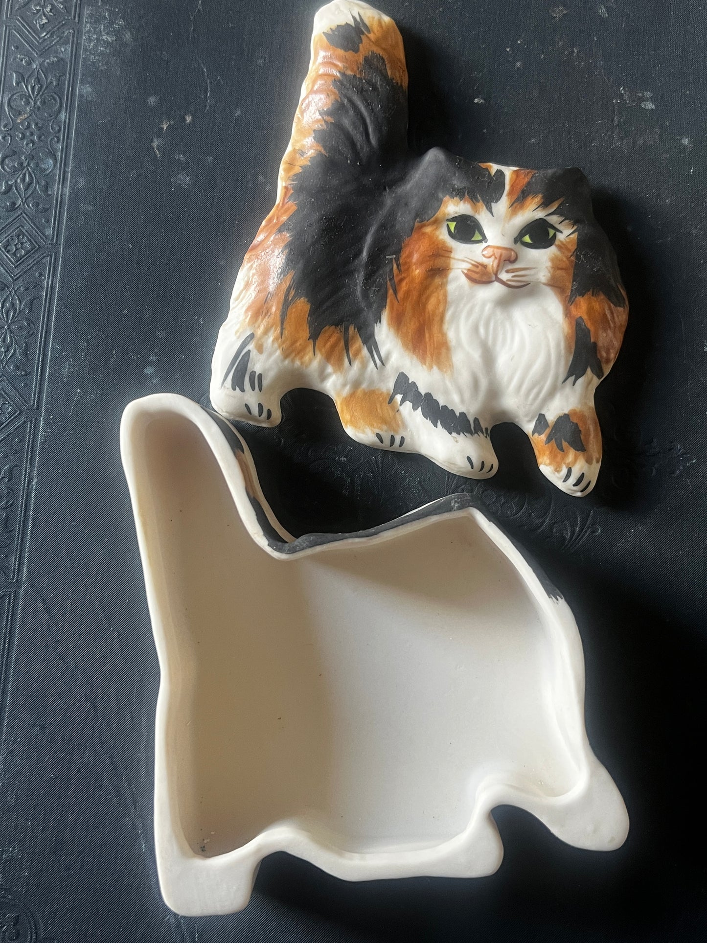ピンとしたしっぽの姿がかわいらしい猫が描かれた小箱です