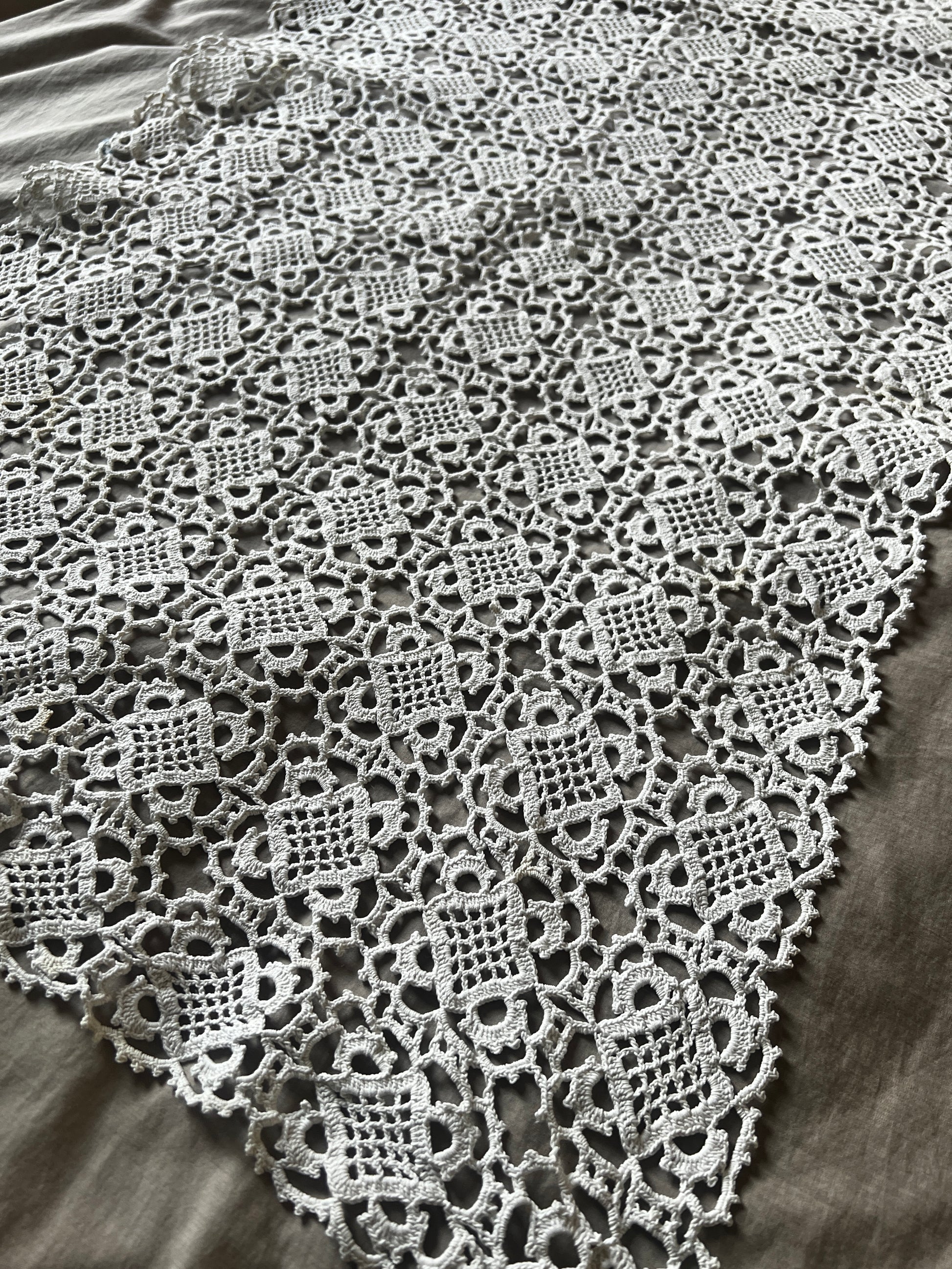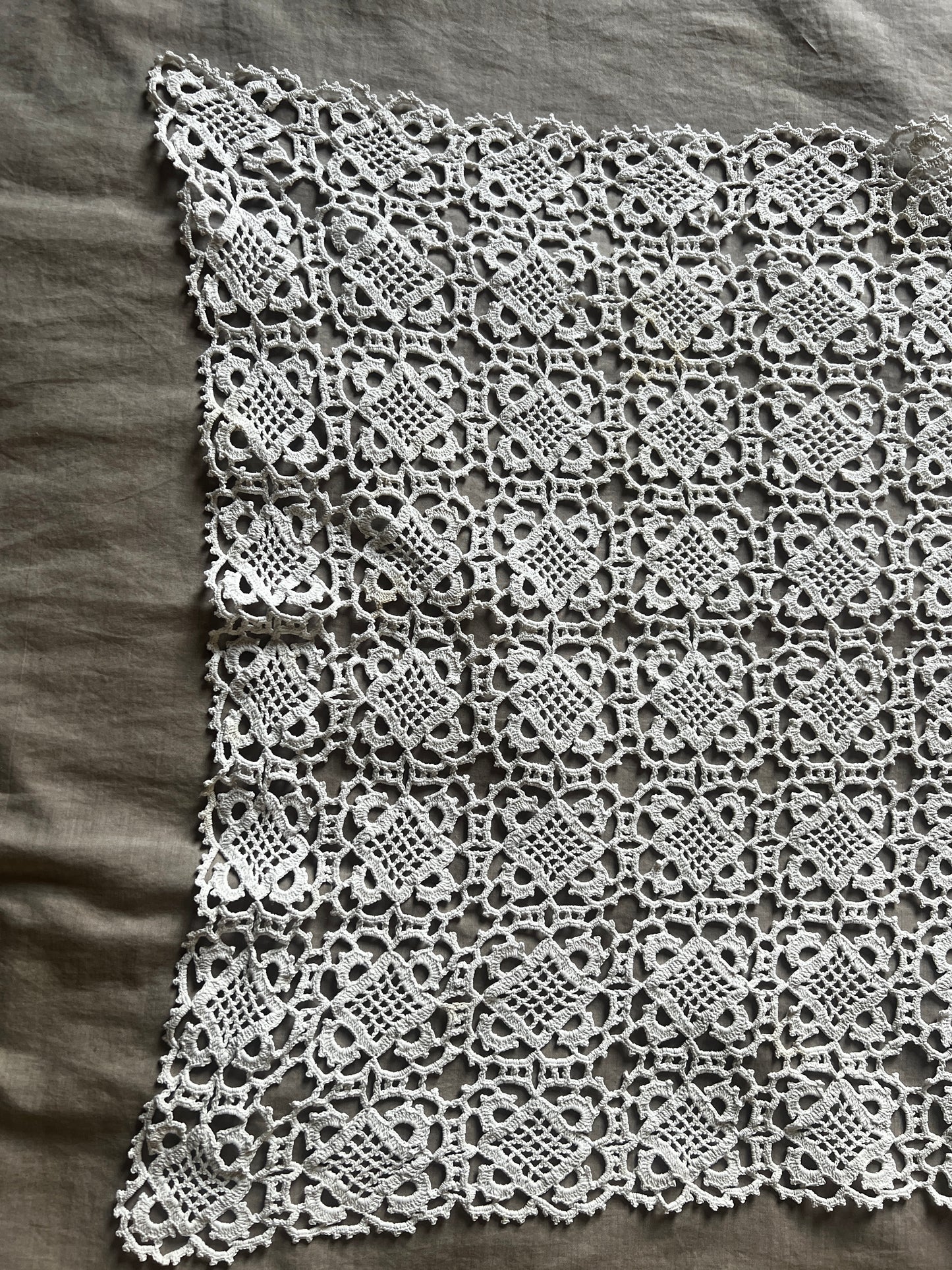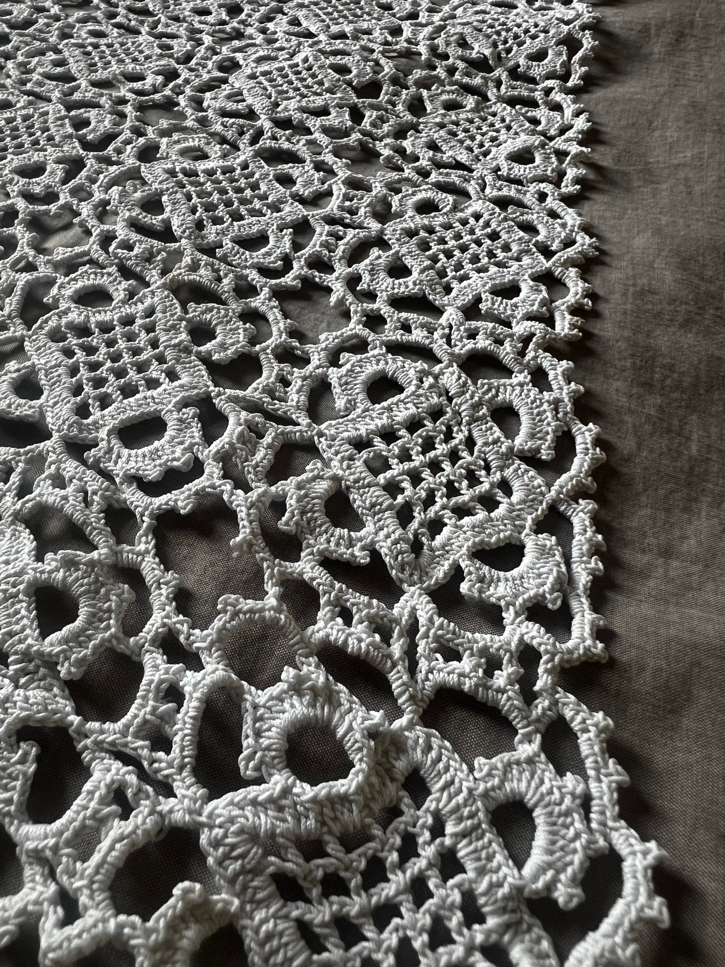 細い糸で丁寧に編み上げられたクロシェレースクロスです
