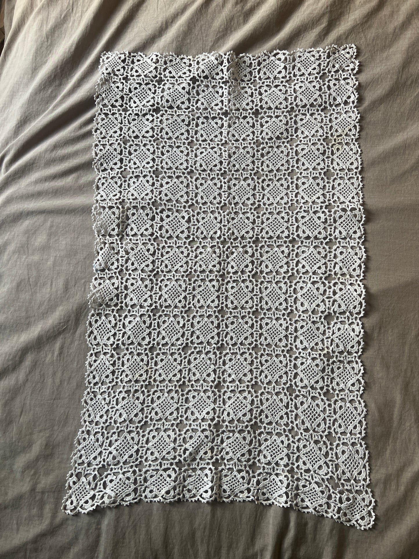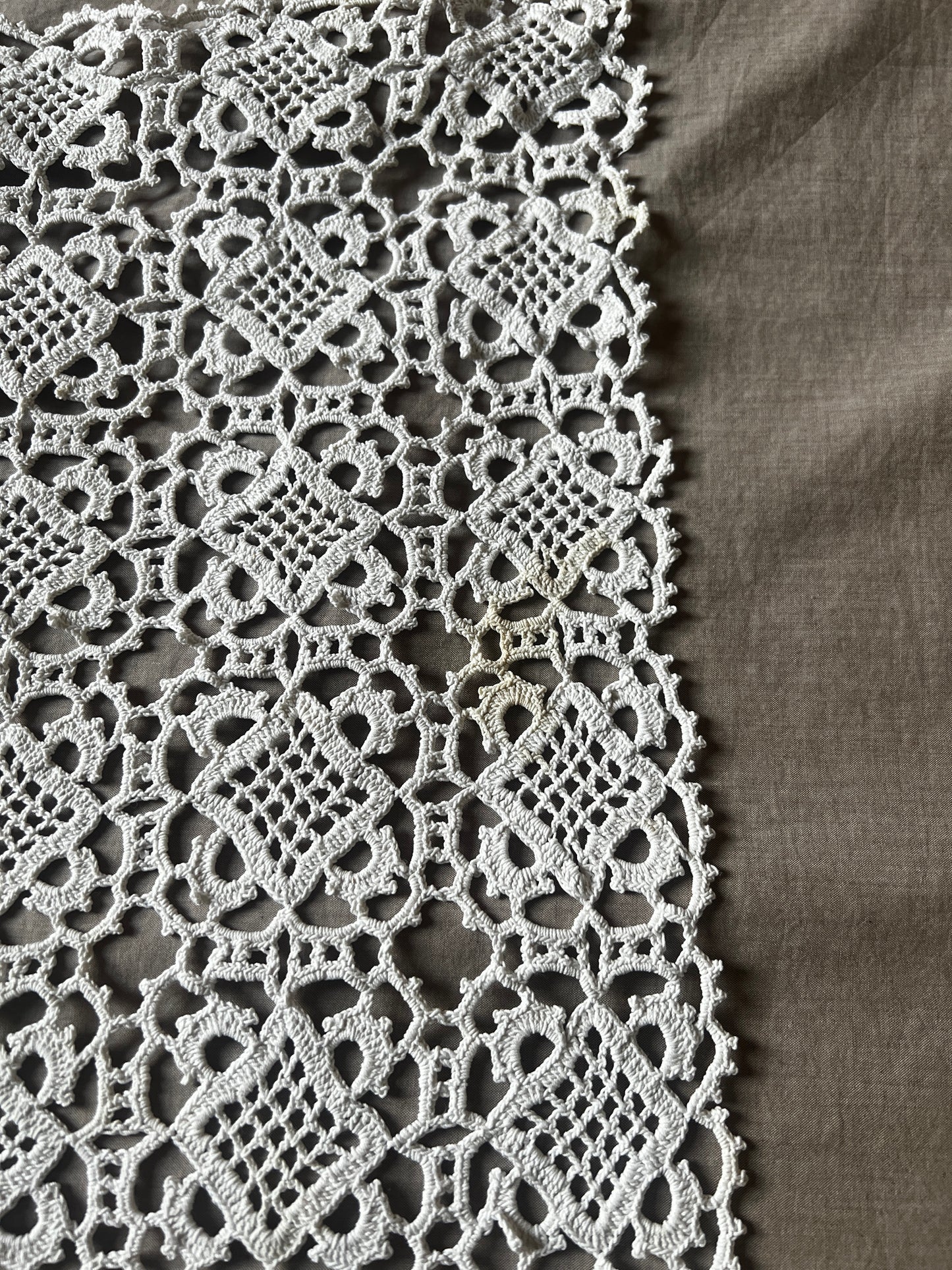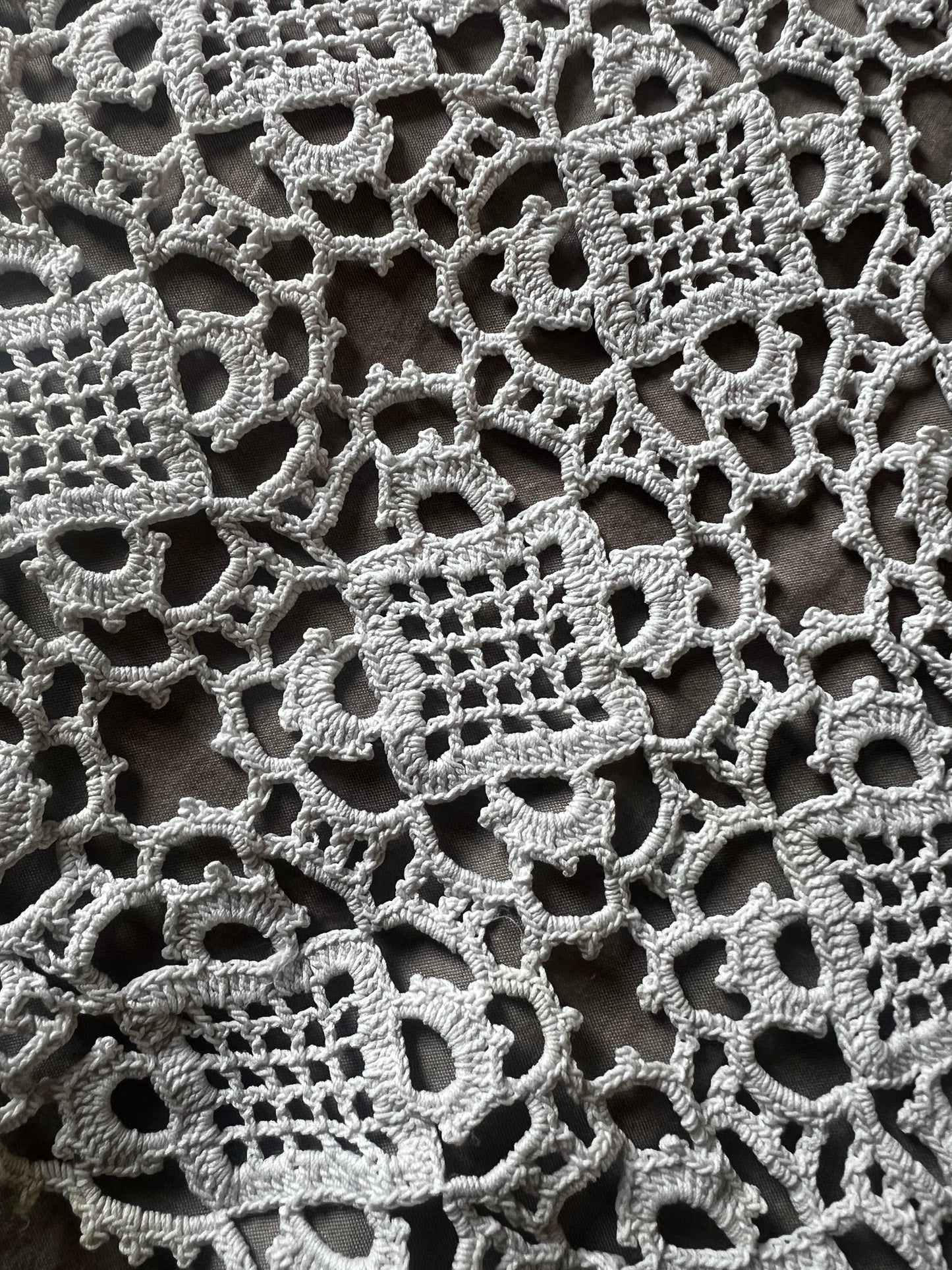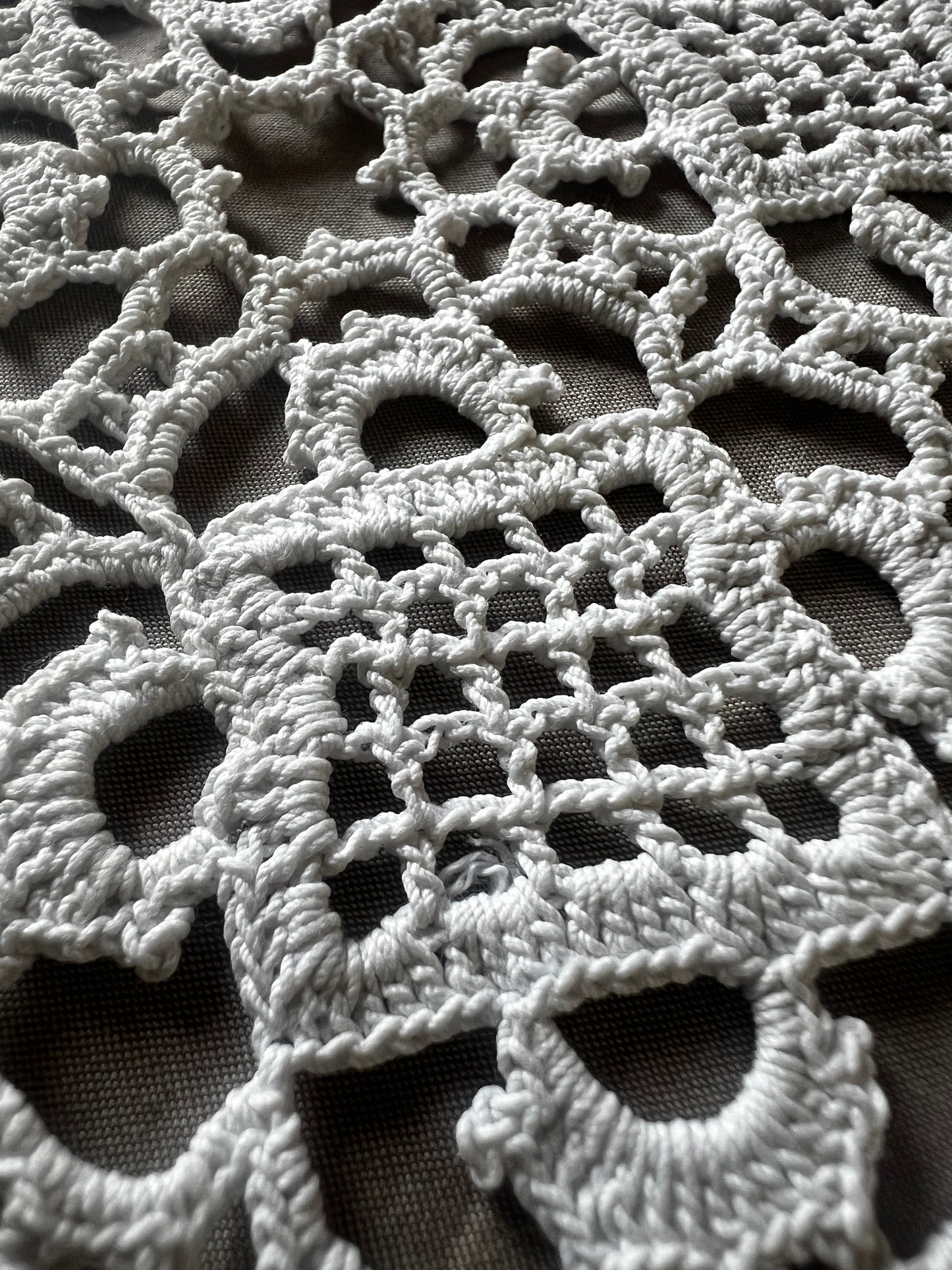 細い糸で丁寧に編み上げられたクロシェレースクロスです
