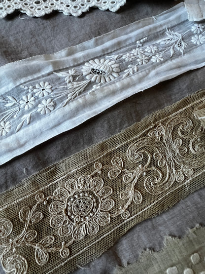 刺繍布やレース、小さなレースモチーフを詰め合わせたお得な素材セットです